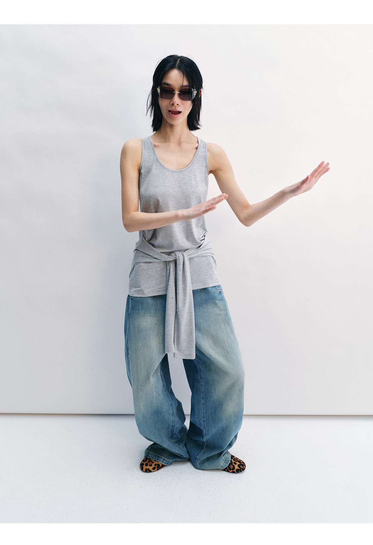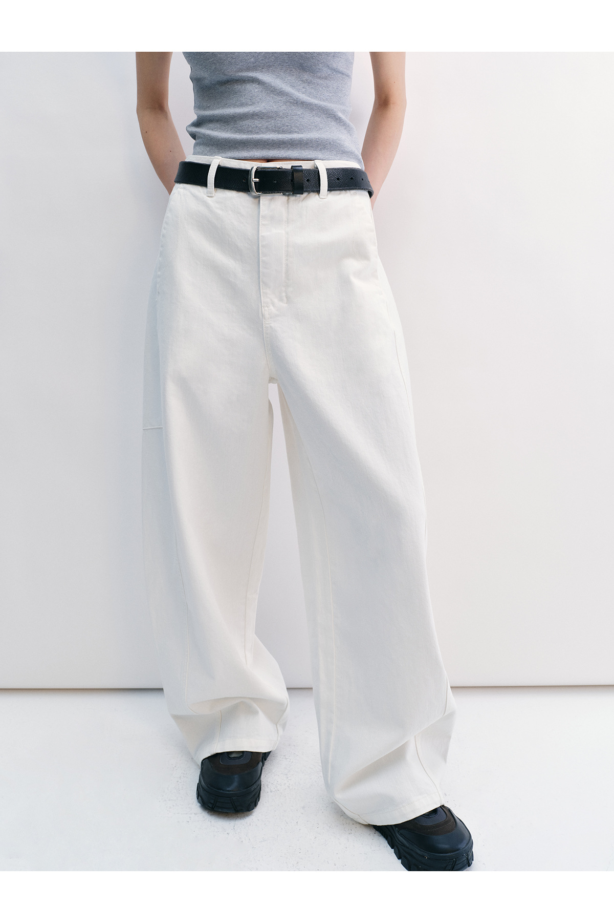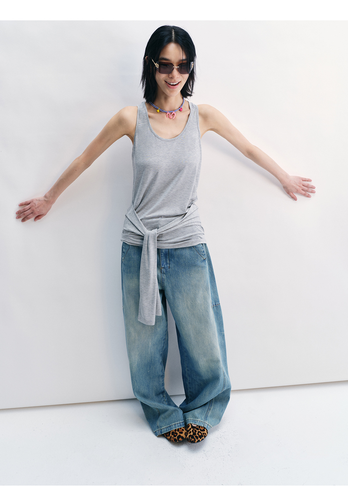 [시간] 새로운 업그레이드 바나나 모양의 순면 경량 바지 세척 물 느슨한 조커 청바지 여성 V8753