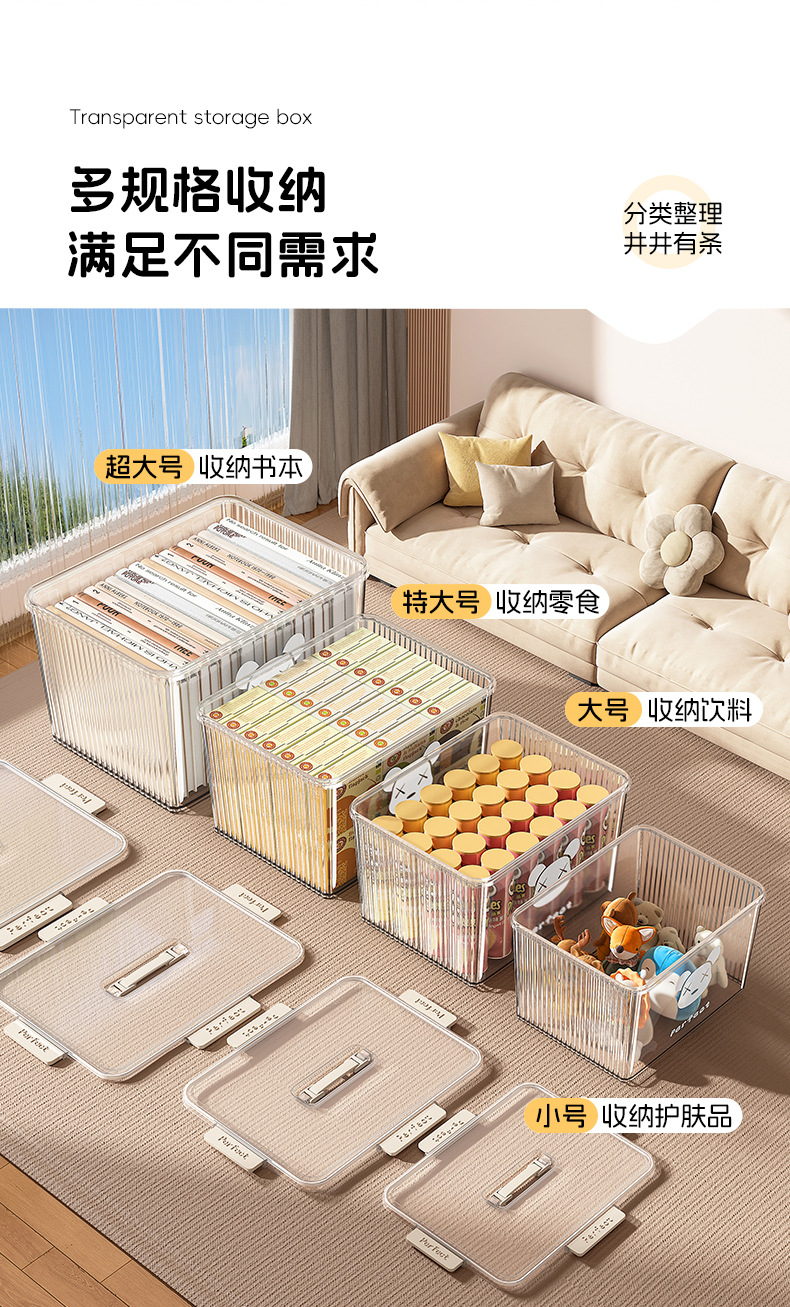 휴대용 투명 저장 상자 침실 대용량 의류 저장 상자 가정용 거실 스낵 장난감 플라스틱 보관 상자