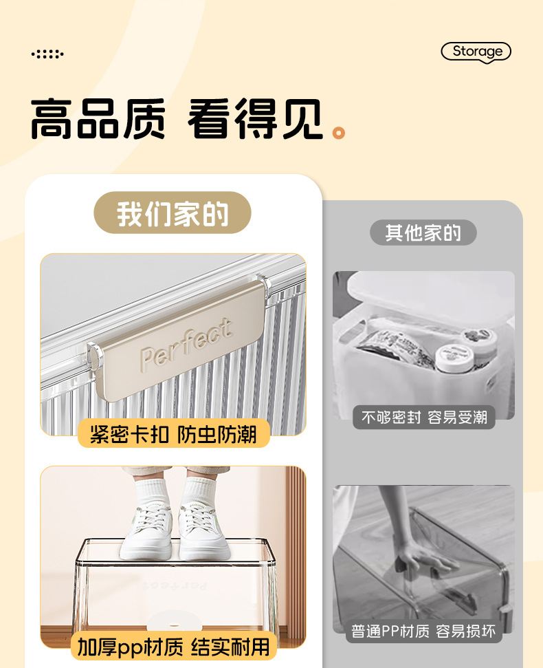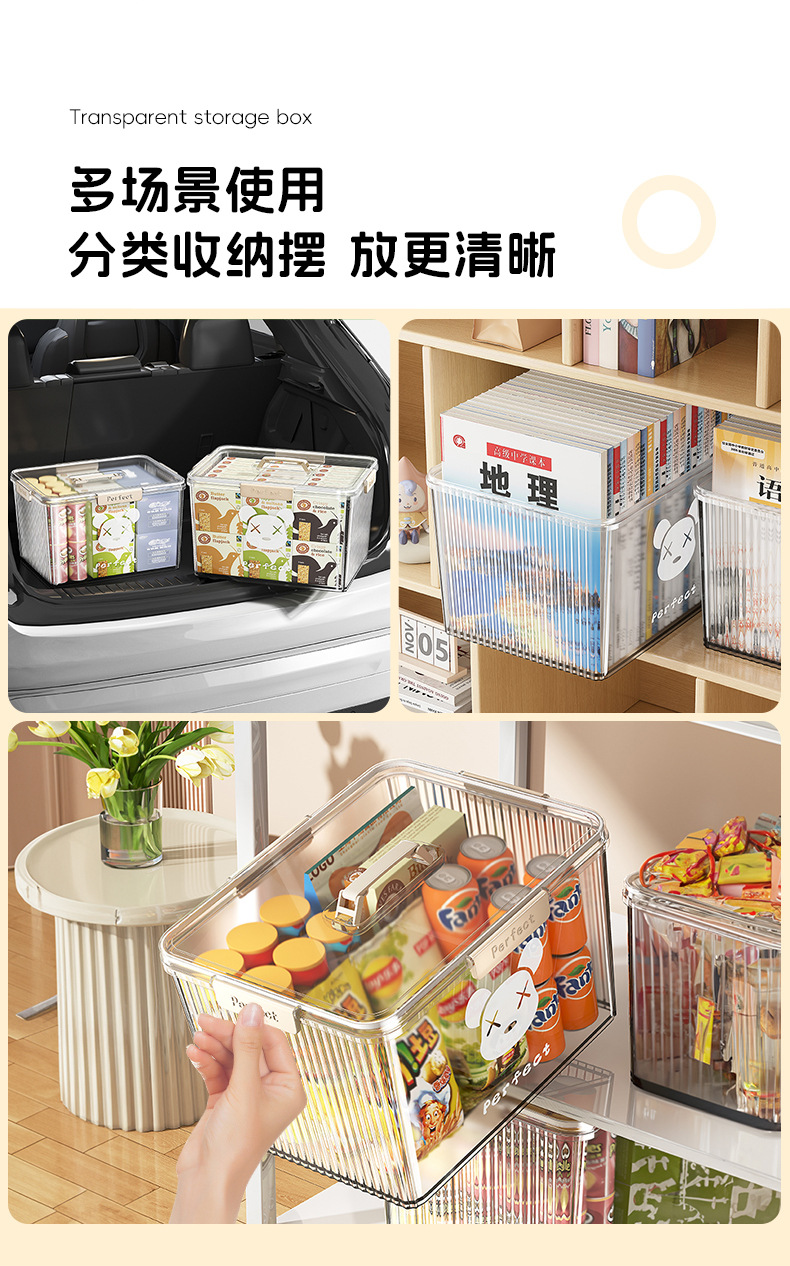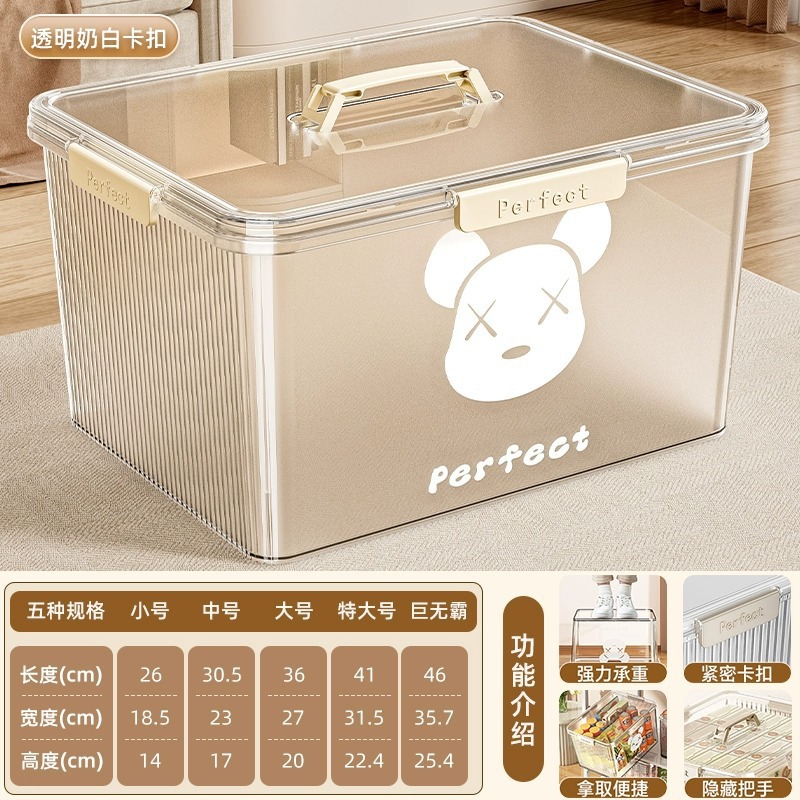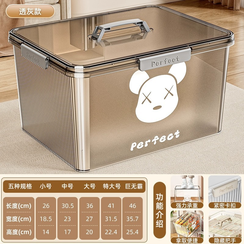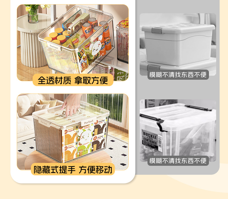 휴대용 투명 저장 상자 침실 대용량 의류 저장 상자 가정용 거실 스낵 장난감 플라스틱 보관 상자스토어 가기