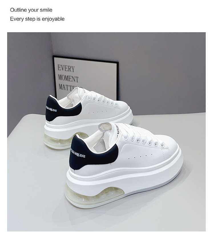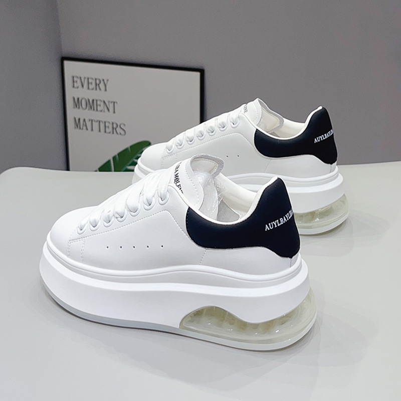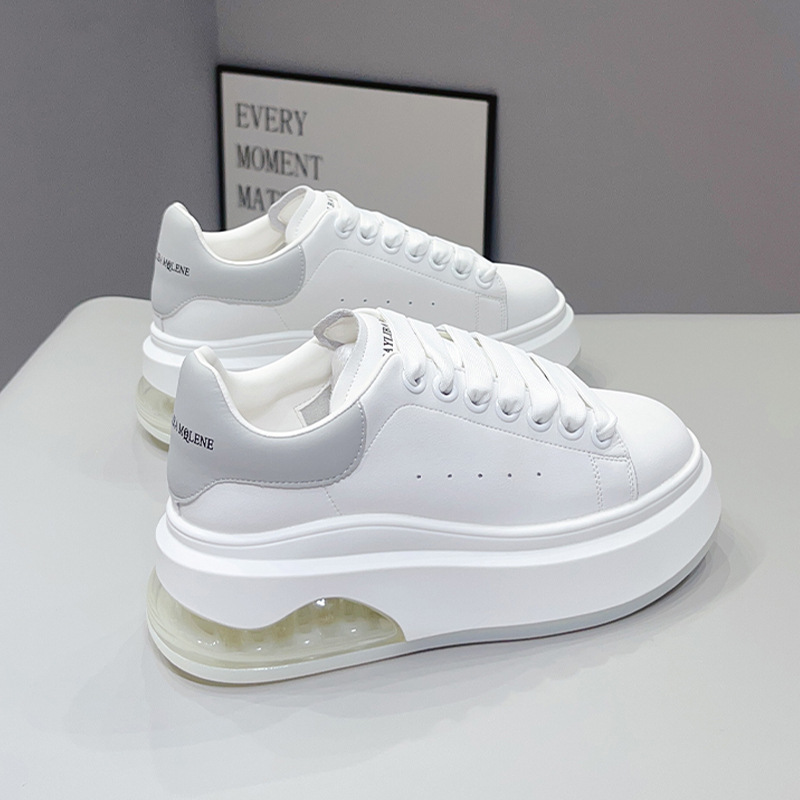 McQueen 여성용 흰색 신발 2025 가을 새로운 높이 증가 운동화-소 가죽 두꺼운 밑창 부드러운 캐주얼 신발