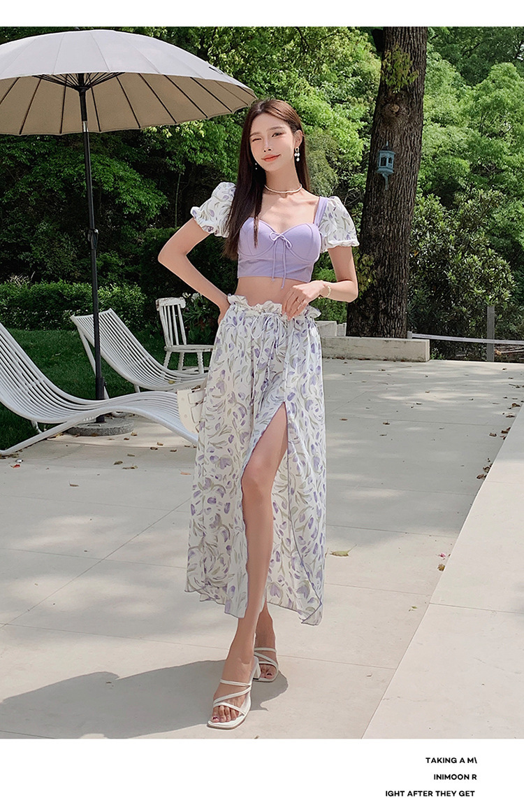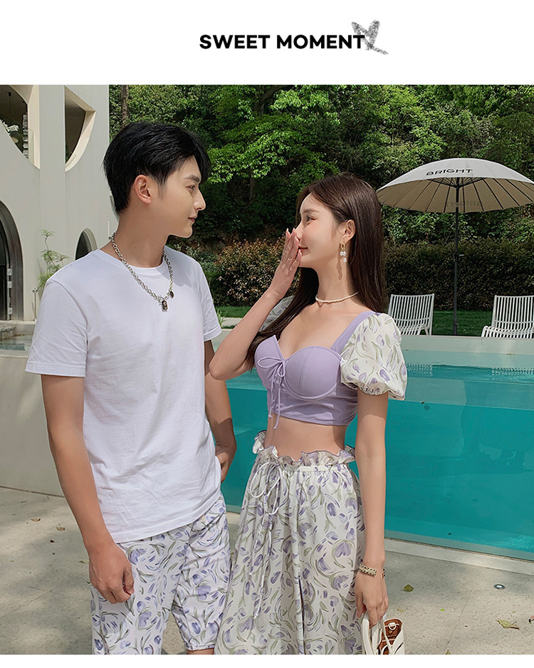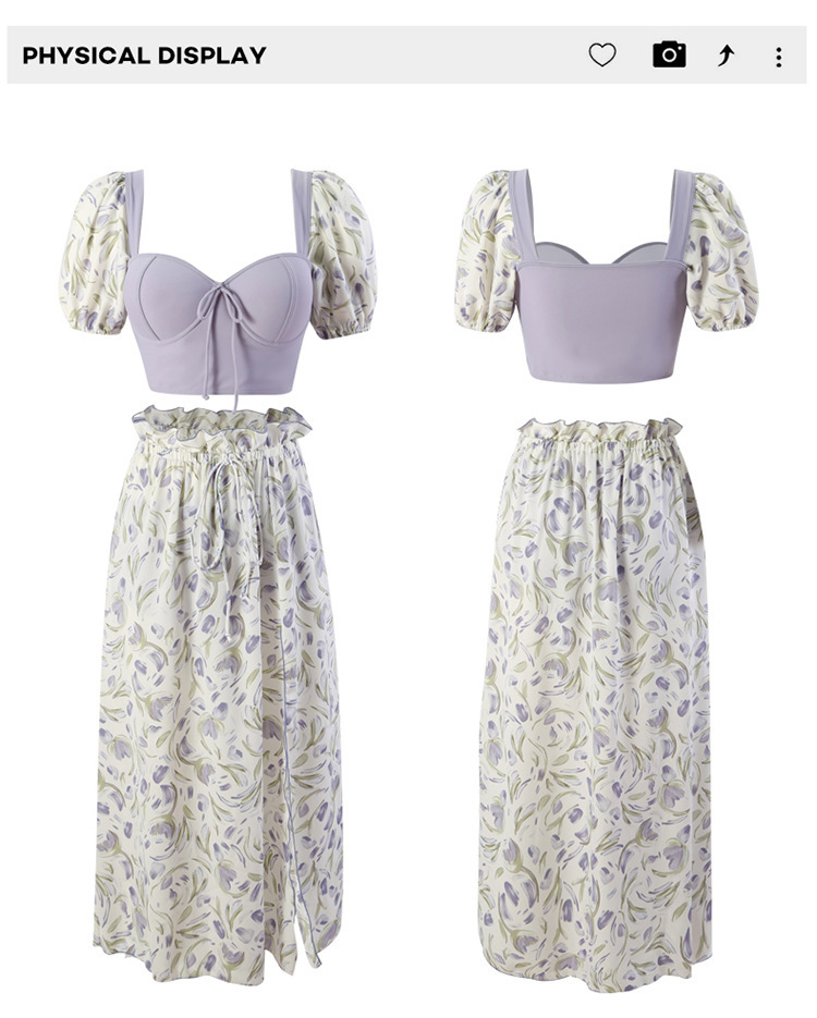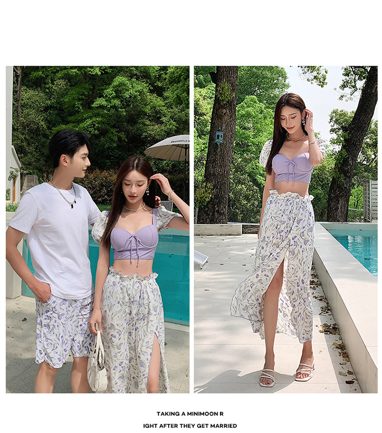 일본 수영복 여성 여름 요정 스타일 비치 원피스 2023 새로운 보수 분할 3 피스 세트 커플의 휴일 수영복스토어 가기