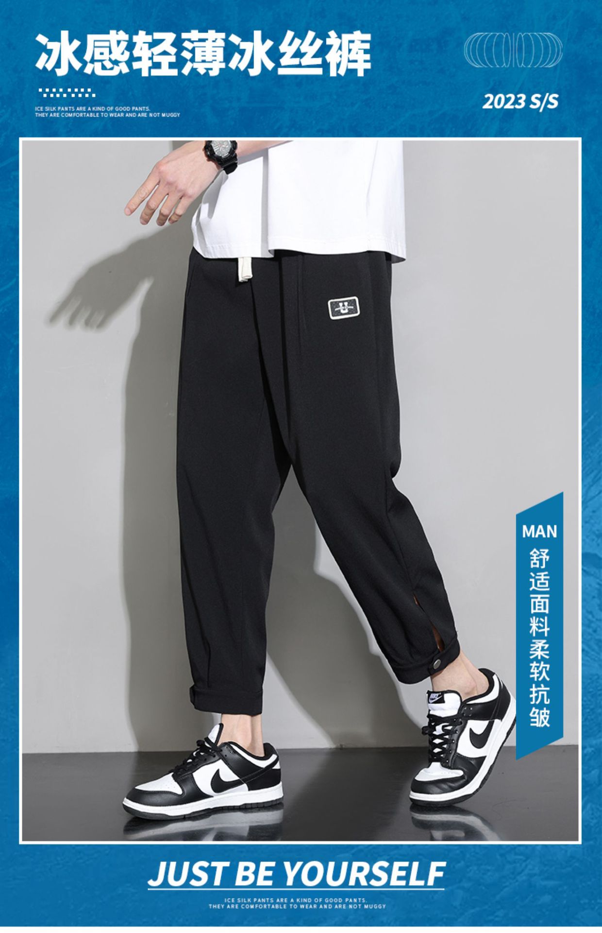 NASA 아이스 실크 바지 남자 여름 얇은 유행 브랜드 느슨한 바지 남자의 멋진 감각 청소년 캐주얼 바지스토어 가기
