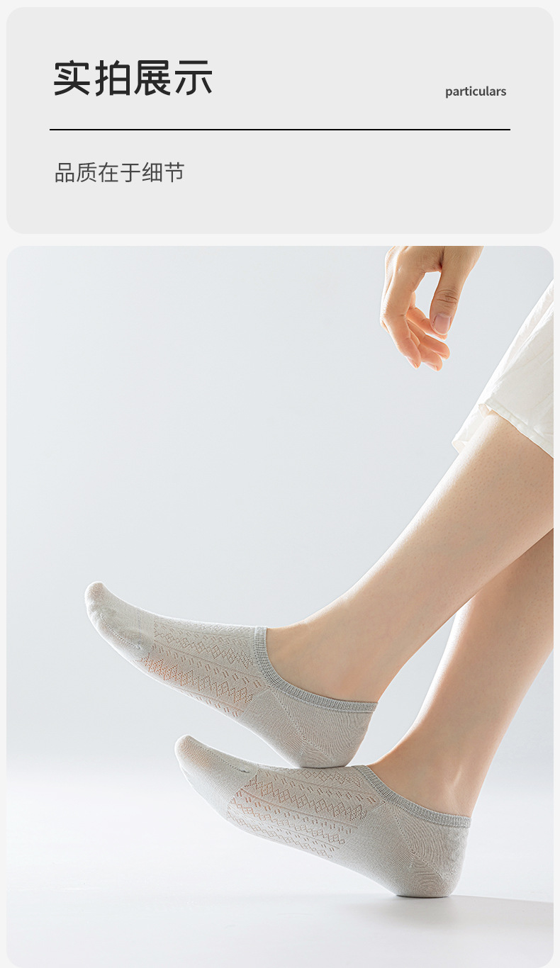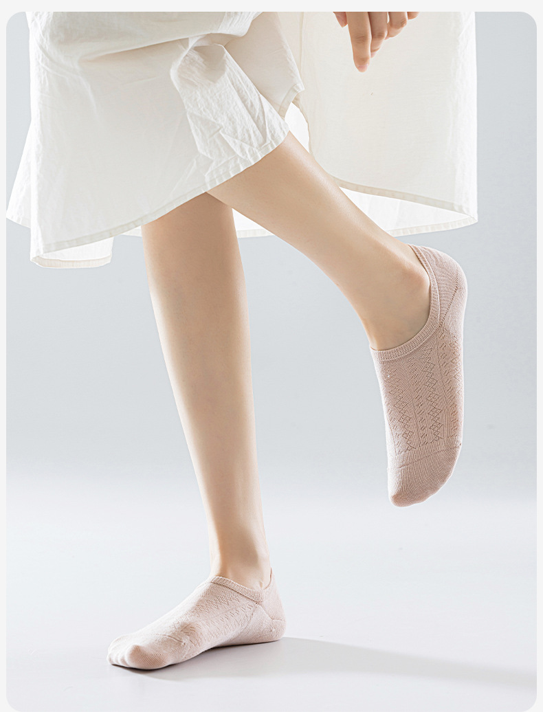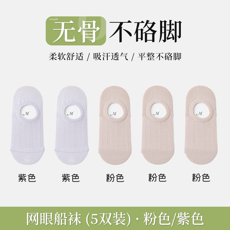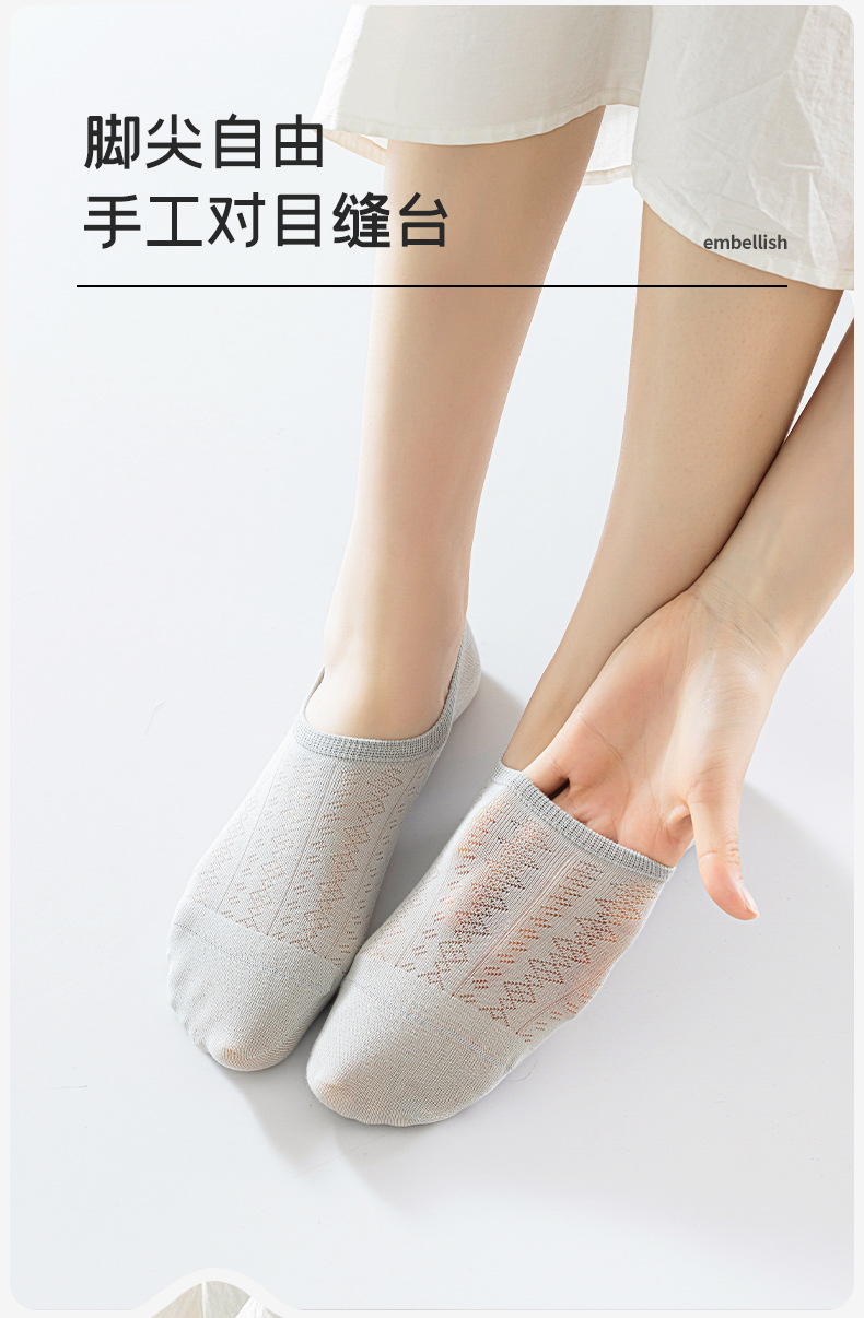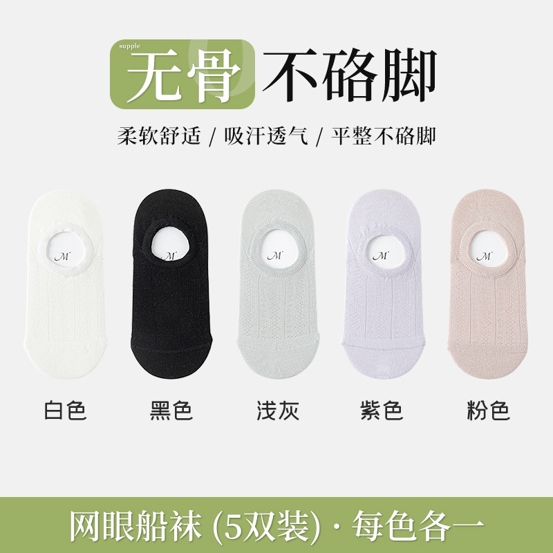 보트 양말 여성의 여름 얇은 중공 메쉬 통기성 보이지 않는 면화 양말 얕은 입 보이지 않는 실리콘 안티 드롭 힐 간단한 양말
