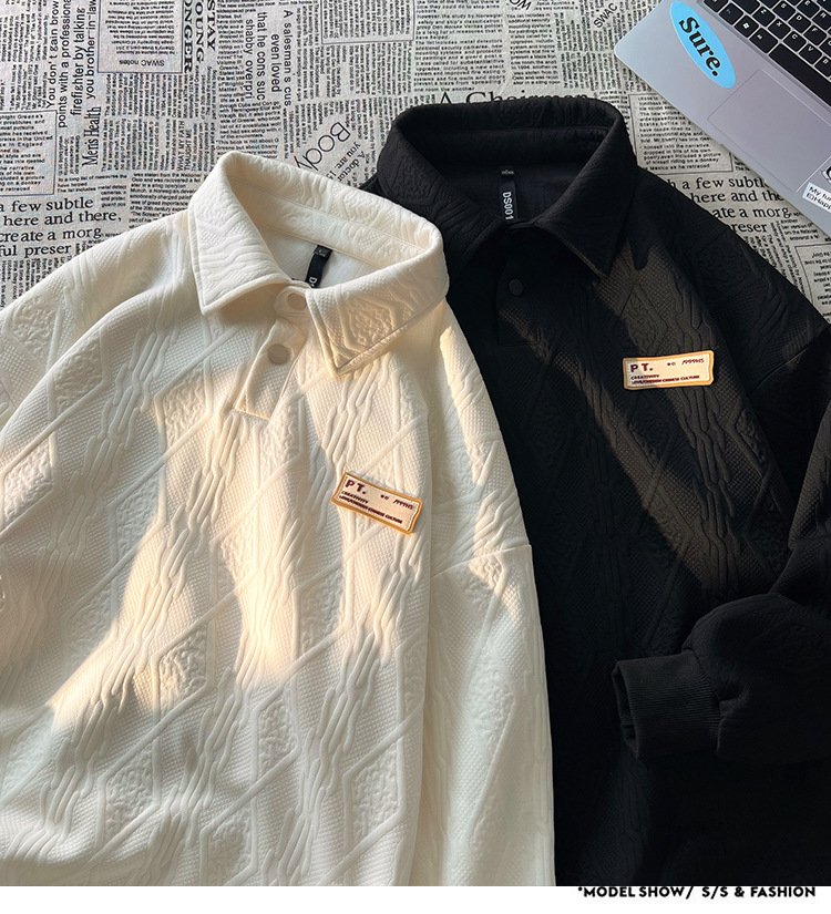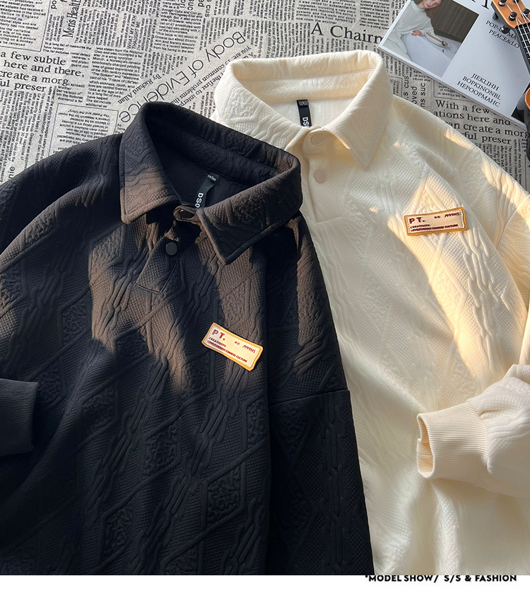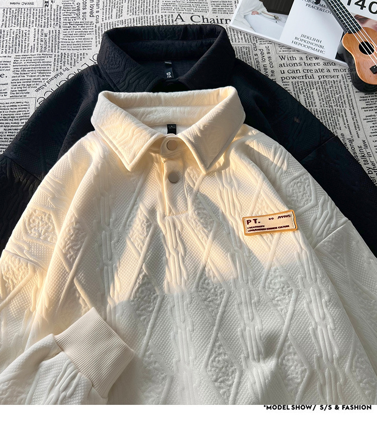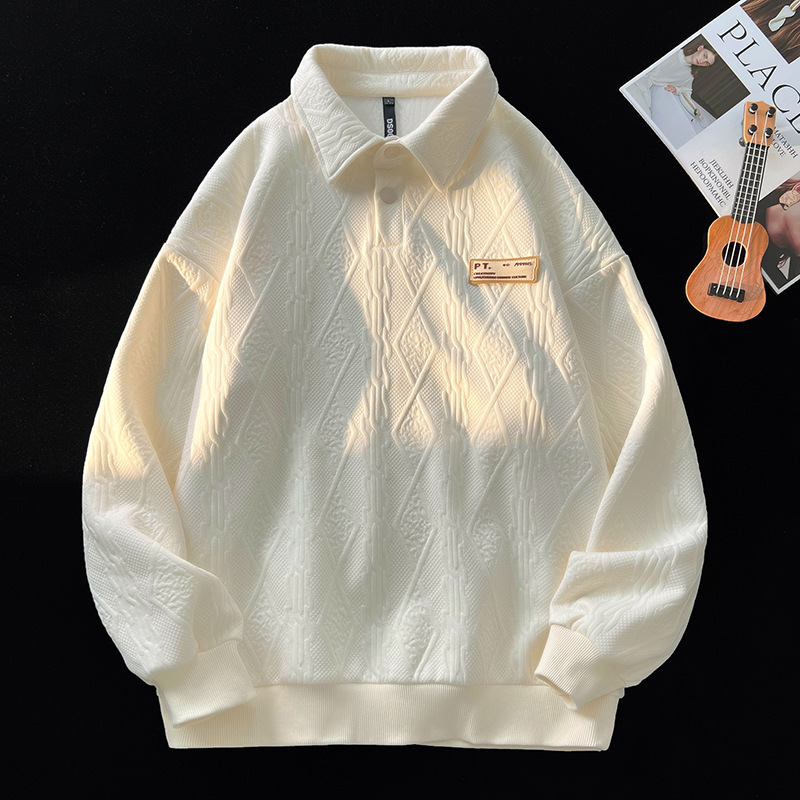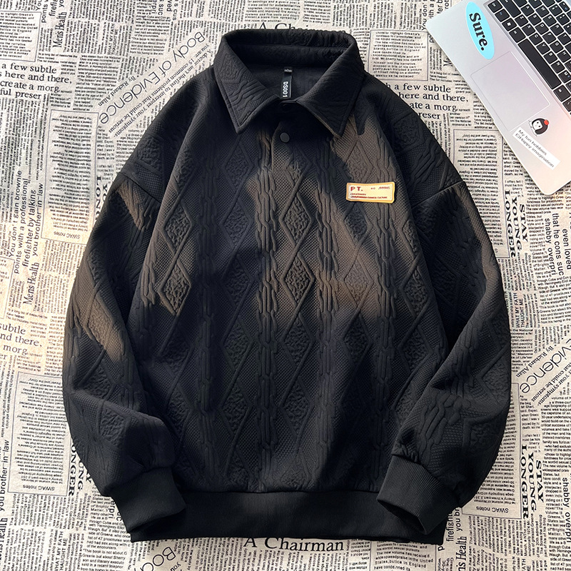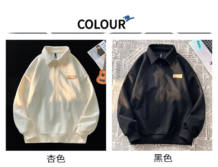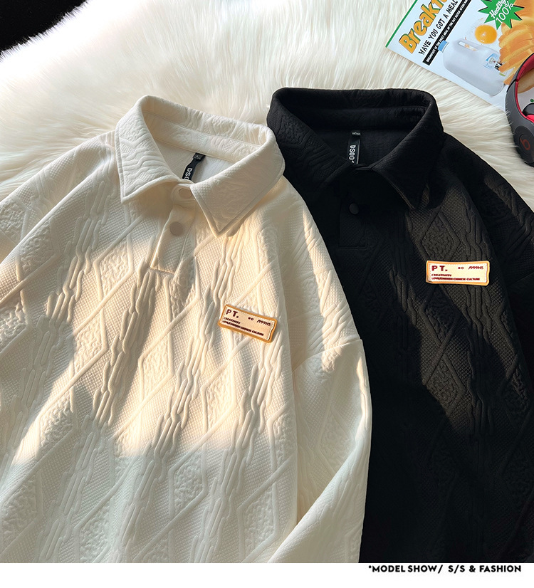 NASA 아메리칸 헤비웨이트 자카드 라펠 스웨트셔츠 남성 트렌디 브랜드 레트로 플러스 사이즈 다용도 베이스 긴팔 폴로 셔츠