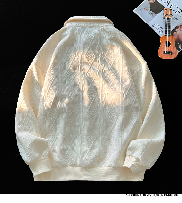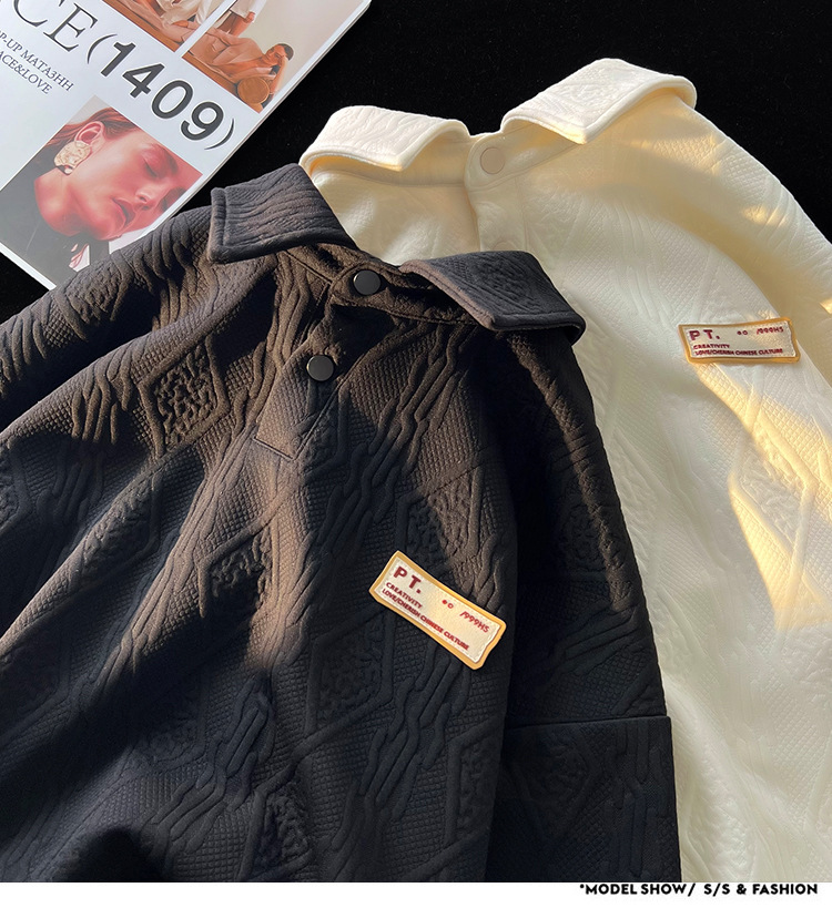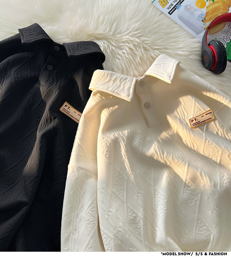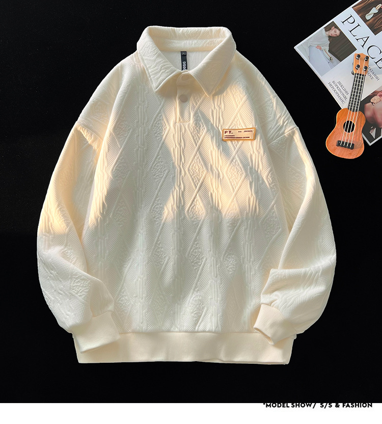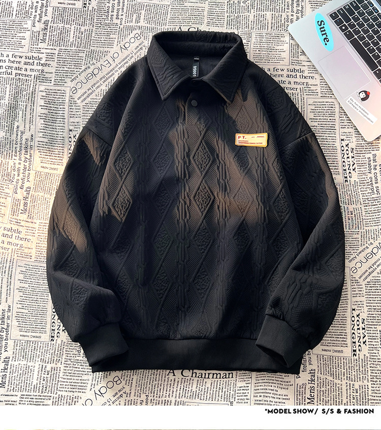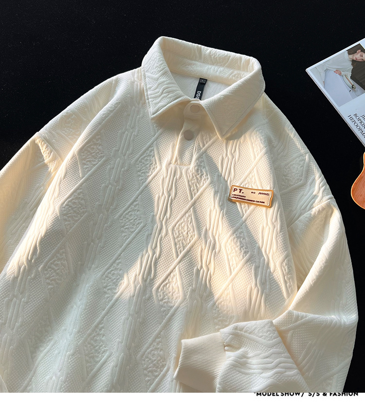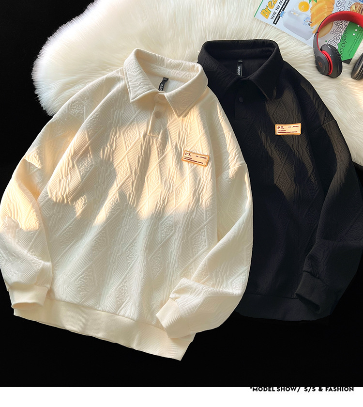 NASA 아메리칸 헤비웨이트 자카드 라펠 스웨트셔츠 남성 트렌디 브랜드 레트로 플러스 사이즈 다용도 베이스 긴팔 폴로 셔츠