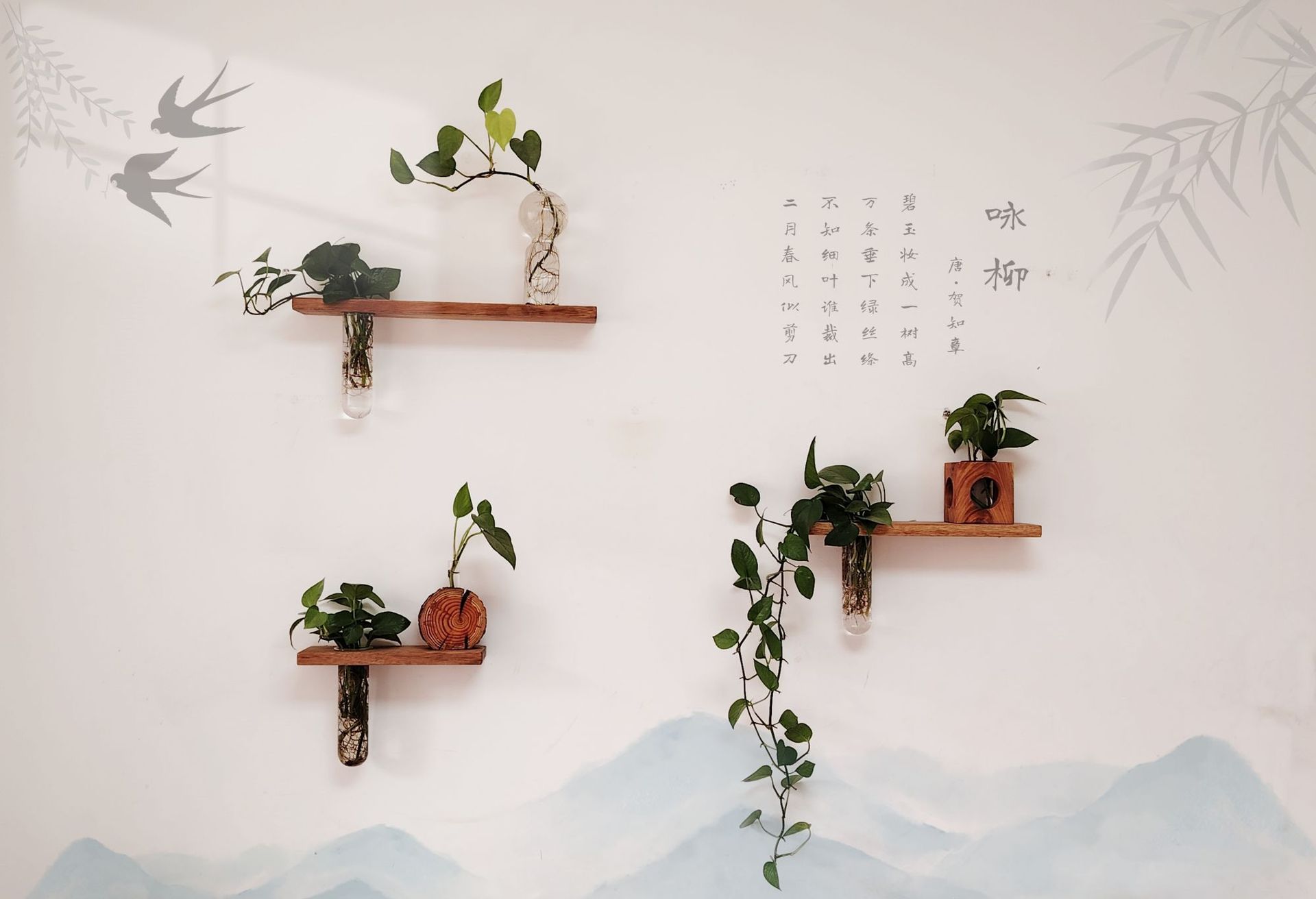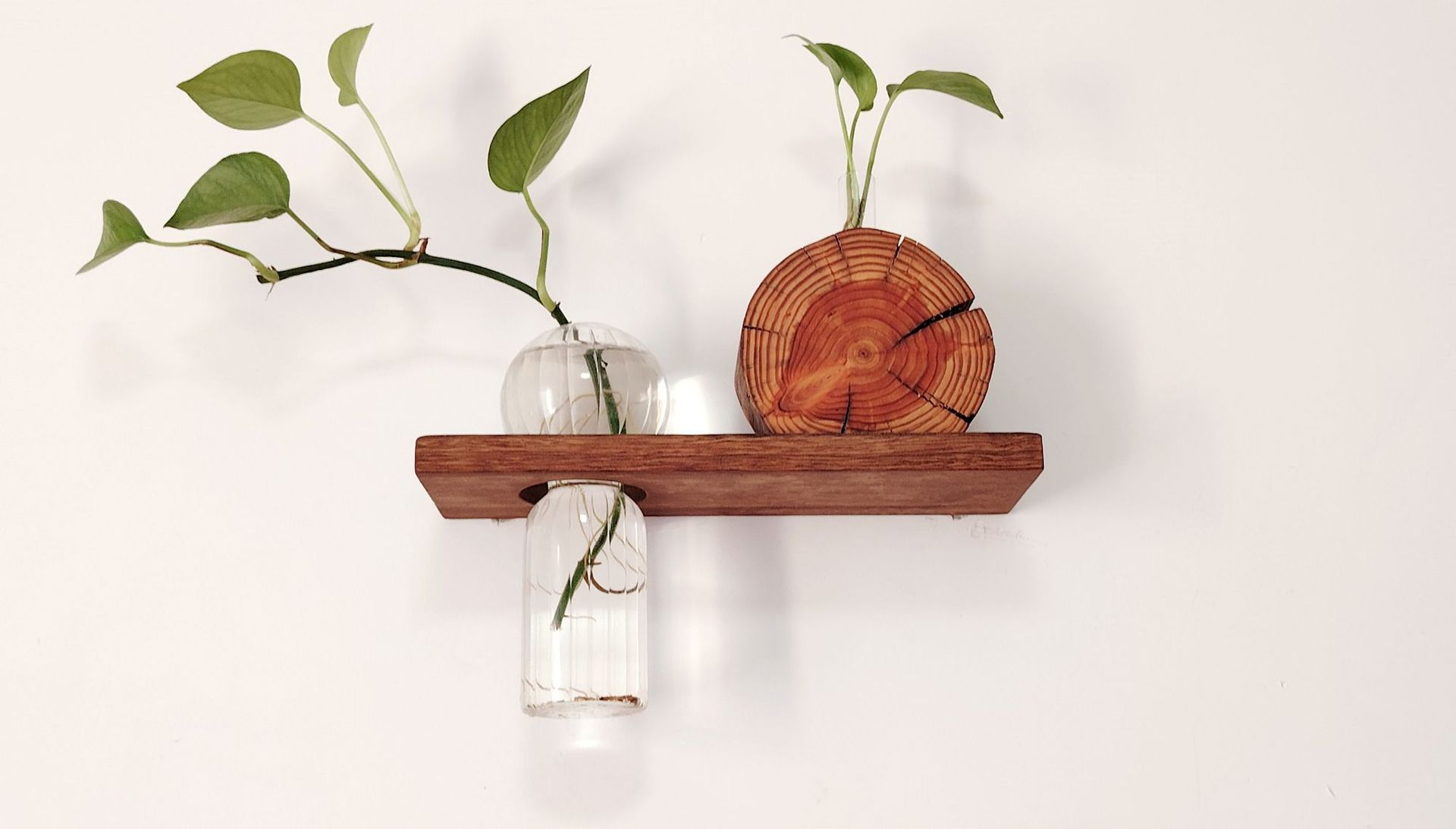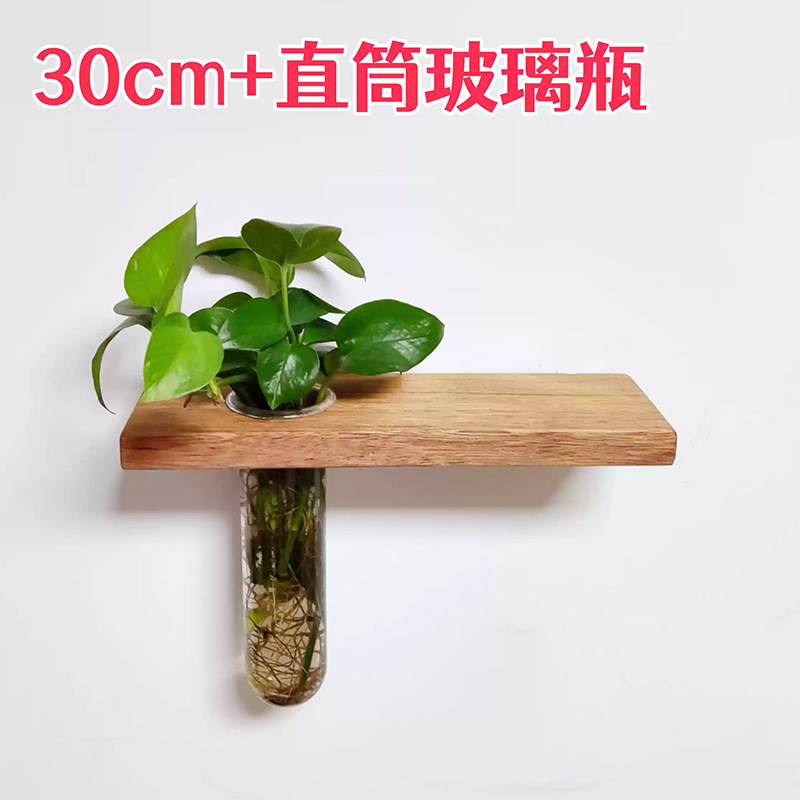 원목 벽걸이 꽃병, 벽걸이 꽃꽂이, 수경화분, 일자형 보드 수납 꽃걸이, 소파 배경 벽 장식