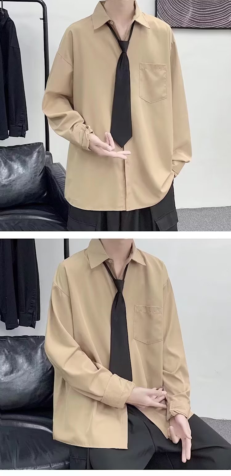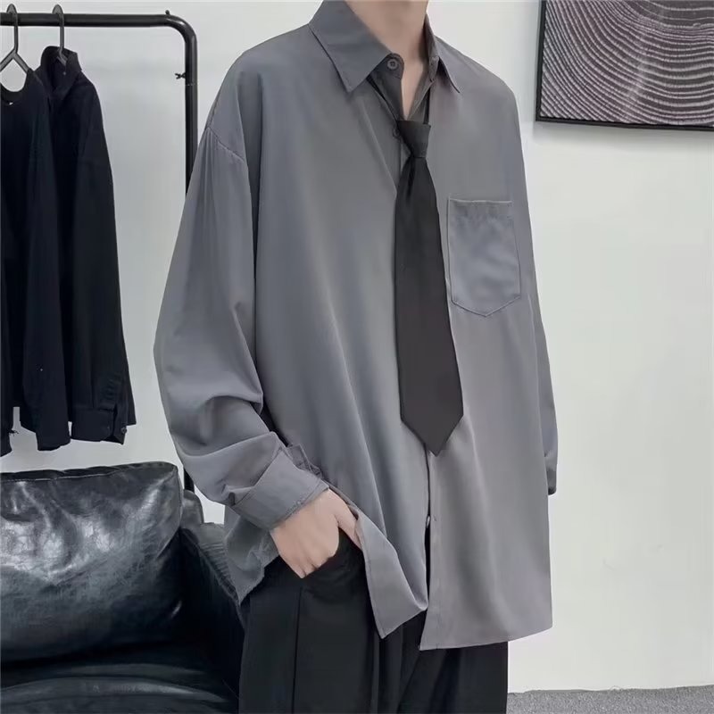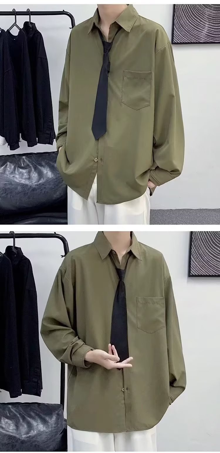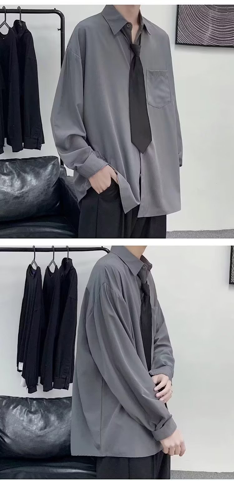 가을 트렌디 한 디핑 감각 틈새 하이 엔드 센스 셔츠 편안한 핏 게으른 스타일 남성용 긴팔 셔츠 얇은