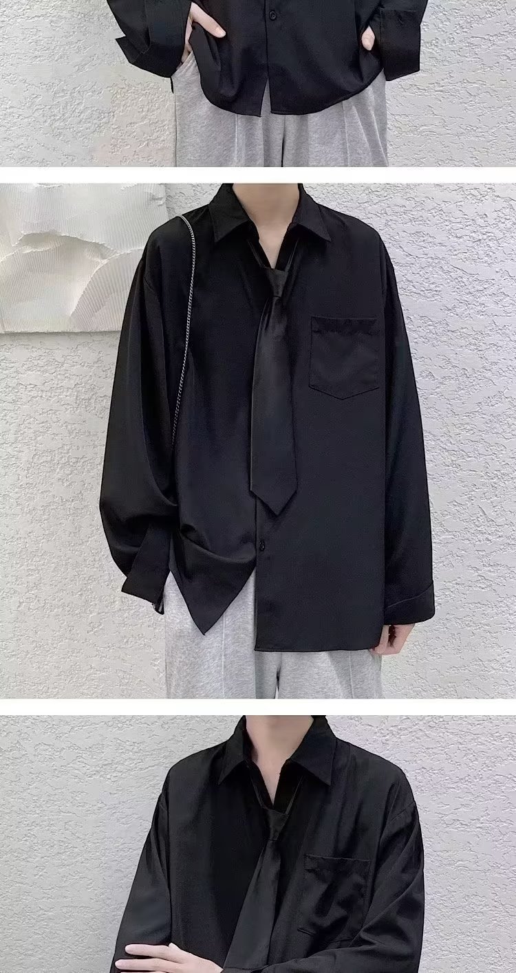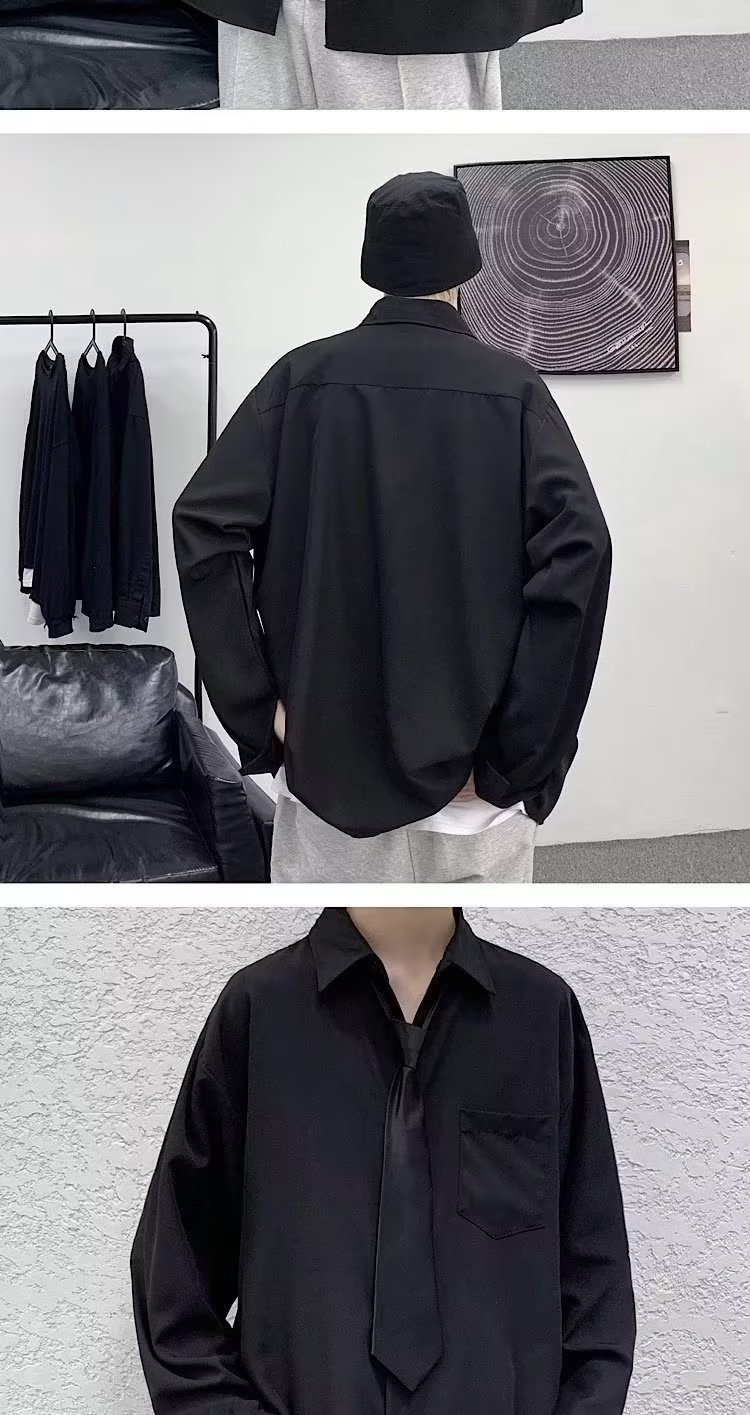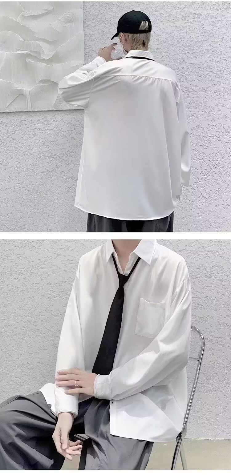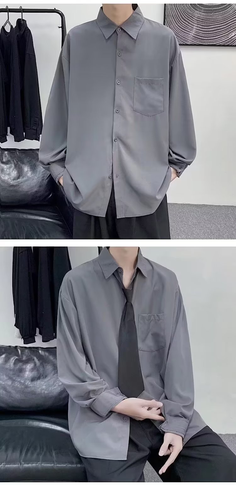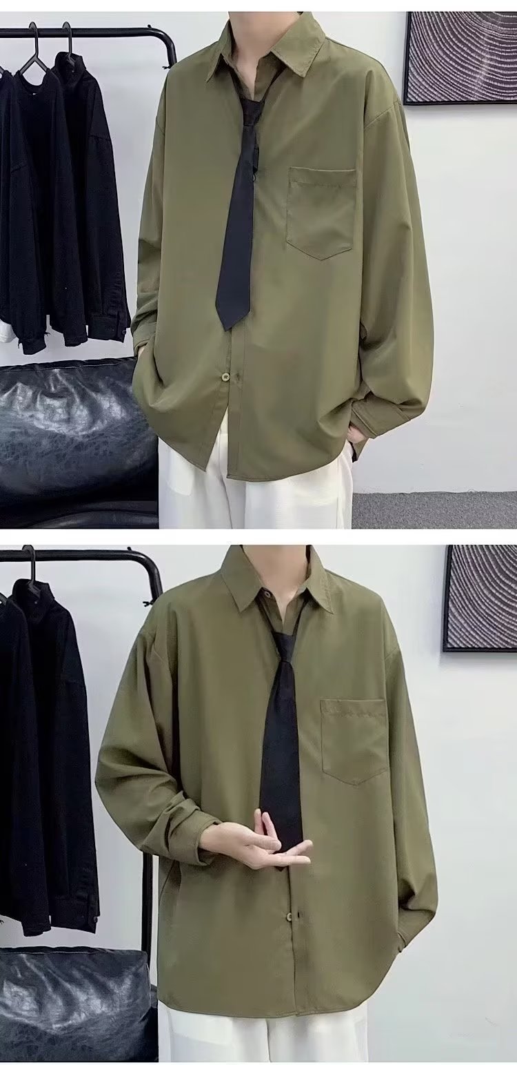 가을 트렌디 한 디핑 감각 틈새 하이 엔드 센스 셔츠 편안한 핏 게으른 스타일 남성용 긴팔 셔츠 얇은