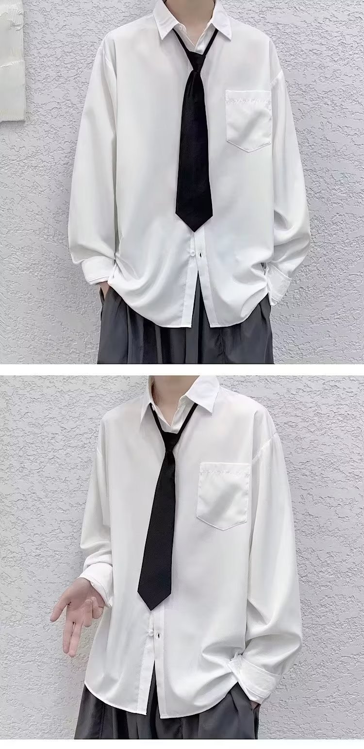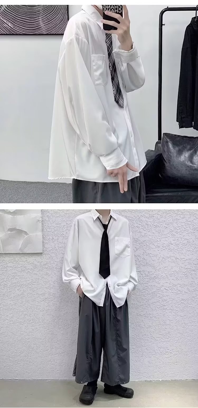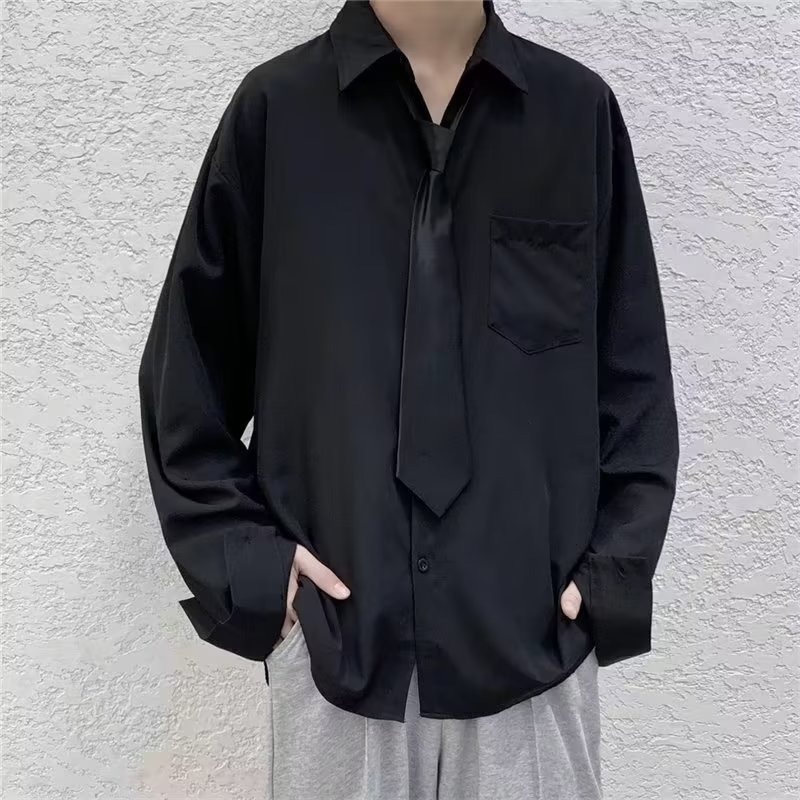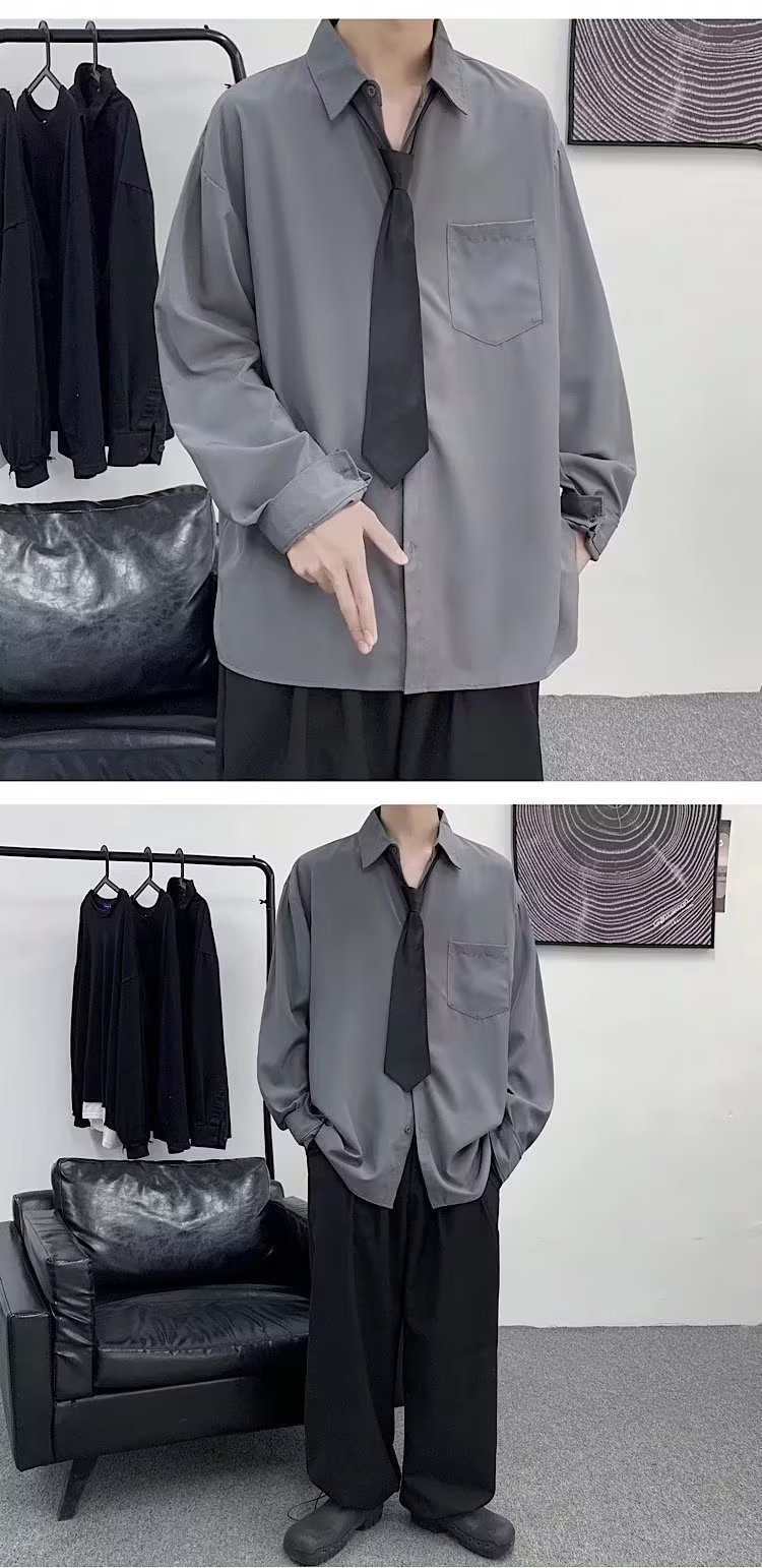 가을 트렌디 한 디핑 감각 틈새 하이 엔드 센스 셔츠 편안한 핏 게으른 스타일 남성용 긴팔 셔츠 얇은