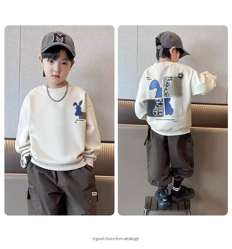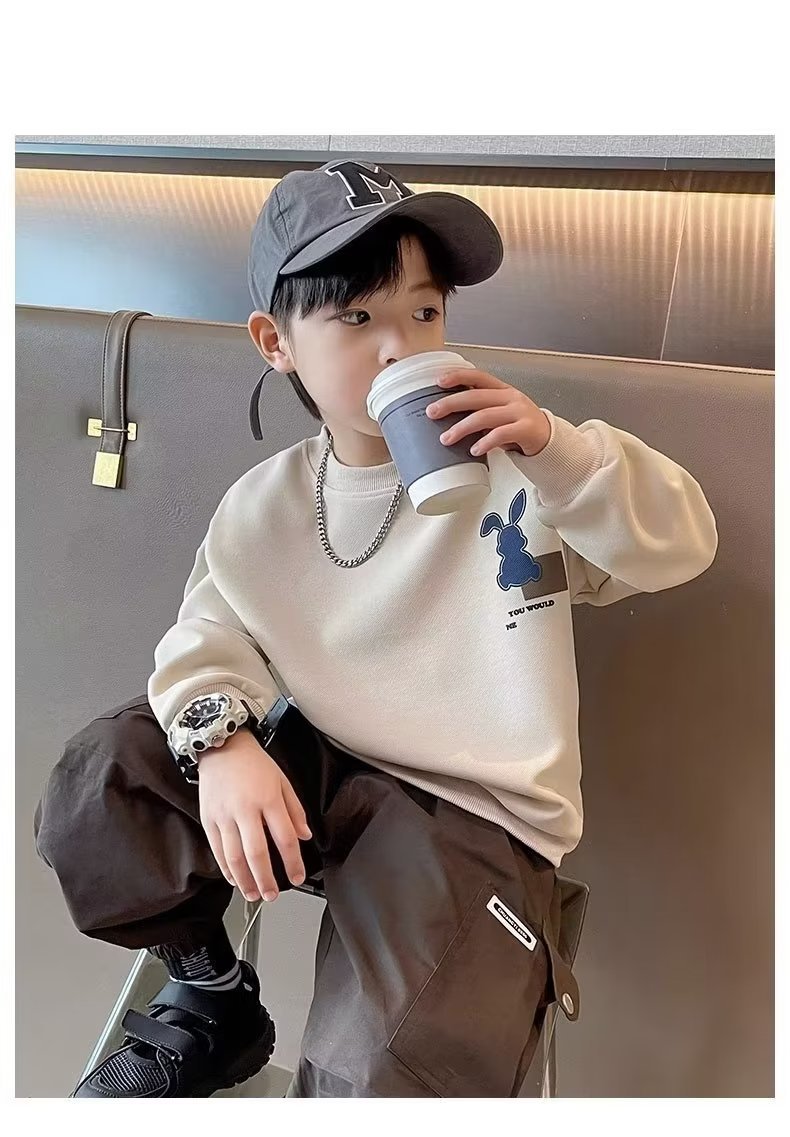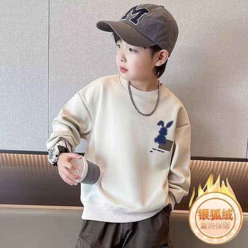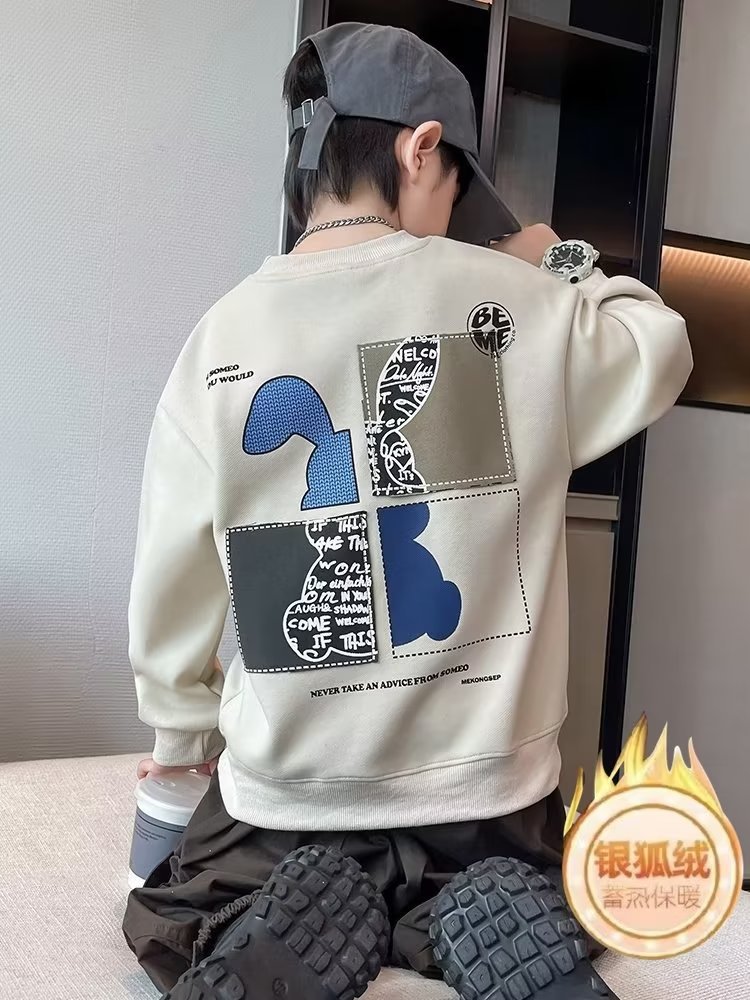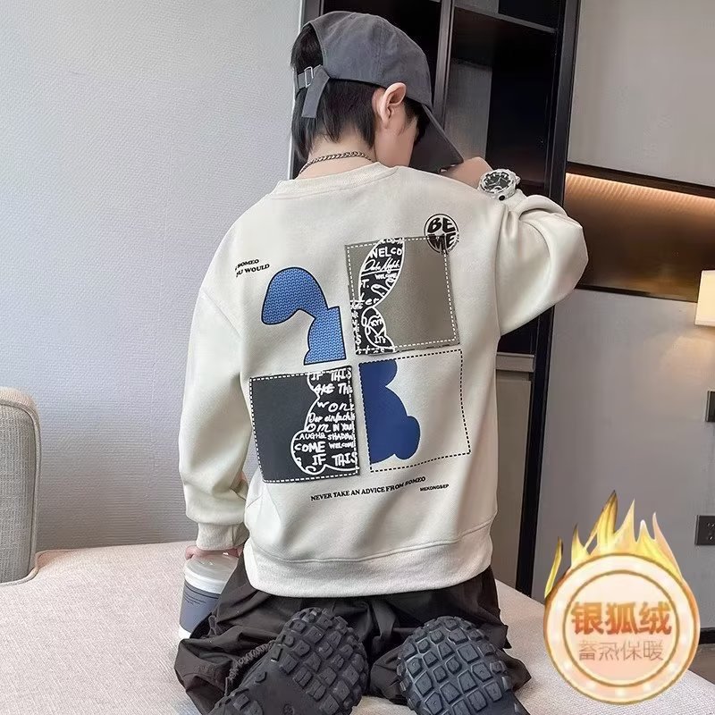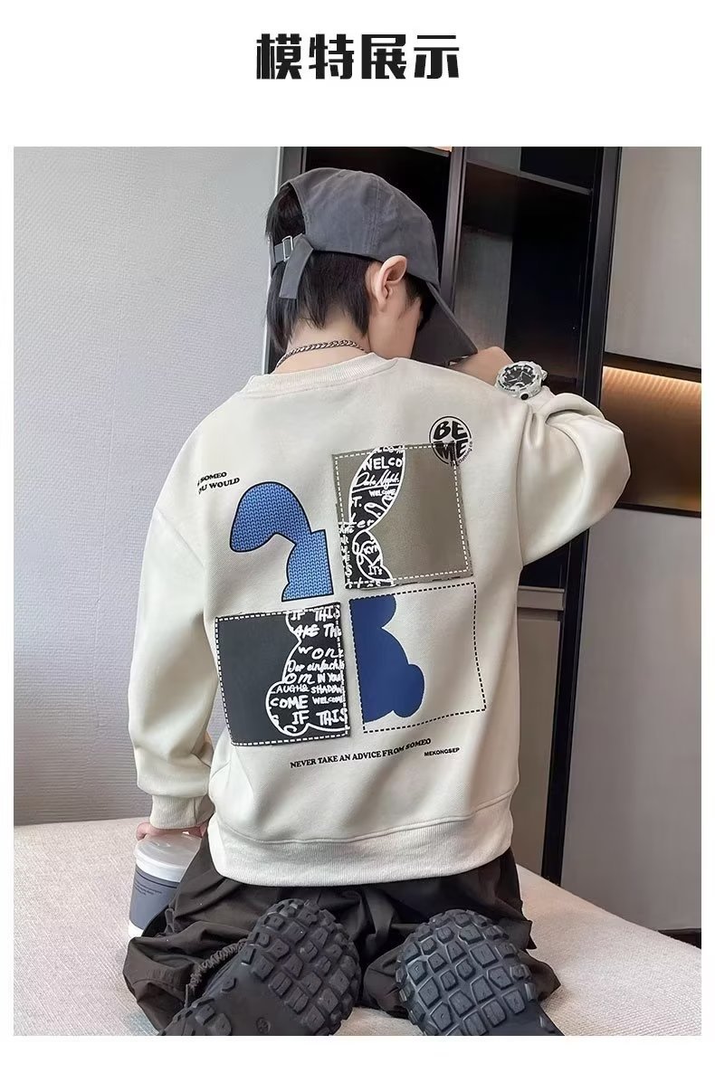 어린이 소년의 가을 스웨터 2023 새로운 봄 가을 겨울 큰 소년의 기모 탑스토어 가기