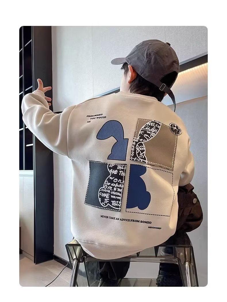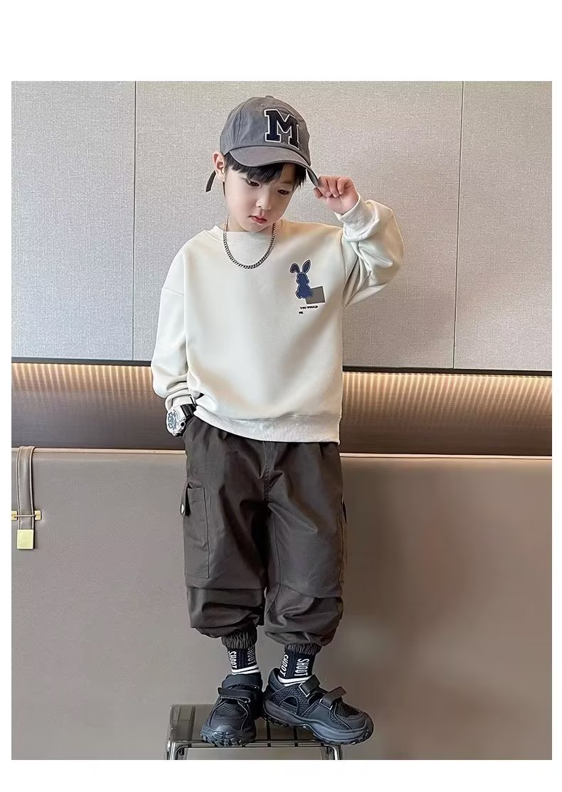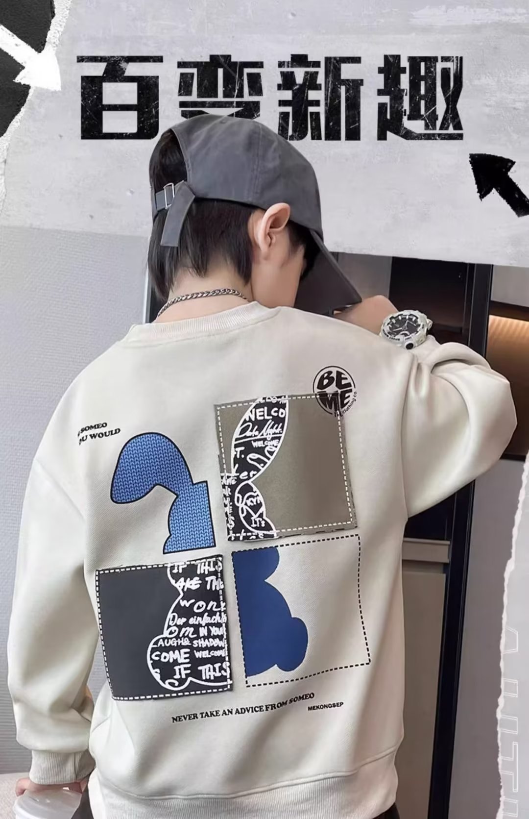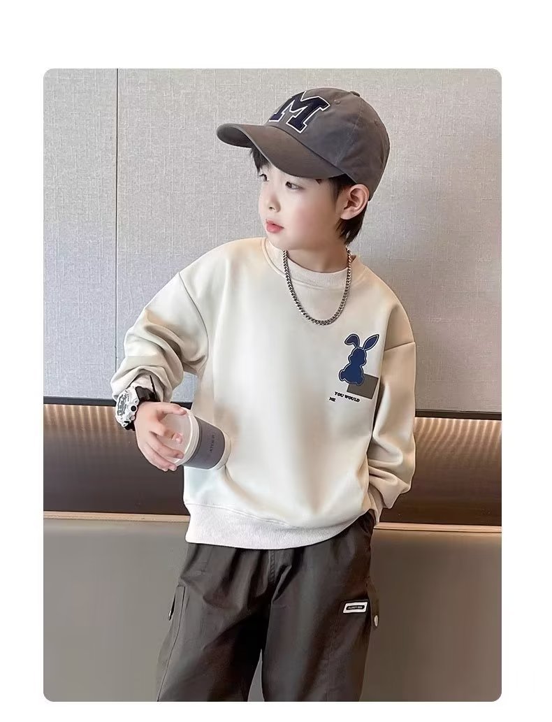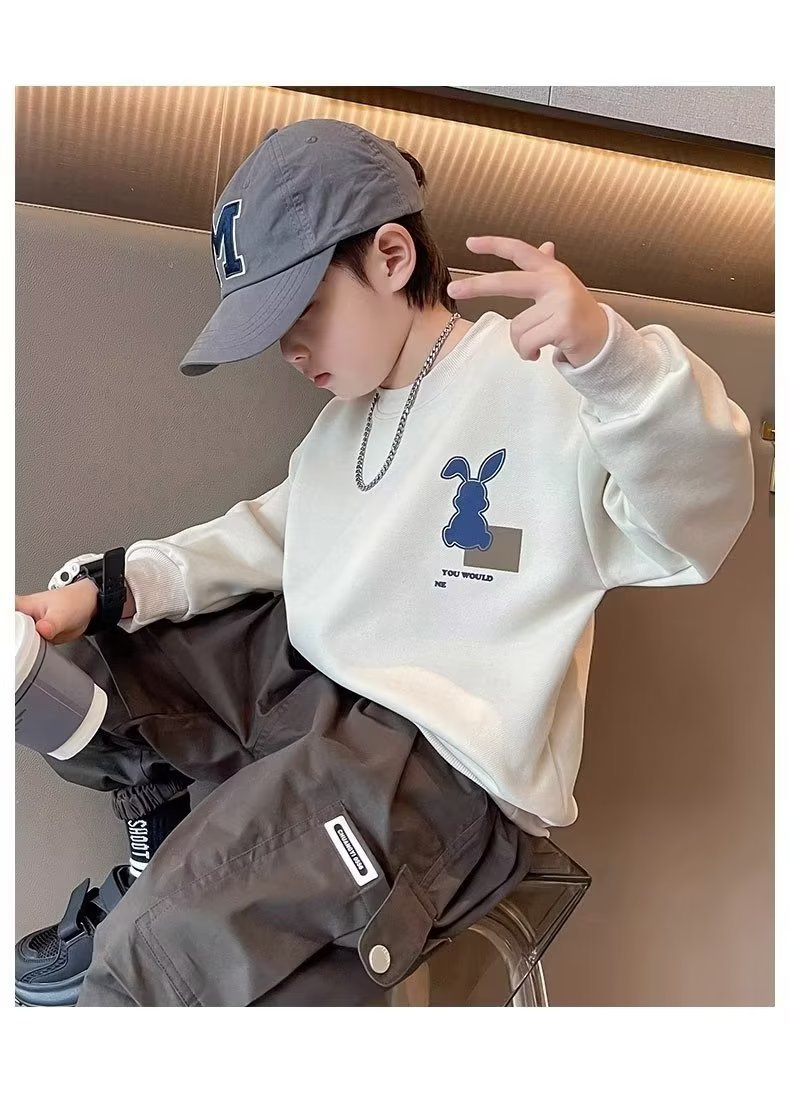 어린이 소년의 가을 스웨터 2023 새로운 봄 가을 겨울 큰 소년의 기모 탑스토어 가기