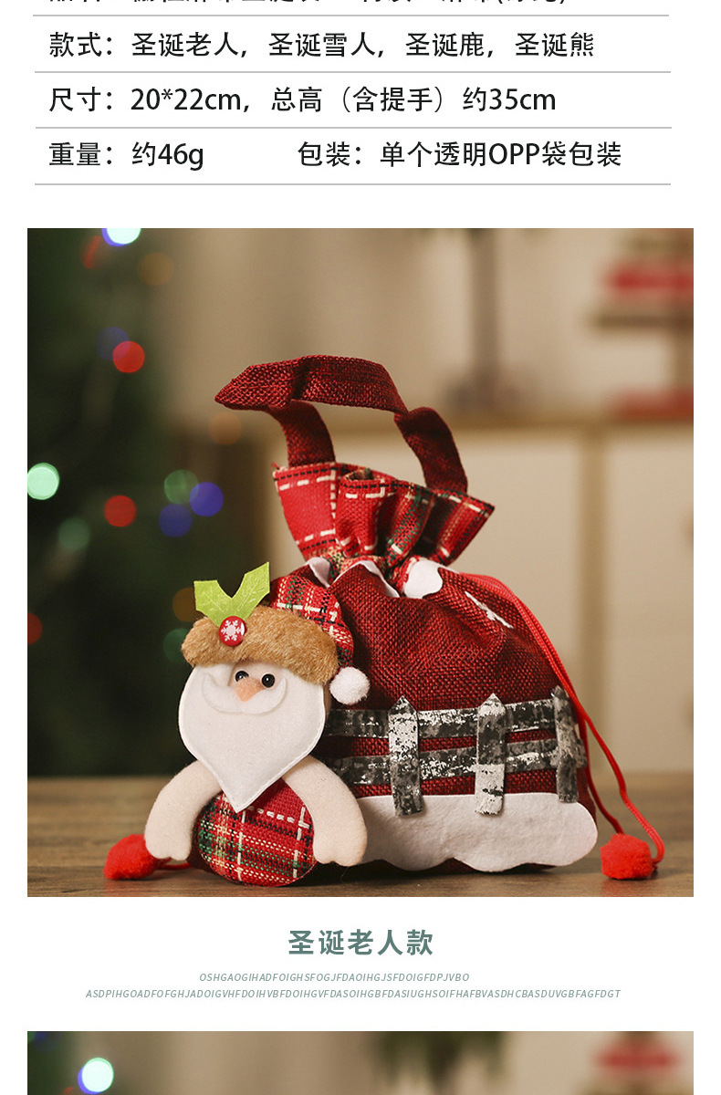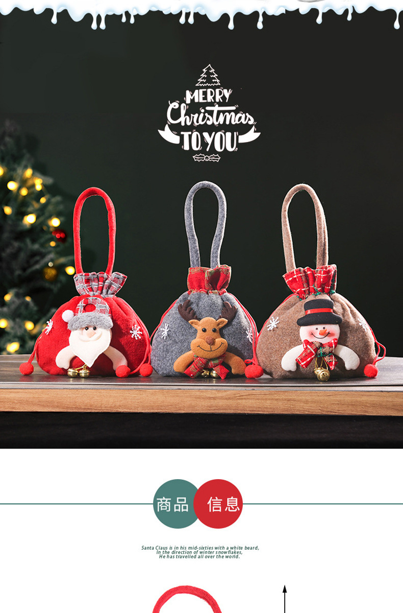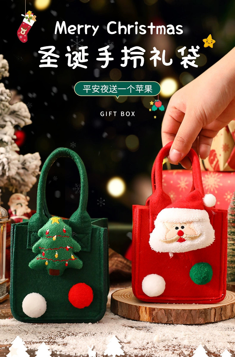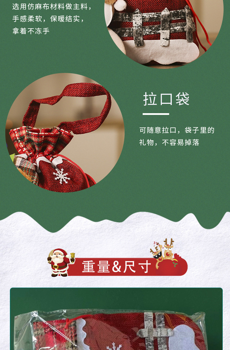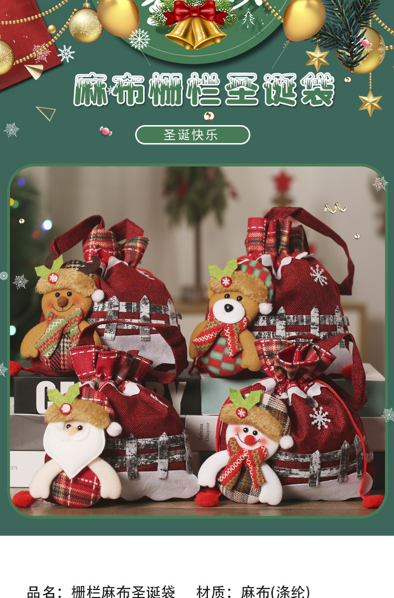 린넨 울타리 크리스마스 포켓 만화 동물 모양 크리스마스 사과 가방 어린이 작은 선물 토트 가방