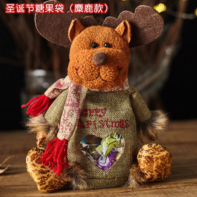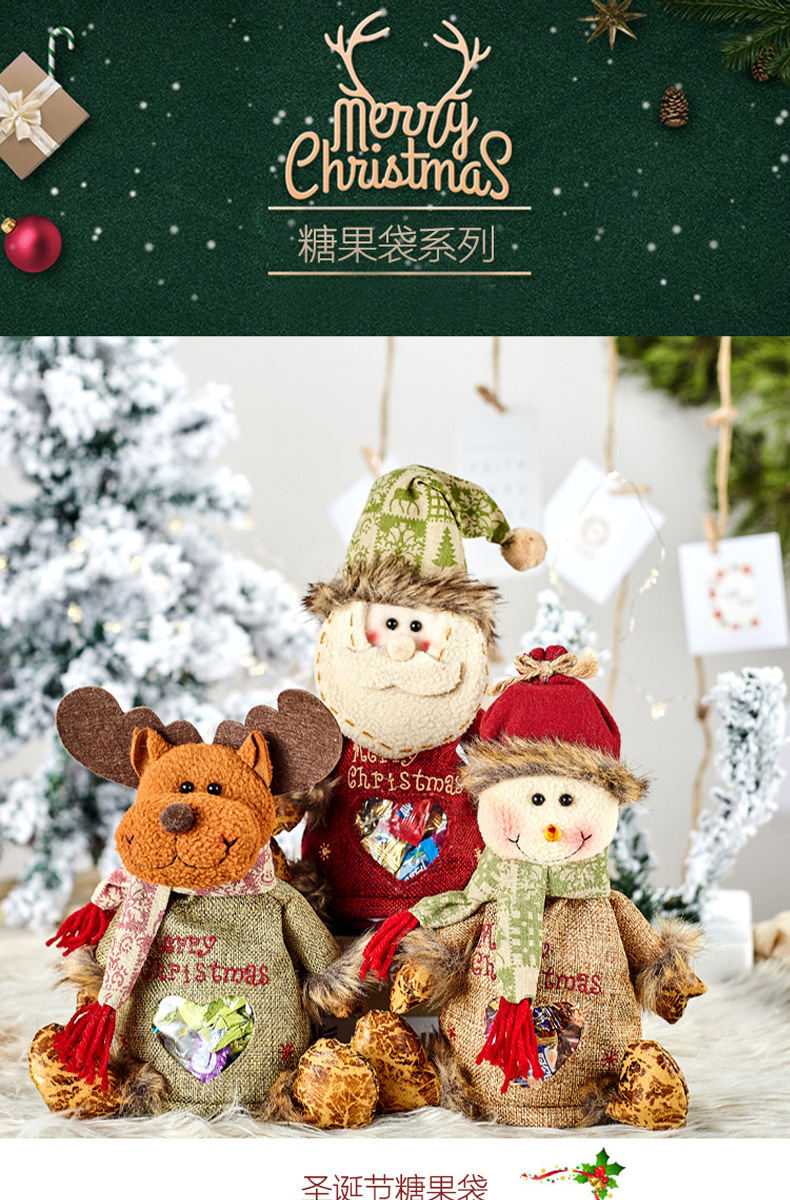 린넨 울타리 크리스마스 포켓 만화 동물 모양 크리스마스 사과 가방 어린이 작은 선물 토트 가방스토어 가기