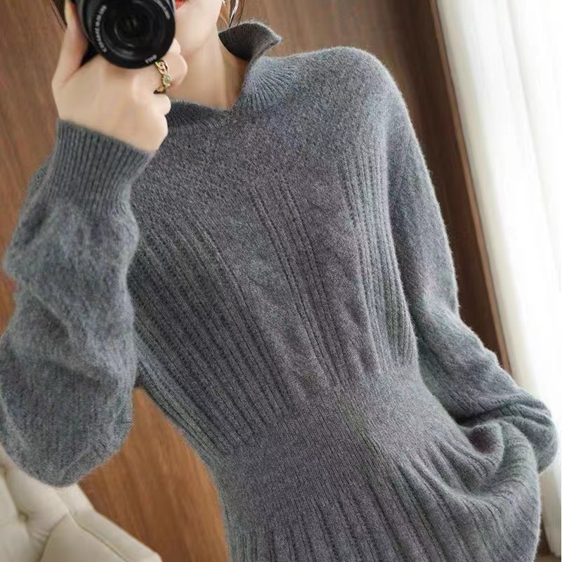 미니멀리스트 폴로 셔츠 스웨터 2023 새로운 여성 초가을 탑 게으른 양모베이스 니트 스웨터 두껍게