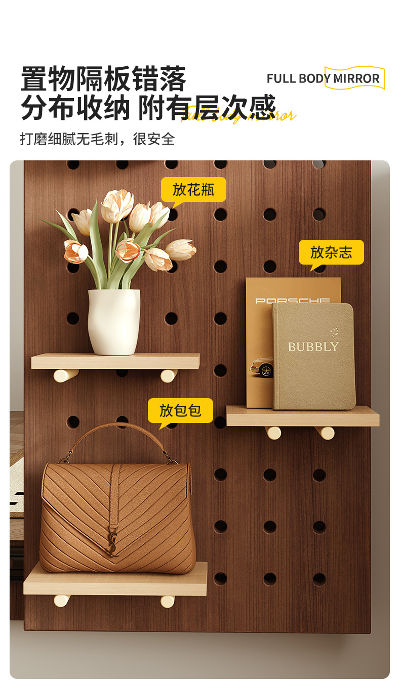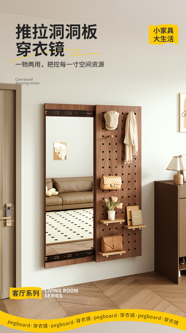 단단한 나무 구멍 보드 침투 거울 숨겨진 전신 거울 푸시-잡아 가구 밀착 벽 복도 피팅 거울