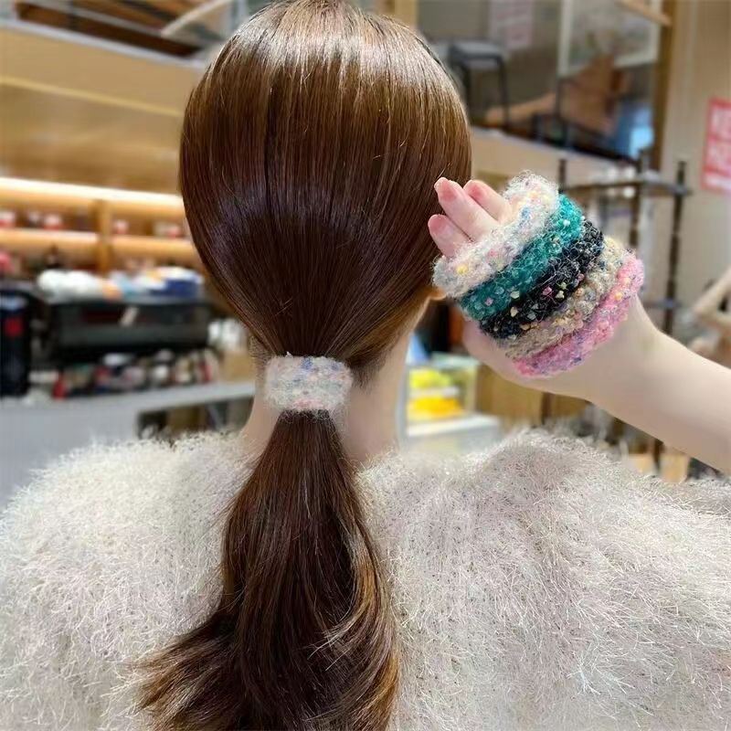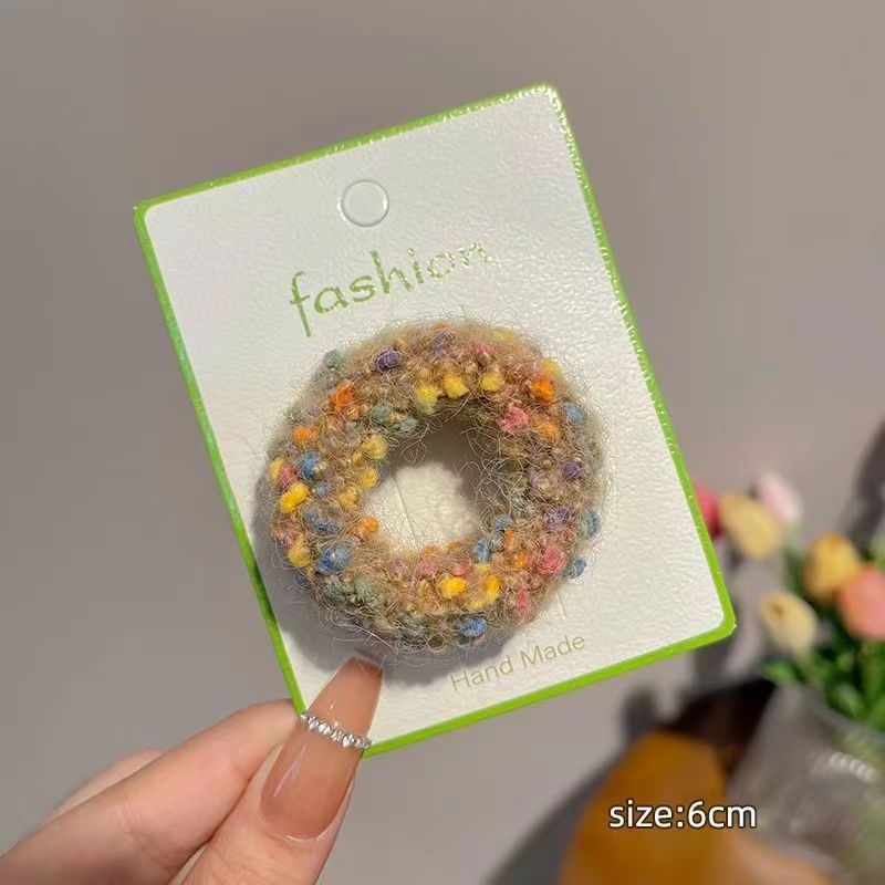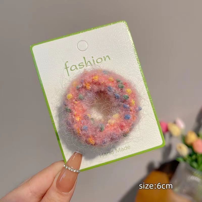 여성을위한 캔디 컬러 귀여운 달콤한 컬러 도넛 모직 헤어 밴드 가을, 겨울 작은 향기로운 하이 포니 테일 고무 밴드 머리띠