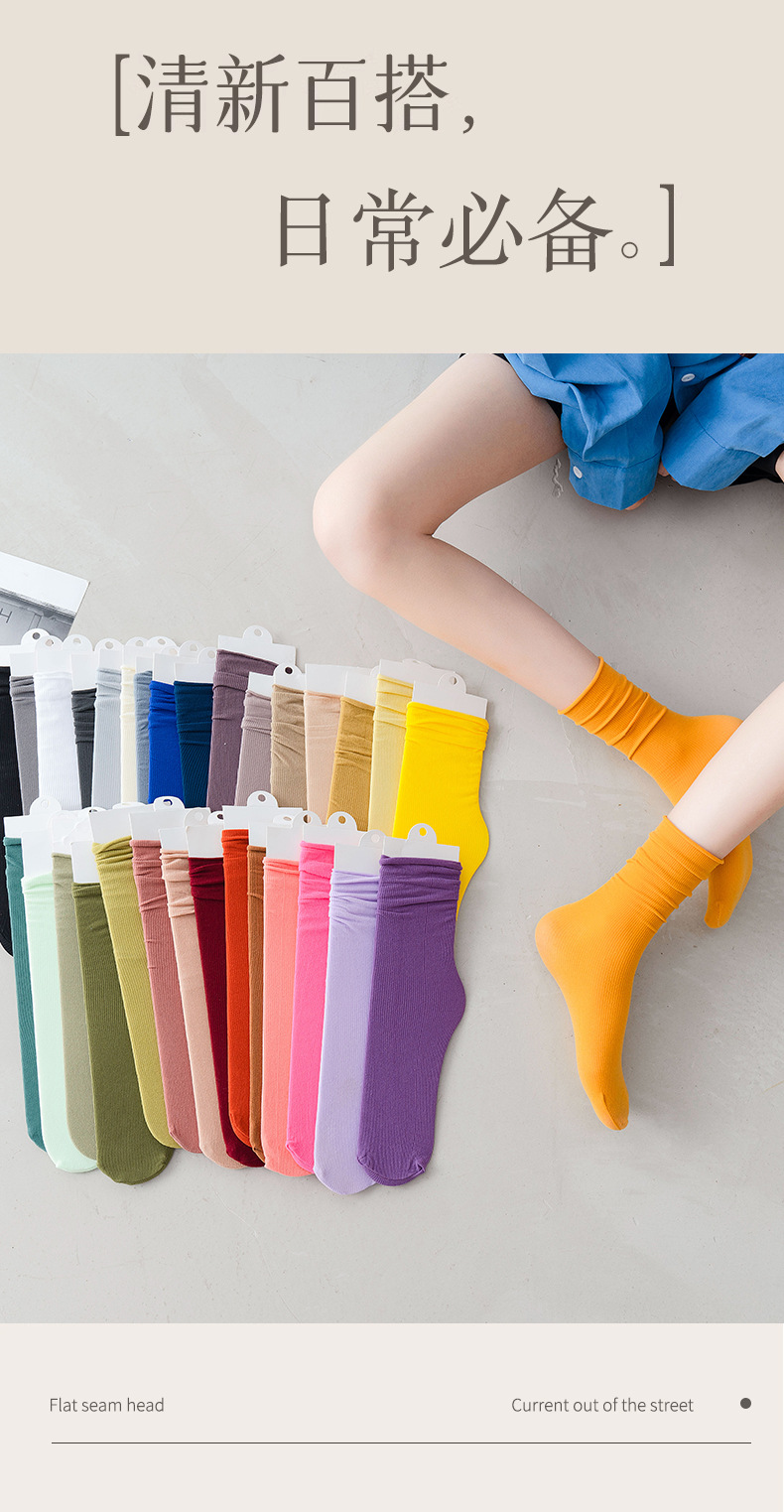 여성용 중목 양말, 단색 아이스 양말, 다용도 캔디 컬러, 인스 트렌드 통기성 양말, 도매 패션 양말스토어 가기