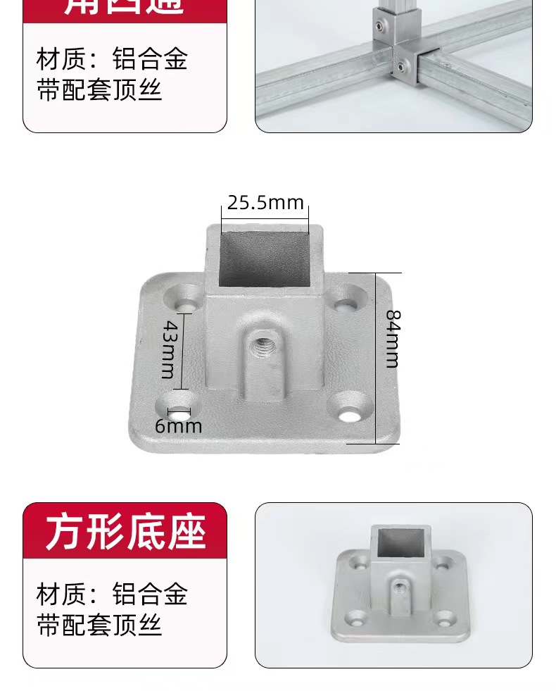 • 25*25 사각 튜브 베이스(외경 25mm 사각 튜브에 적합)