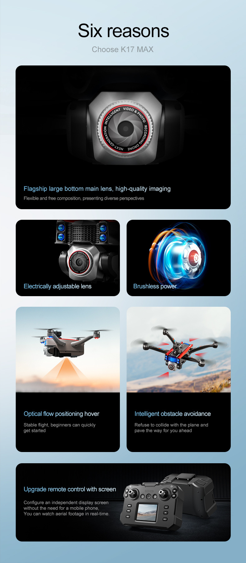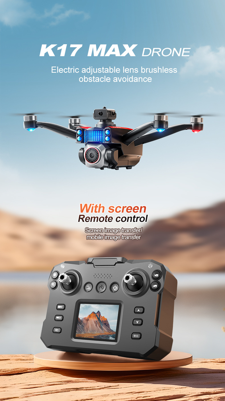 전송 화면이 있는 국경 간 K17 원격 제어 브러시리스 HD 항공 사진 드론 장애물 회피 쿼드콥터 도매