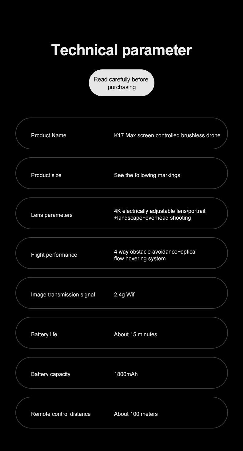 전송 화면이 있는 국경 간 K17 원격 제어 브러시리스 HD 항공 사진 드론 장애물 회피 쿼드콥터 도매스토어 가기