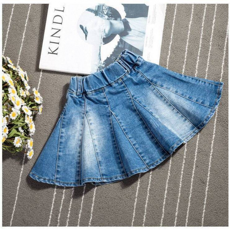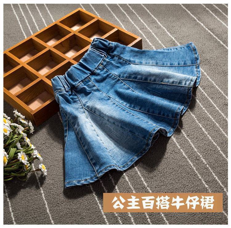 여아 스커트 봄과 가을 신작 아동복 데님 스커트 아동 스커트 한국식 짧은 스커트 중대형 아동용 베이비 플리츠 스커트