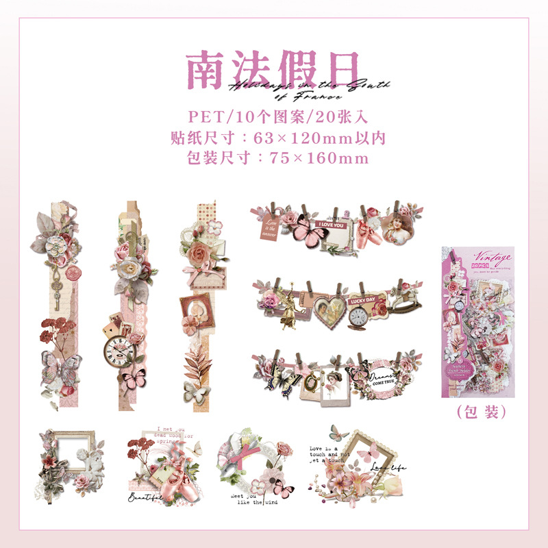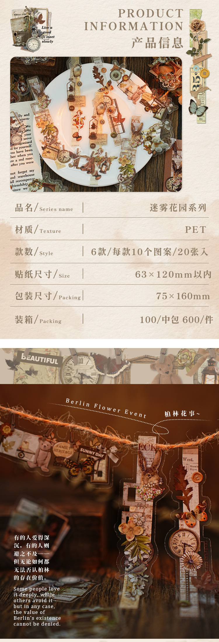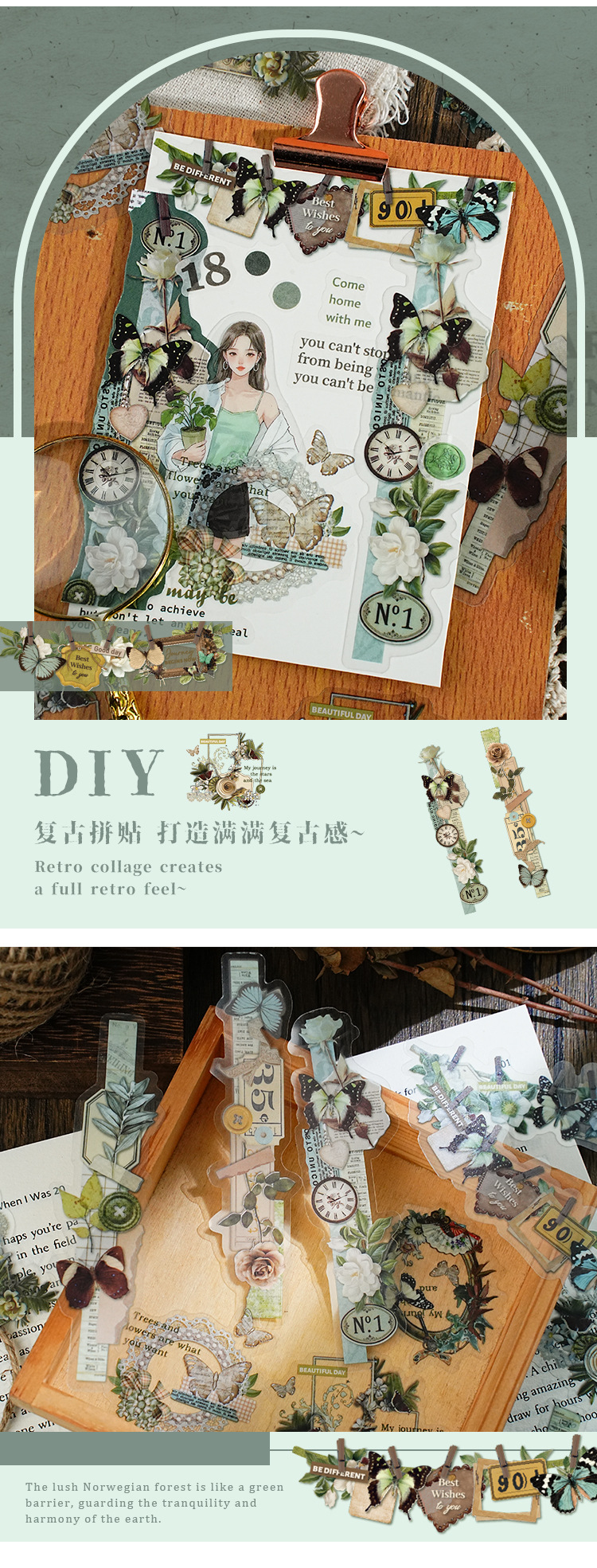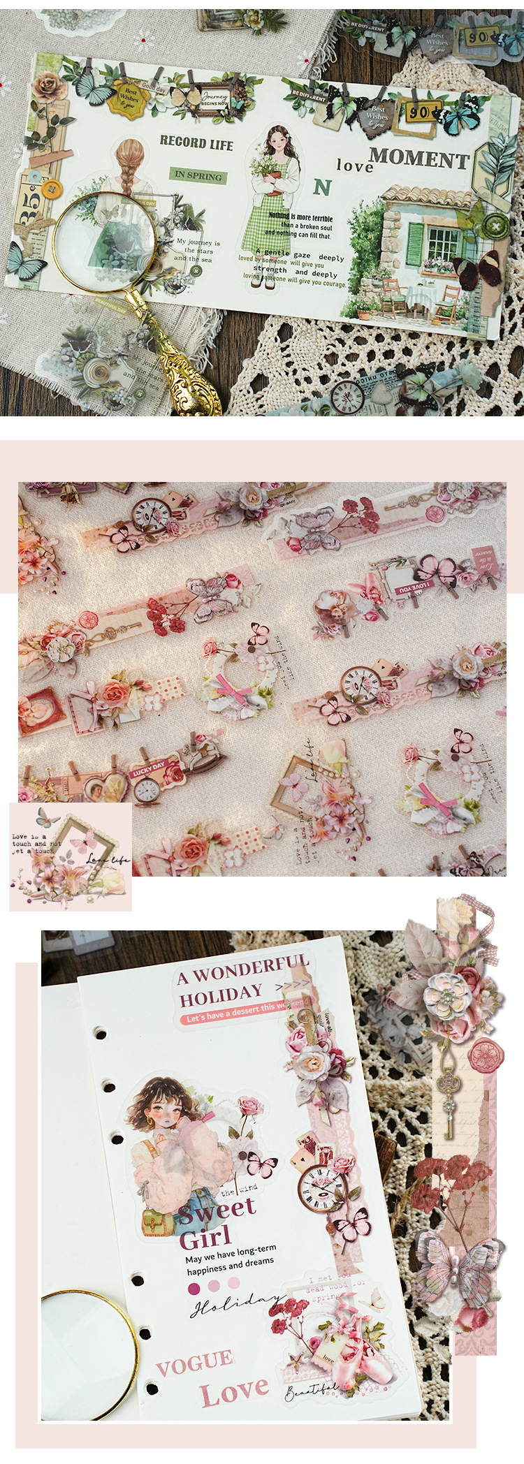 이탈리아 새 애완 동물 스티커 가방 안개 정원 시리즈 레트로 인 스타일 긴 스티커 손 계정 Diy 테두리 장식 스티커스토어 가기