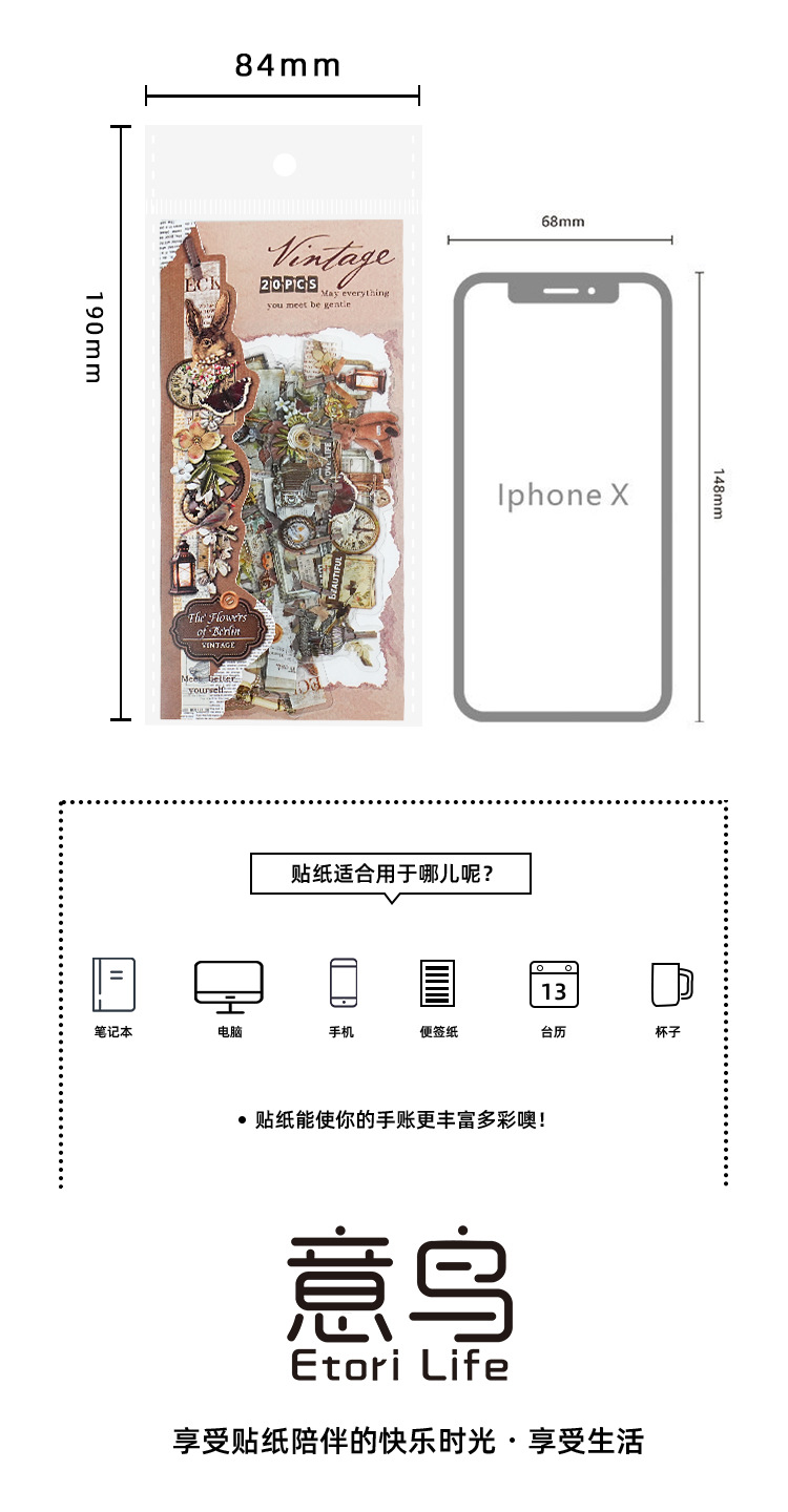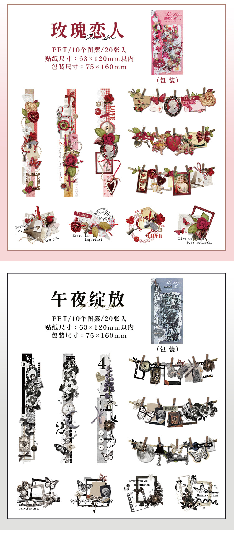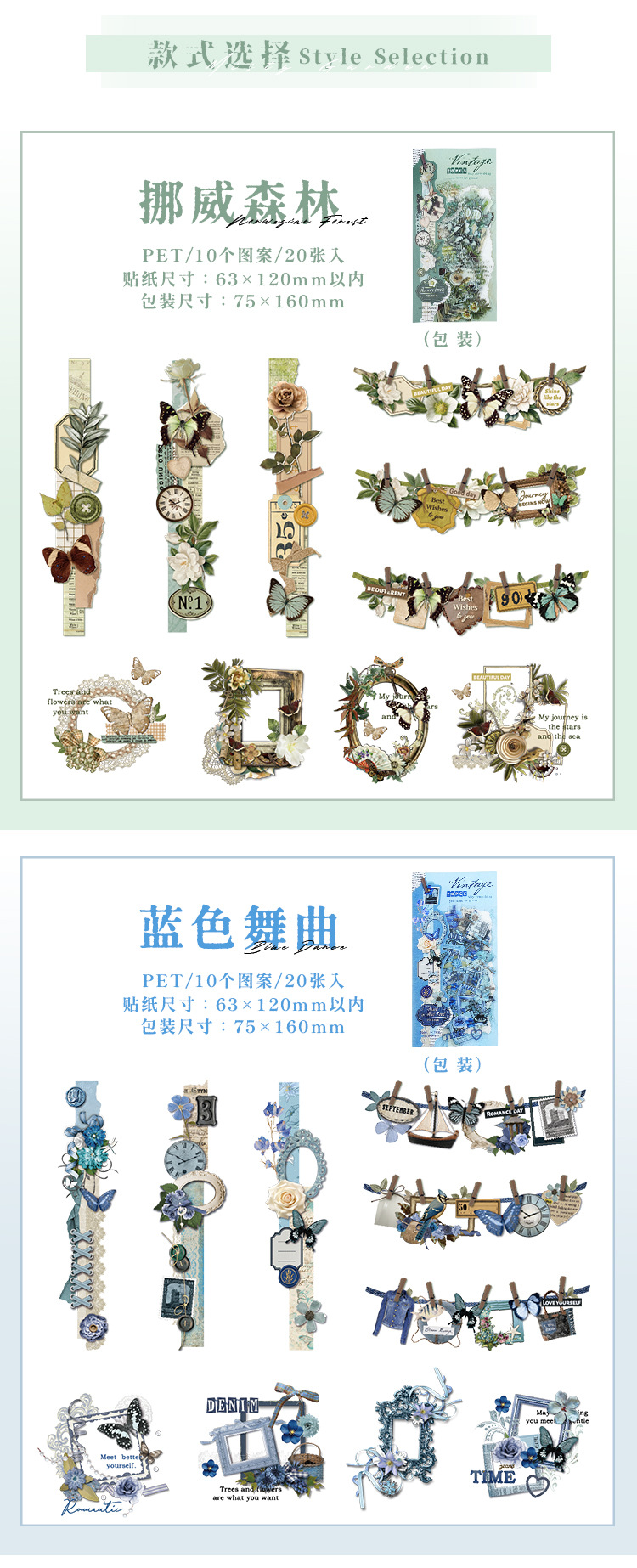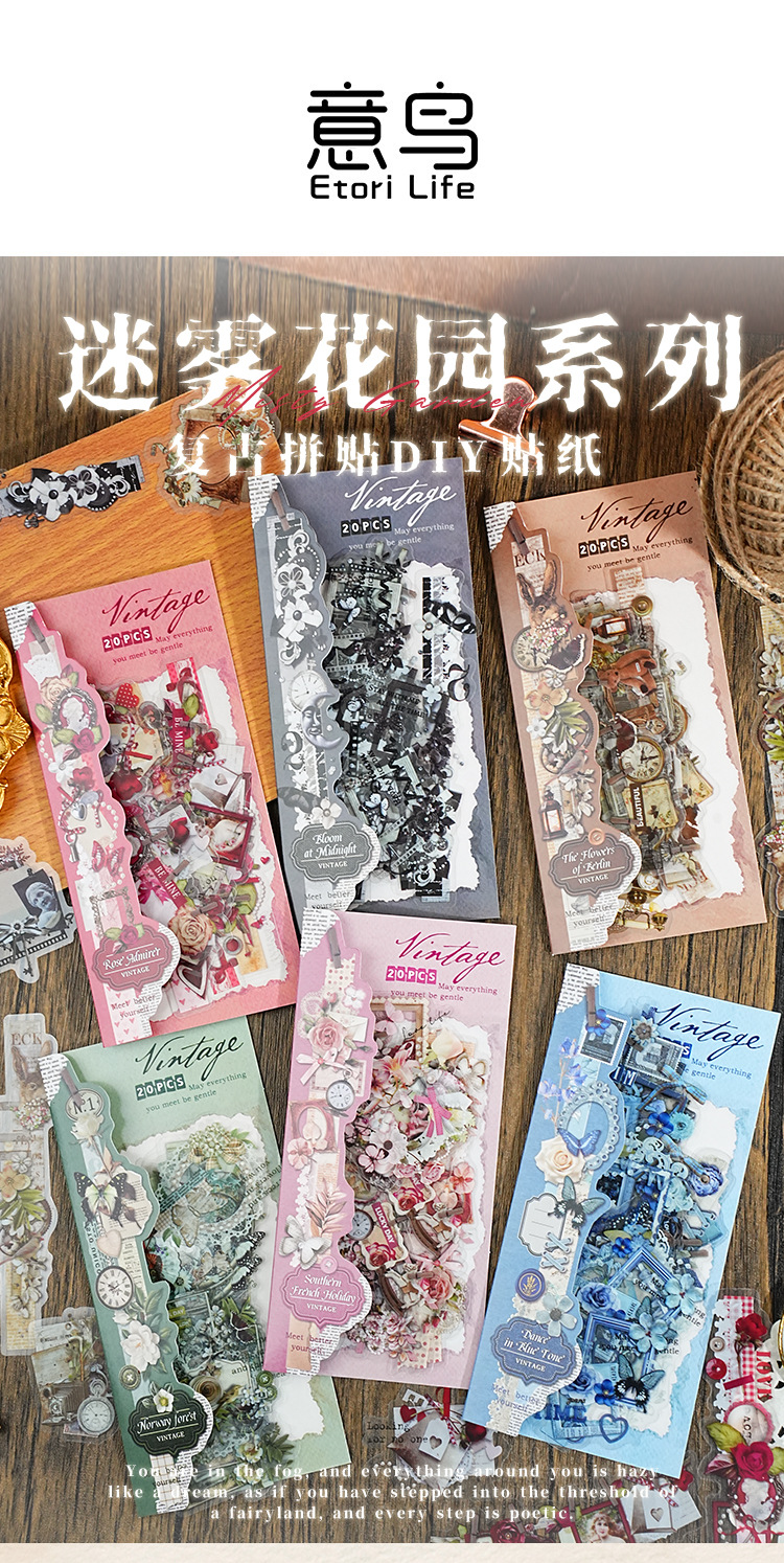 이탈리아 새 애완 동물 스티커 가방 안개 정원 시리즈 레트로 인 스타일 긴 스티커 손 계정 Diy 테두리 장식 스티커스토어 가기