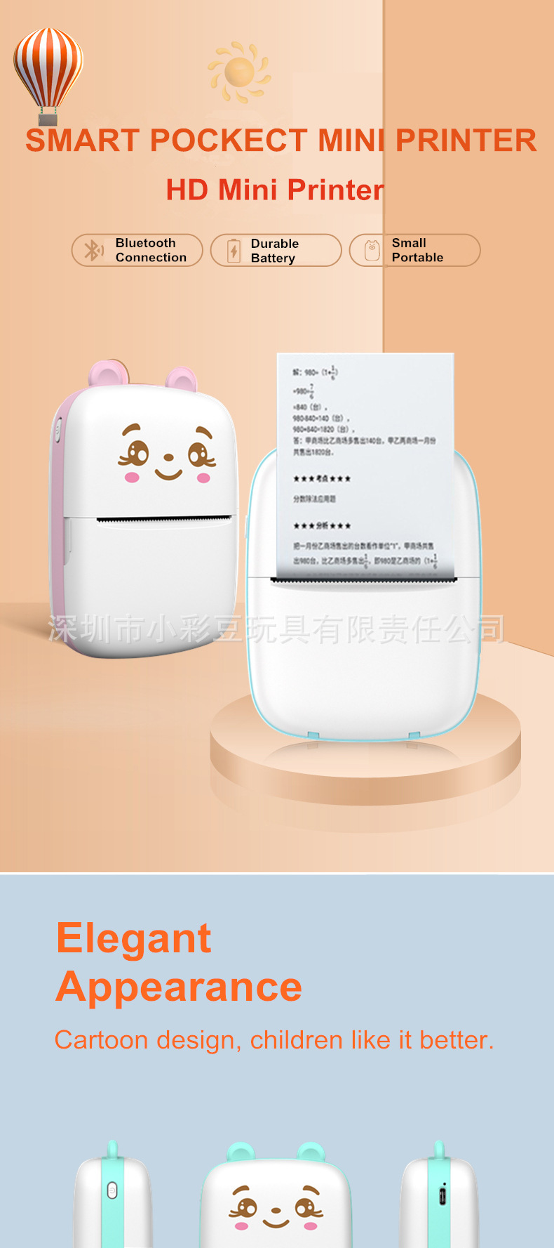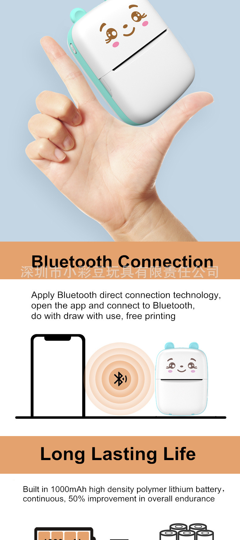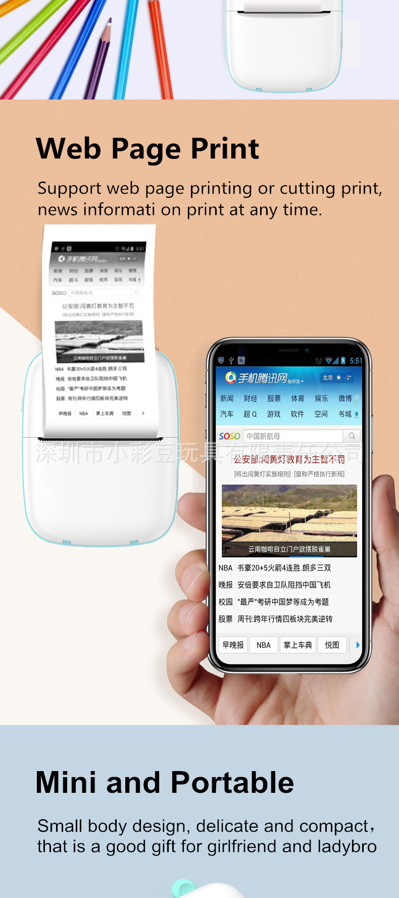 휴대폰에 연결할 수 있는 무선 열전사 프린터, 스마트 무잉크 고화질 인쇄 홈 포토 프린터