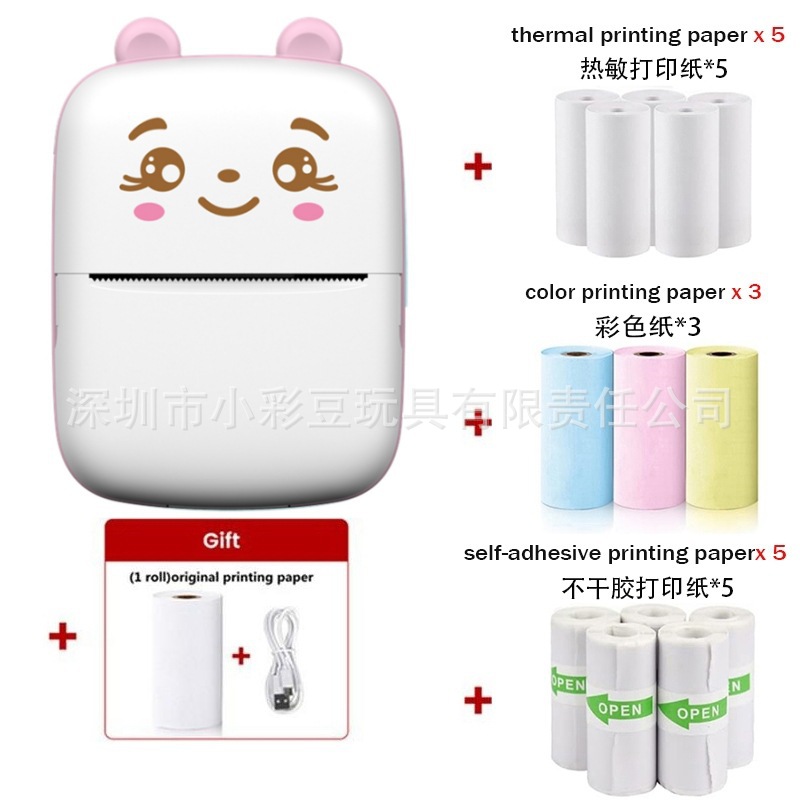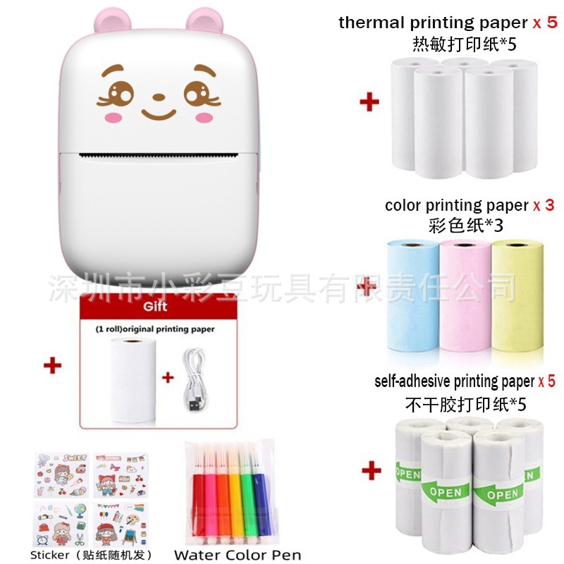 • A8C 핑크-영어 버전 [감열지 1롤 + 감열지 5롤 + 스티커 5롤 + 컬러지 3롤 + 수채펜 6개 + 가방 + 전자 애완동물]