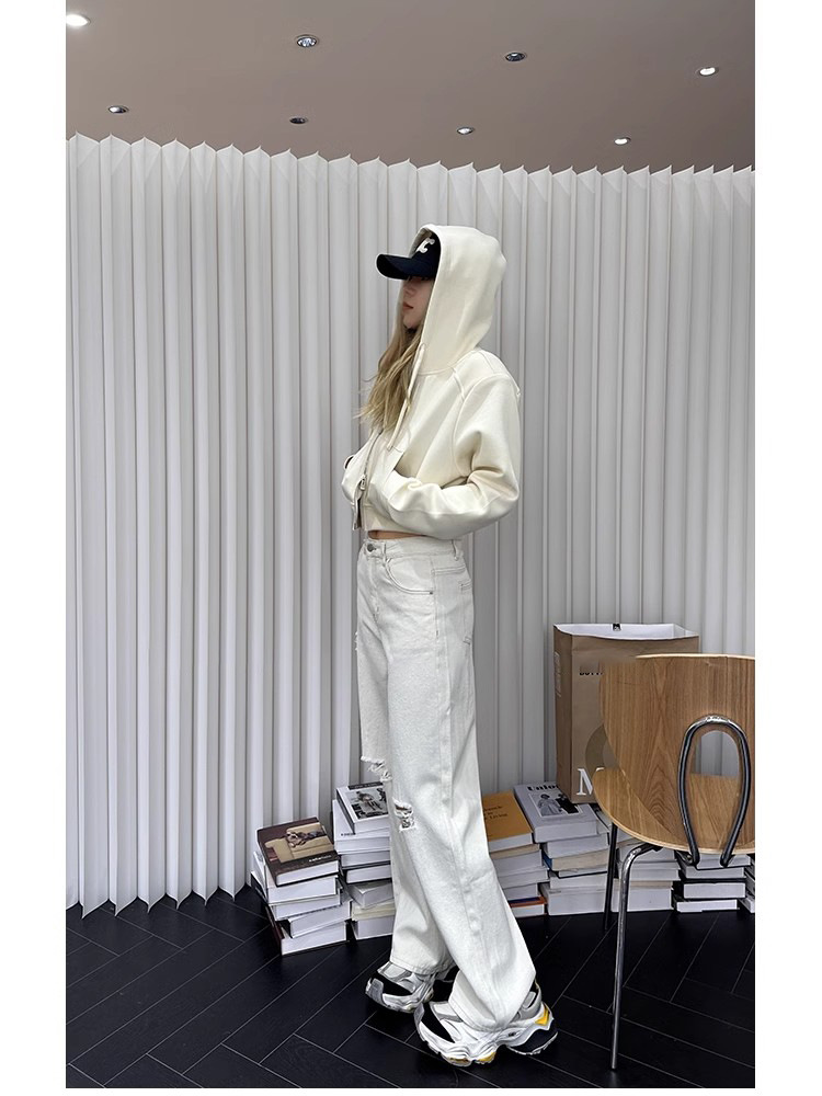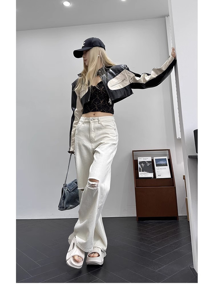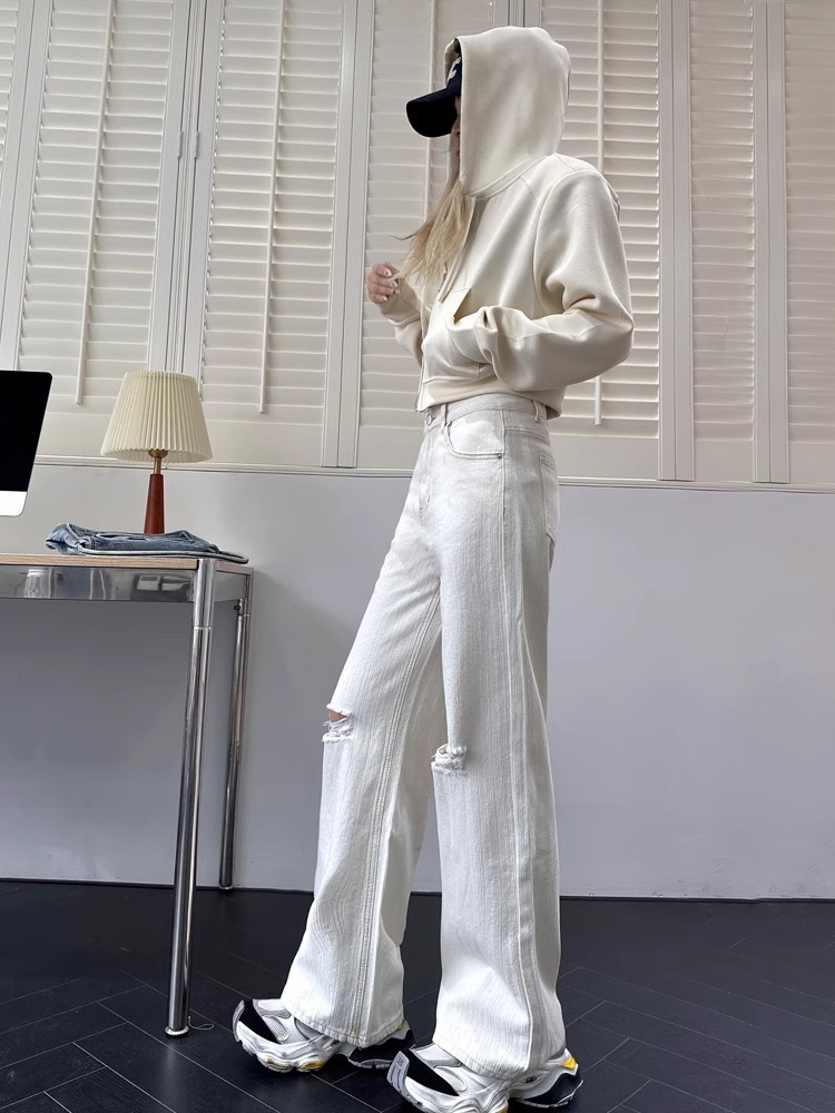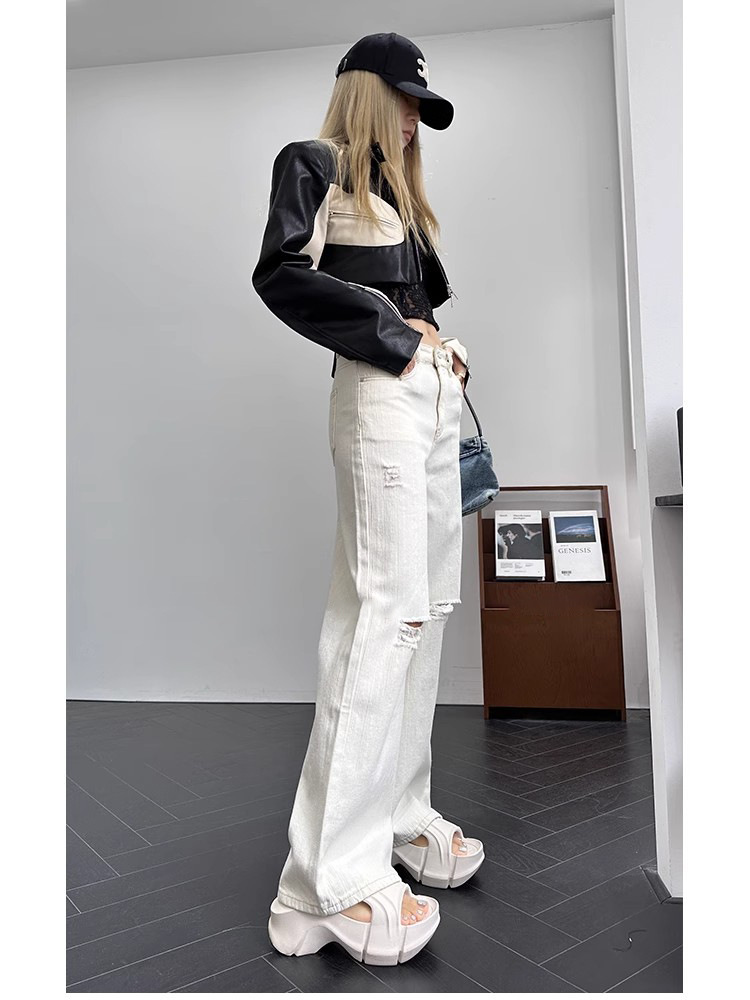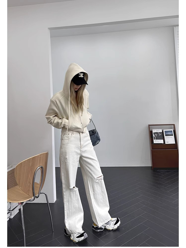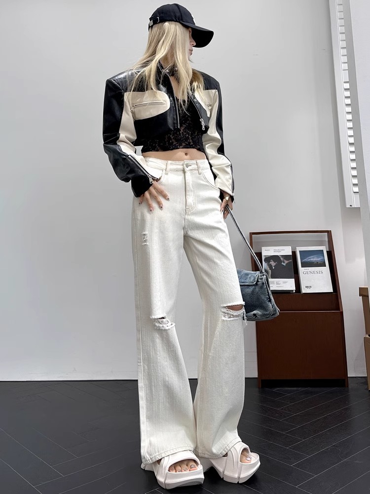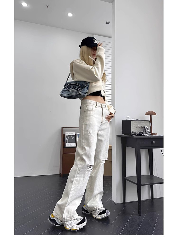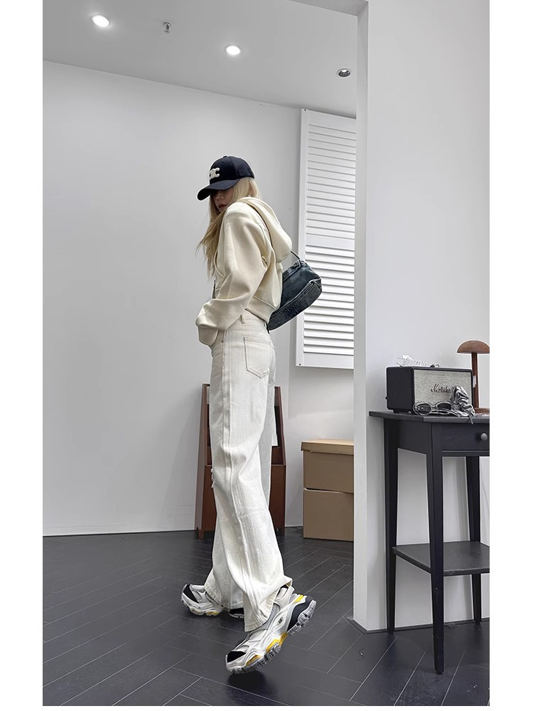 핑크색 하이웨이스트 스트레이트 데미지 진 여성용 2025 여름 신상 루즈핏 슬림 와이드 레그 롱 팬츠스토어 가기