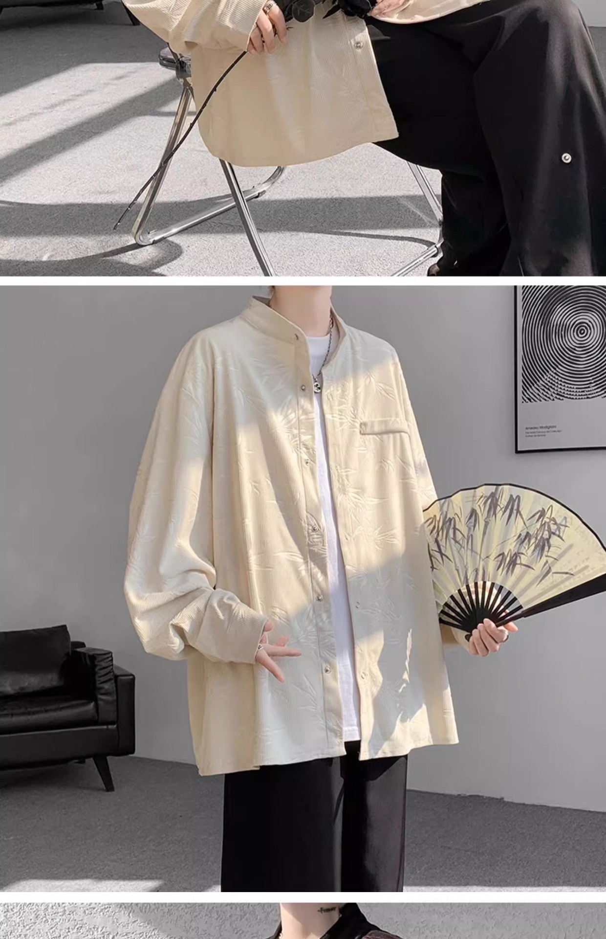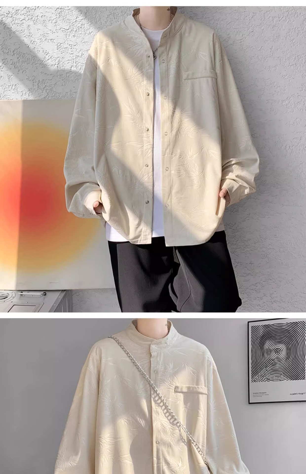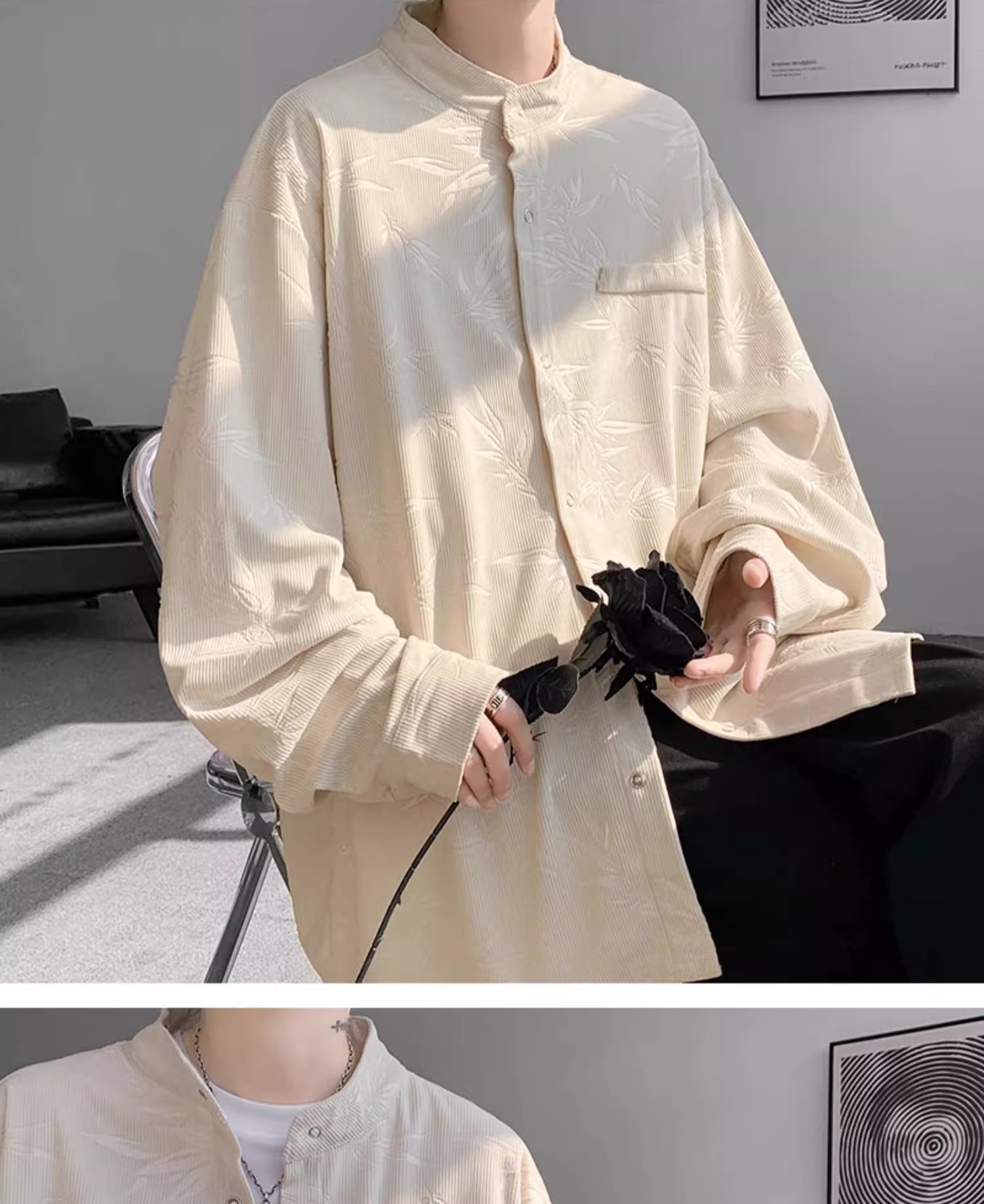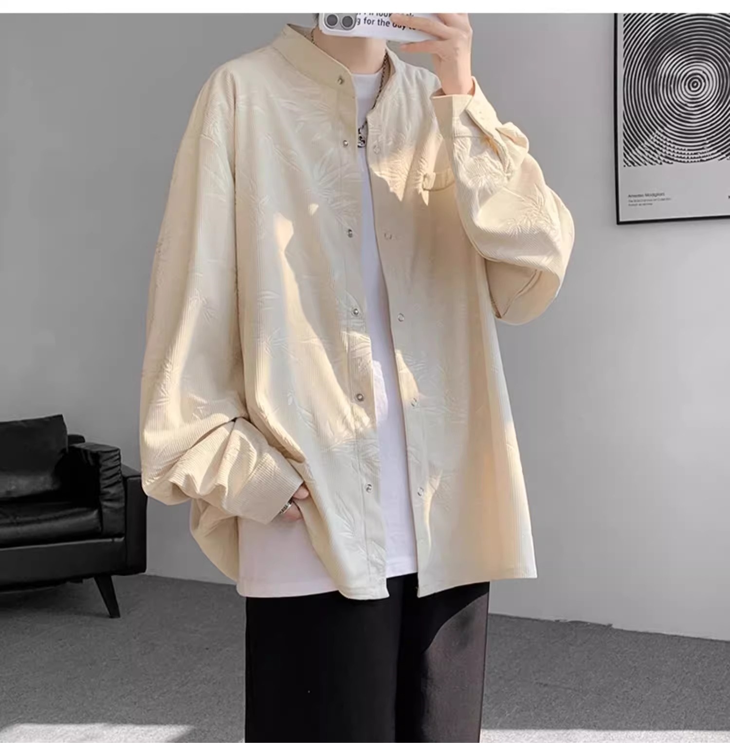 남성용 새로운 중국 스타일 셔츠, 봄, 가을 튜닉 재킷, 멋진, 고급, 다재다능하고 트렌디한 캐주얼 인치 의류스토어 가기
