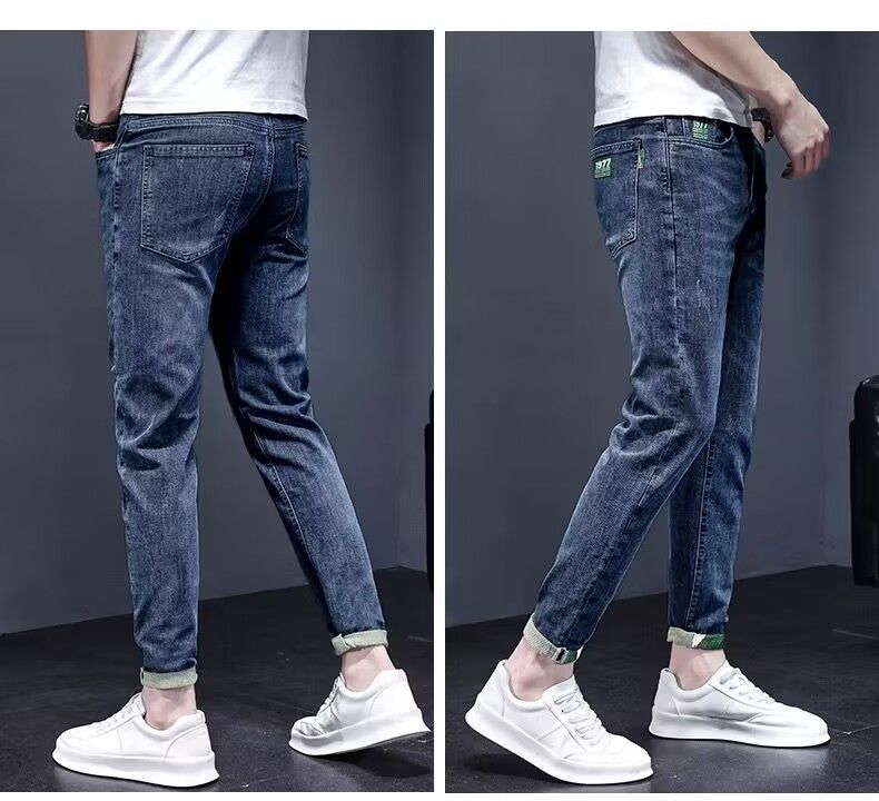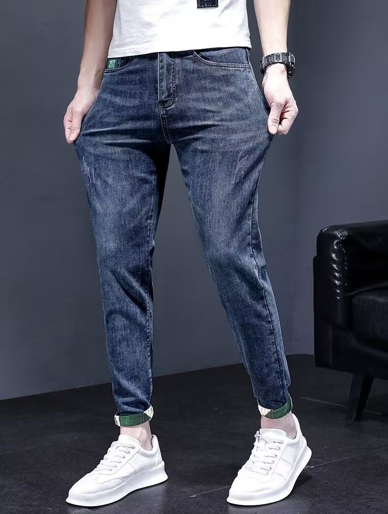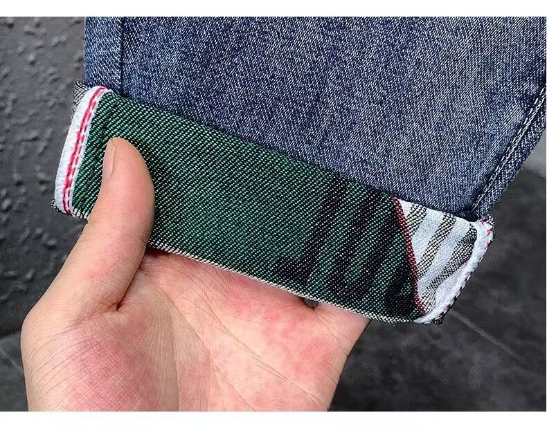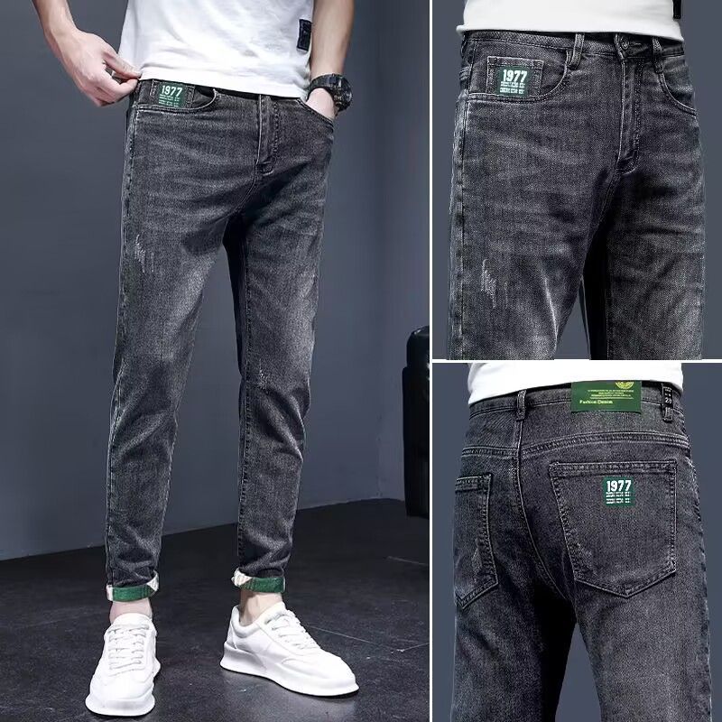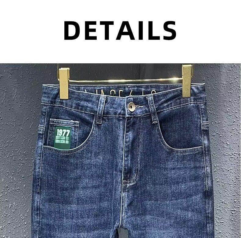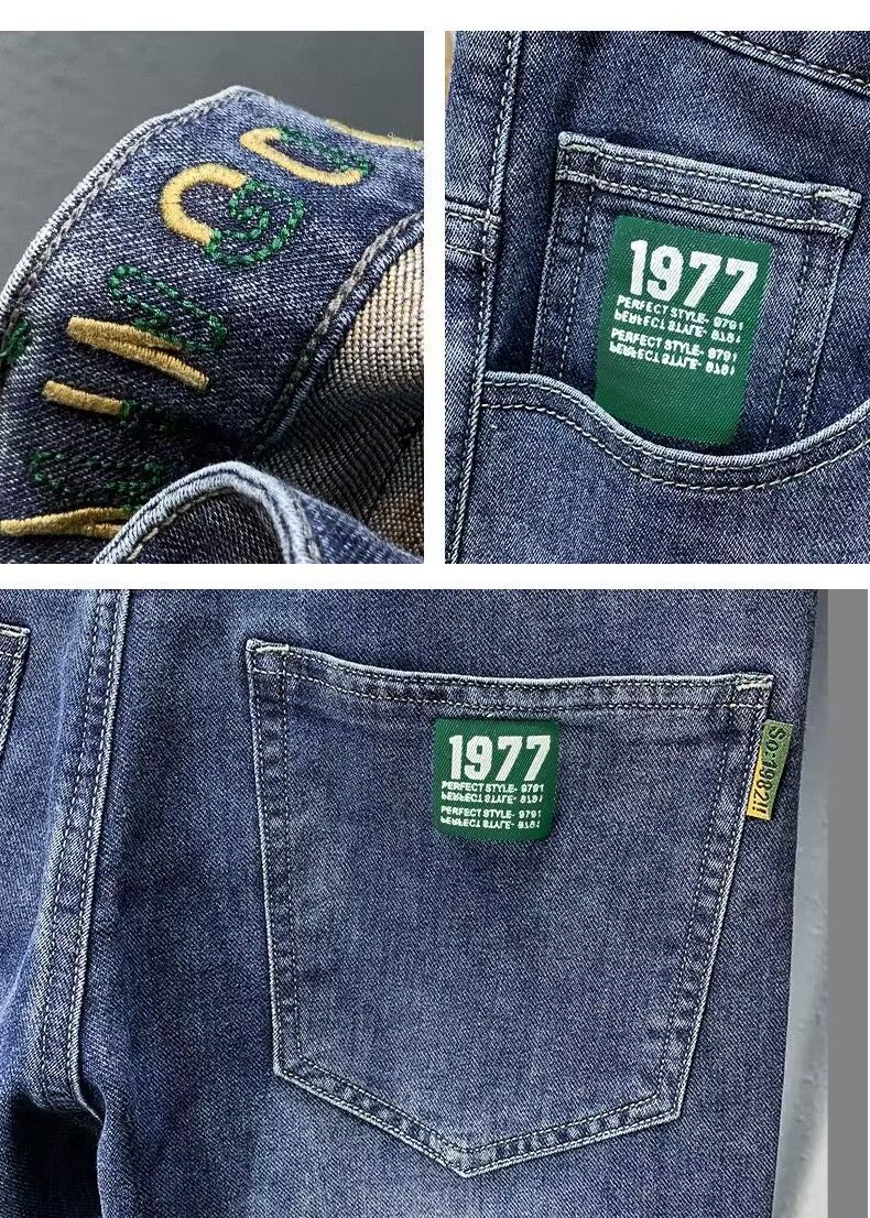 하이 엔드 아메리칸 스타일 트렌디 브랜드 청바지 남성용 트렌디 인 수 놓은 간단한 인테리어 탄성 슬림 핏 작은 발스토어 가기