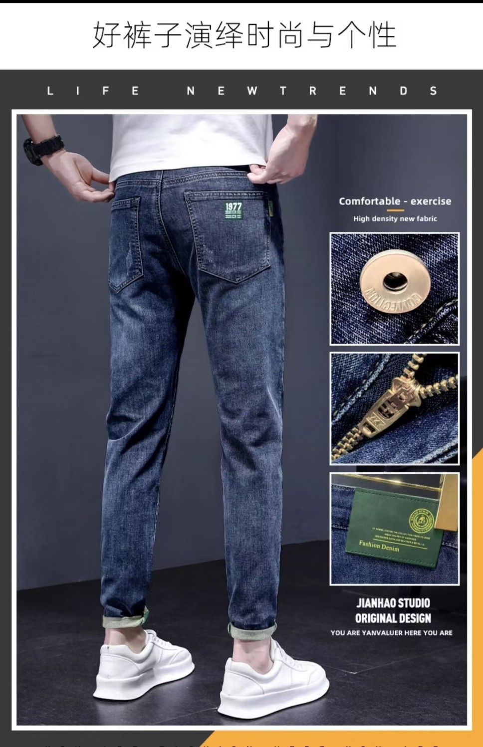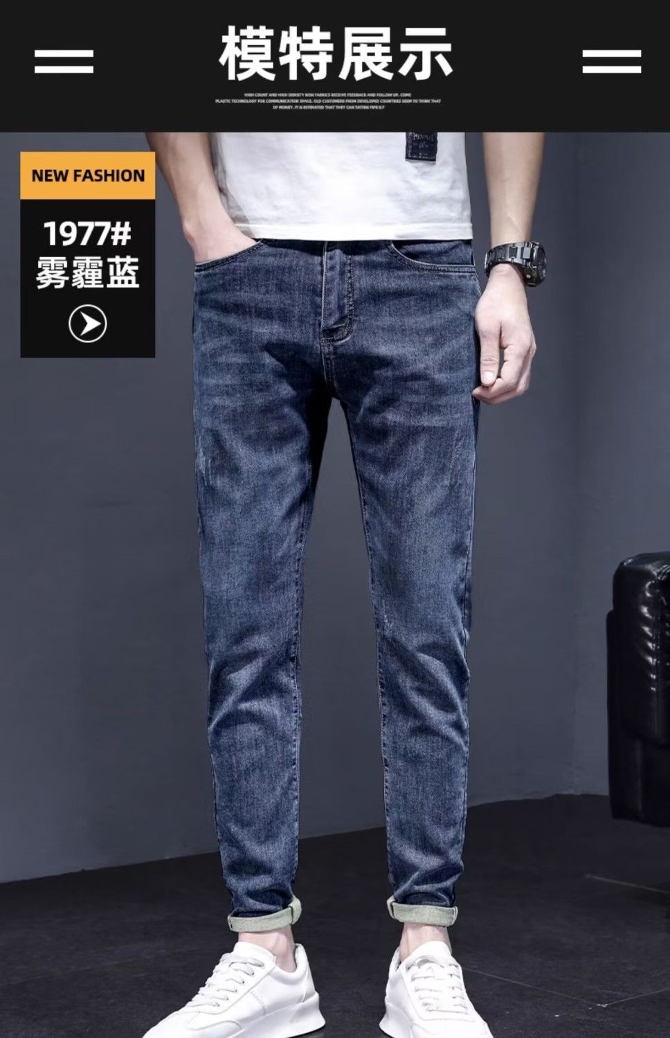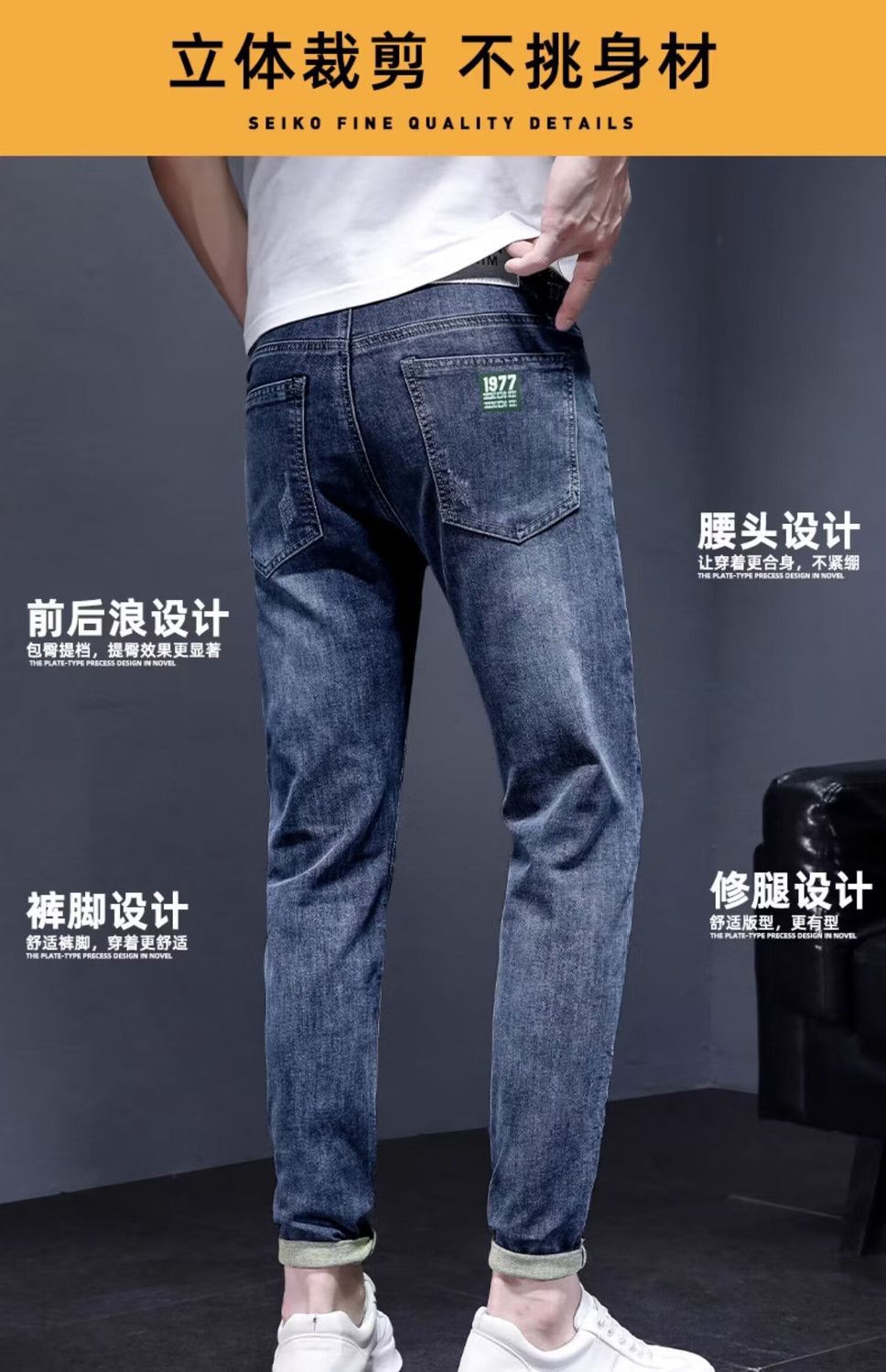 하이 엔드 아메리칸 스타일 트렌디 브랜드 청바지 남성용 트렌디 인 수 놓은 간단한 인테리어 탄성 슬림 핏 작은 발스토어 가기