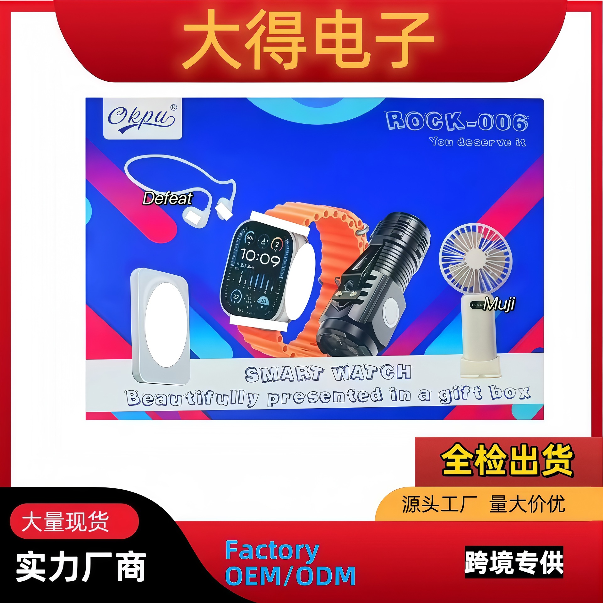 크로스보더 R0CK-006 스마트워치 남성용 다기능 장시간 배터리 이어폰 팬 세트 블루투스 통화 화창베이스토어 가기