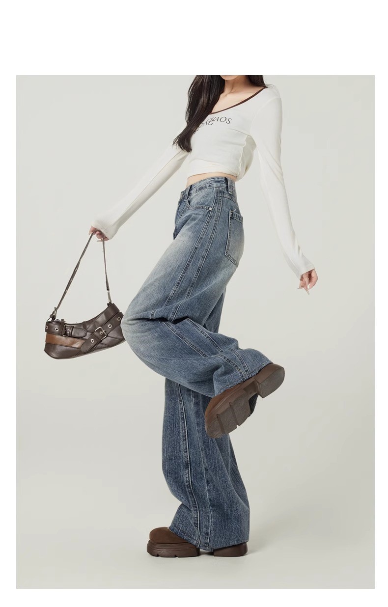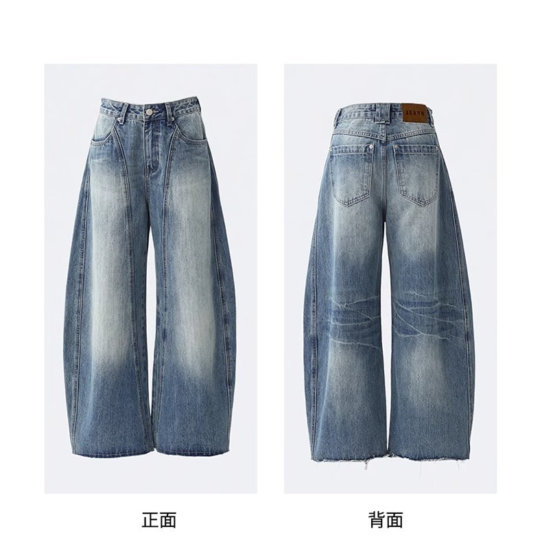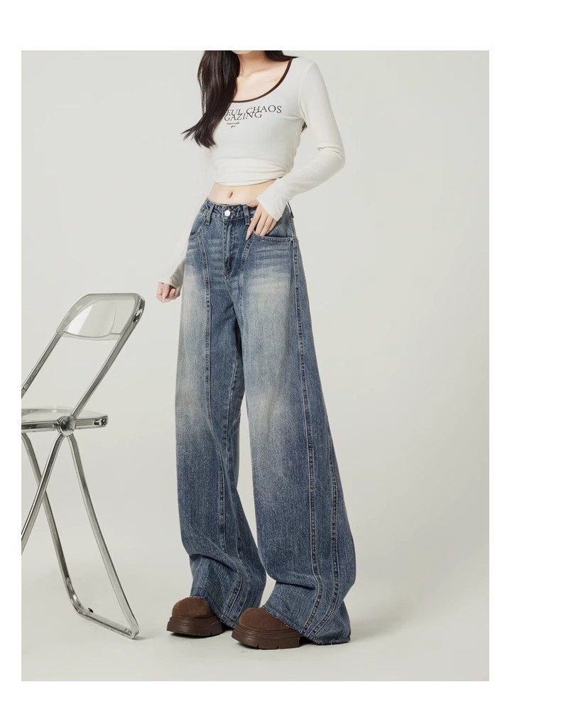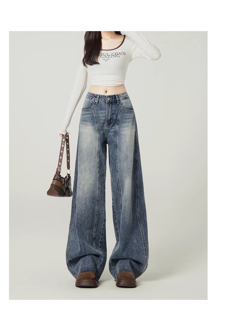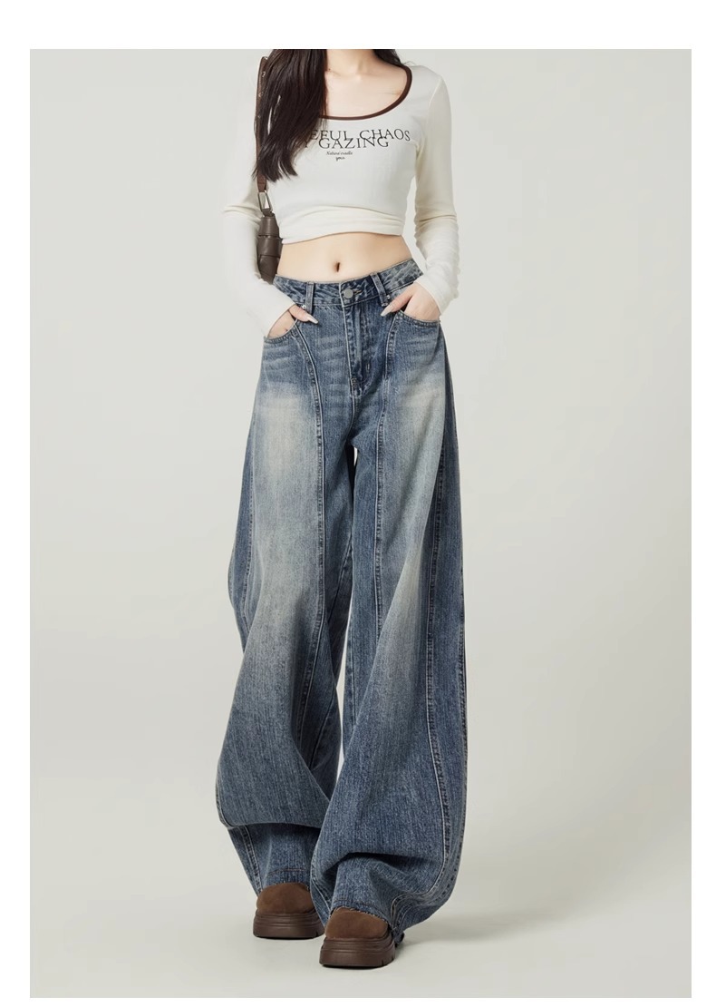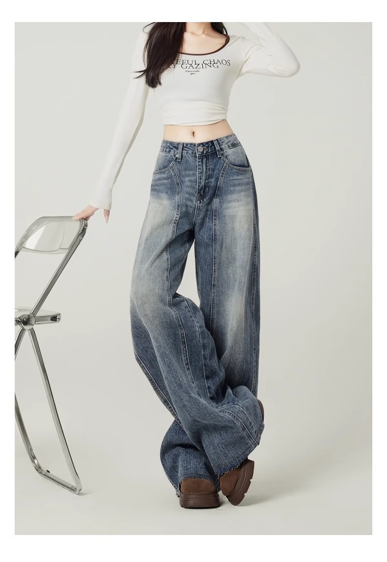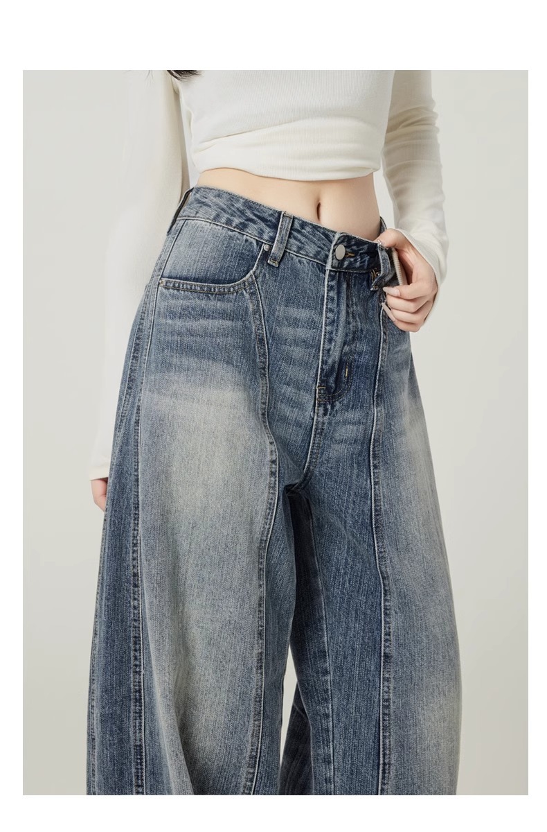 빈티지 블루 하이 스트리트 루즈 와이드 레그 청바지 여성용 트렌디 올 매치 아메리칸 스타일 디자인 센스 하이 허리 데프 센스 마체테 바지스토어 가기