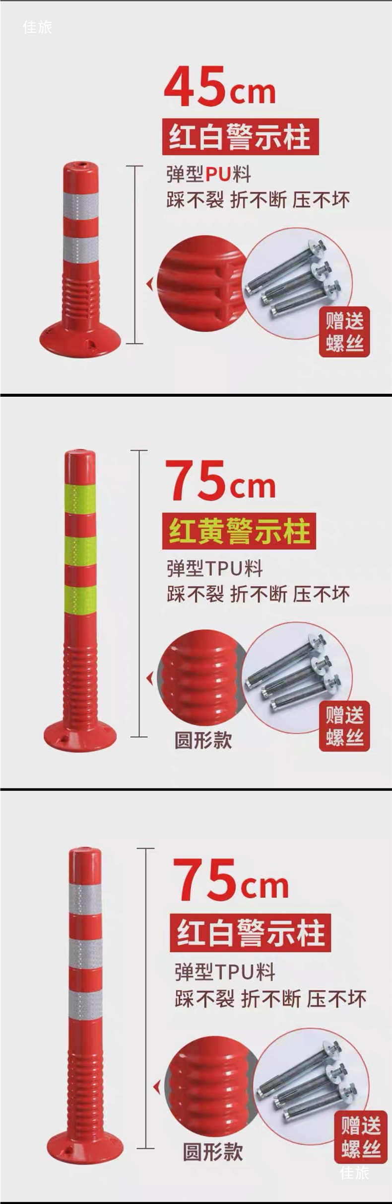 • 45cm (PU 경고 컬럼) 빨간색과 흰색