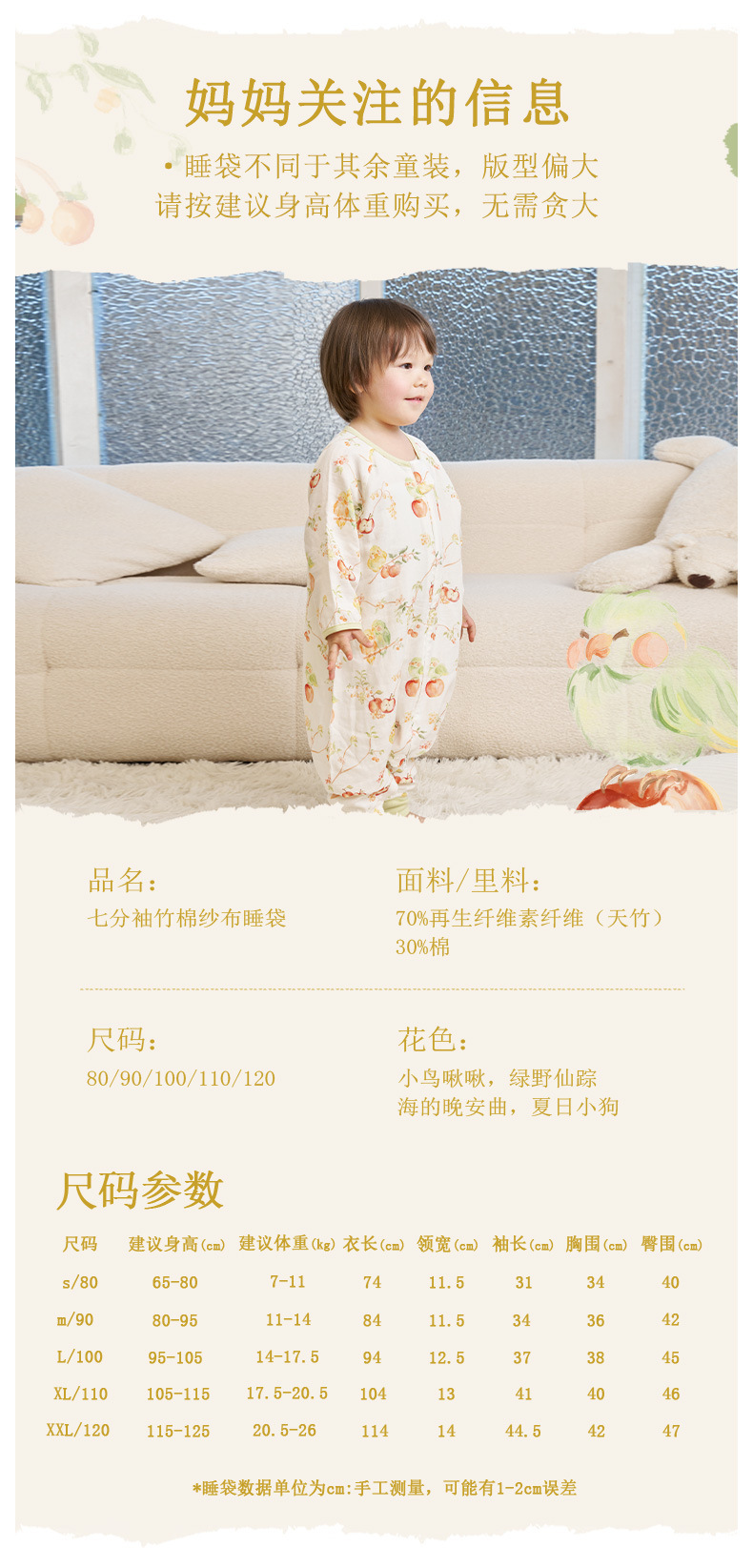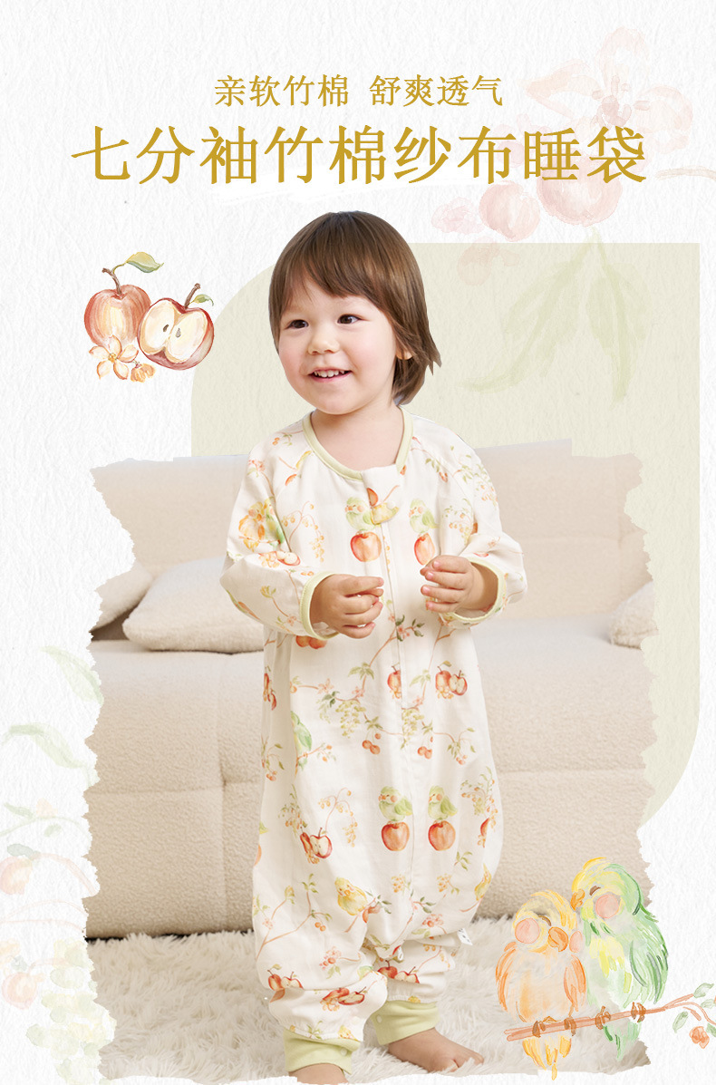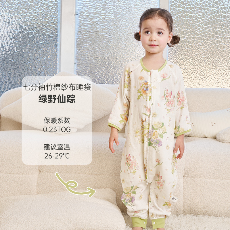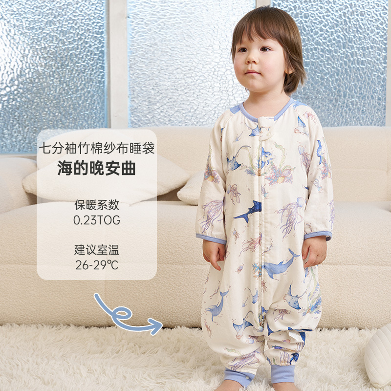 신작 봄 여름 7부 소매 대나무 면사 어린이 침낭 얇은 점프 슈트 침낭 더블 레이어 다리 분할 아기 침낭스토어 가기