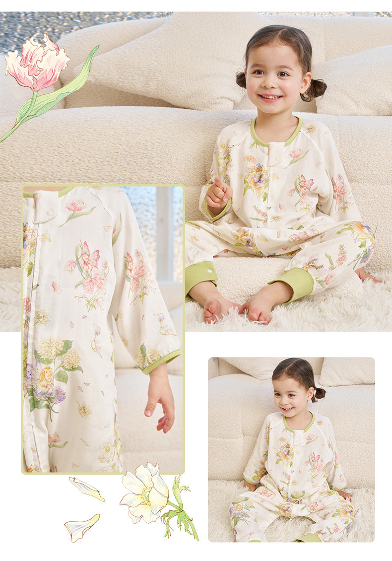 신작 봄 여름 7부 소매 대나무 면사 어린이 침낭 얇은 점프 슈트 침낭 더블 레이어 다리 분할 아기 침낭