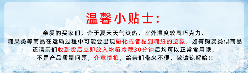 商品一旦发货,不支持拦截与拒收,不支持改地址,因快递原因导致商品影响食用或收到货后发现(错发。漏发,胀袋。漏袋等异常问题)请24小时内拍照联系客服,我们会妥善处理。因未能及时取件,导致商品无法以食用,无法理赔!