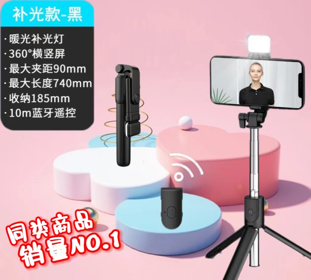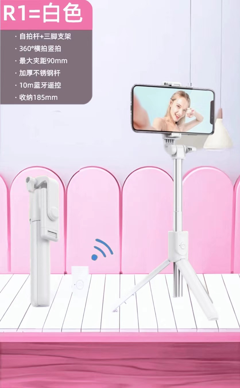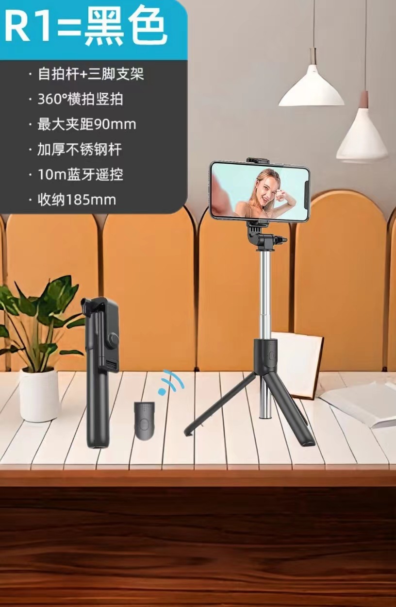 R1 셀카 스틱 블루투스 라이브 다기능 스탠드 휴대 전화 라이브 삼각대 휴대 전화 셀카 스틱 블루투스
