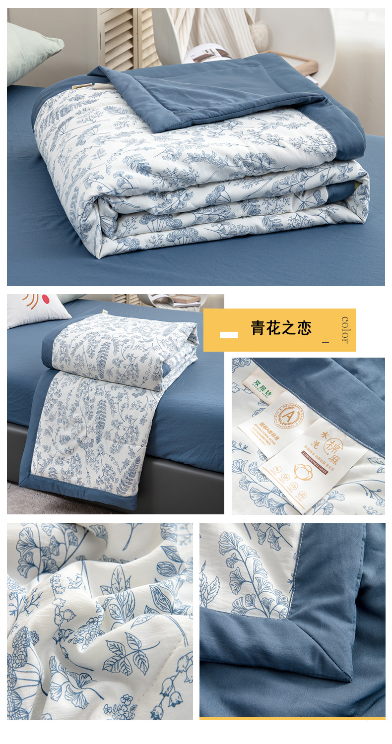 새로운 A급 워싱 면마 여름 이불 4종 세트 면마 이중 거즈 콩 여름 이불 에어컨 이불스토어 가기