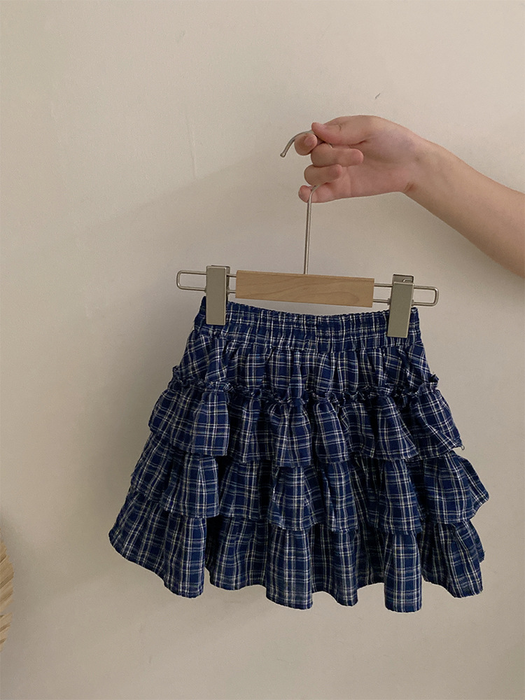 여자 아메리칸 스타일 고양이 어깨 반팔 티셔츠 여자 여름 2025 새로운 어린이 올 매치 체크 무늬 스커트 투피스 세트스토어 가기