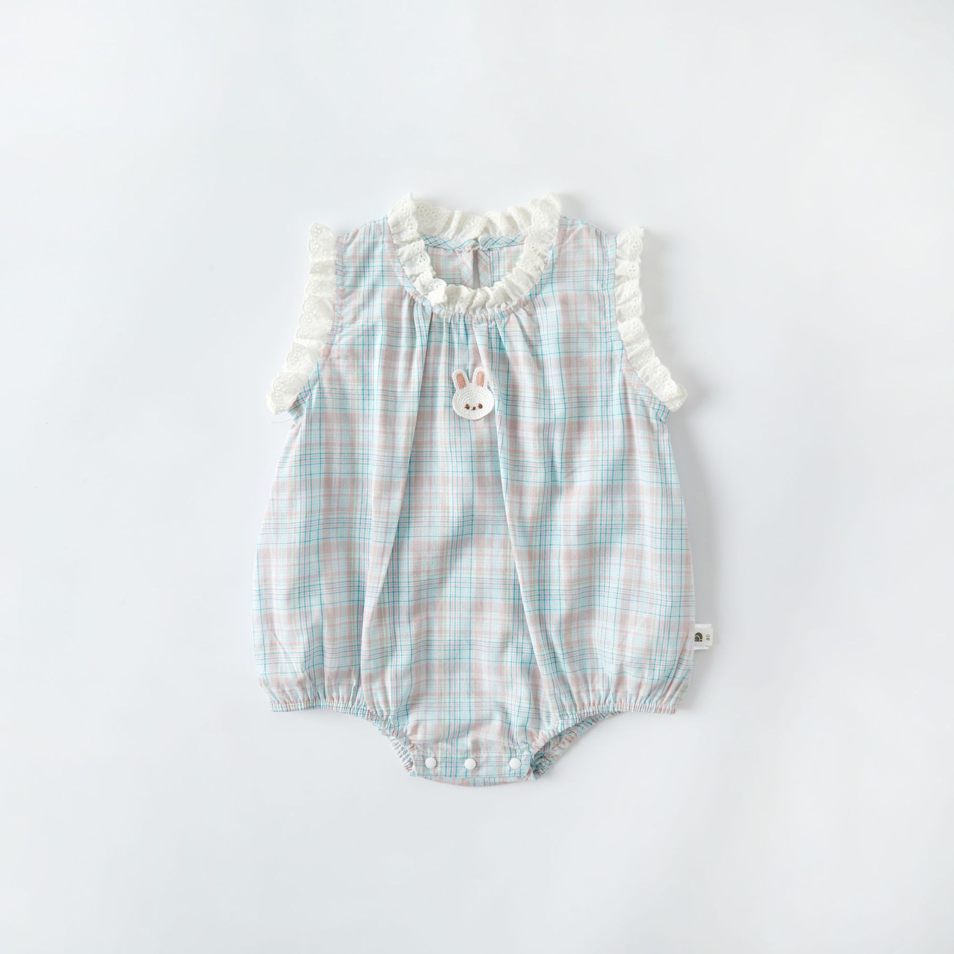 유아 토끼 귀 가운 2025 여름 새 아기 격자 무늬 점프 슈트 아기 얇은 통기성 점프 슈트스토어 가기