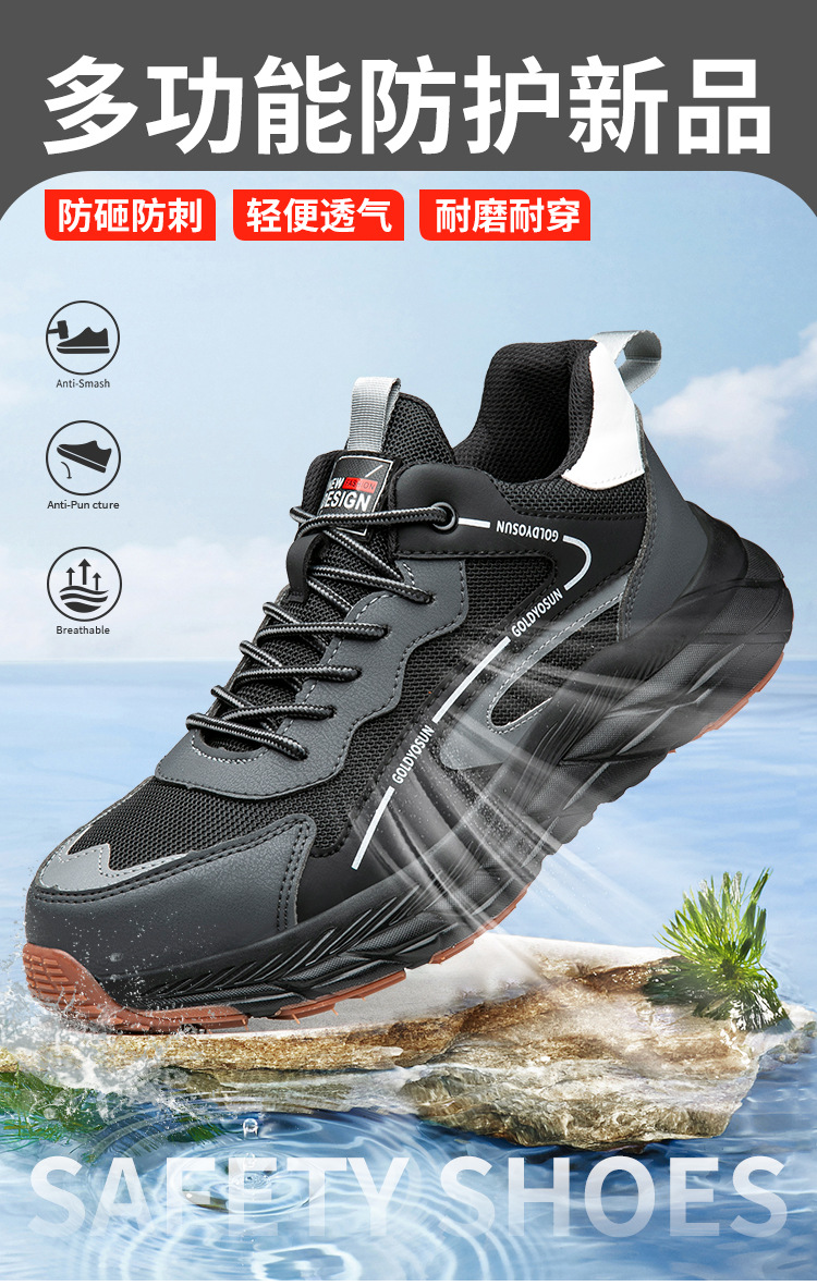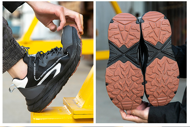 남성과 여성을 위한 여름 플라이 니트 힘줄 바닥 노동 보호 신발, 통기성, 탈취제, 강철 발가락, 충격 방지, 펑크 방지, 통기성 안전 신발