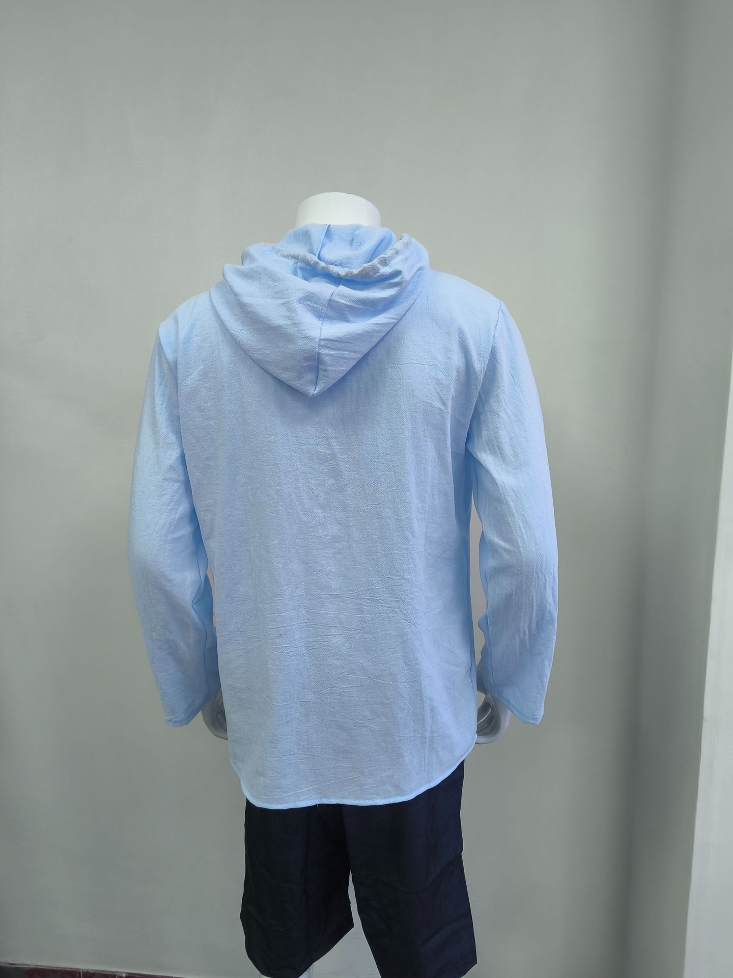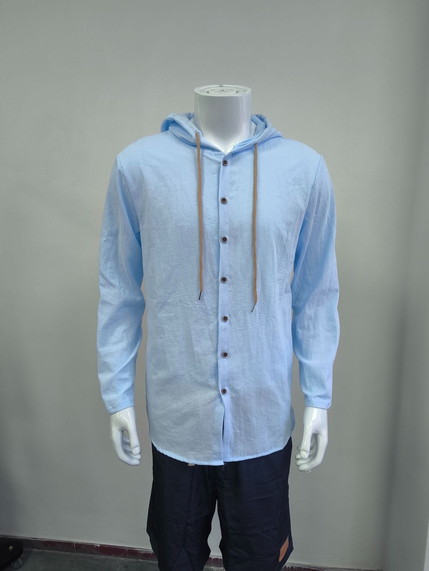 국경 간 아마존 2025 새로운 패션 봄과 여름 남성 후드 셔츠 단색면 및 린넨 캐주얼 긴 소매 탑.스토어 가기