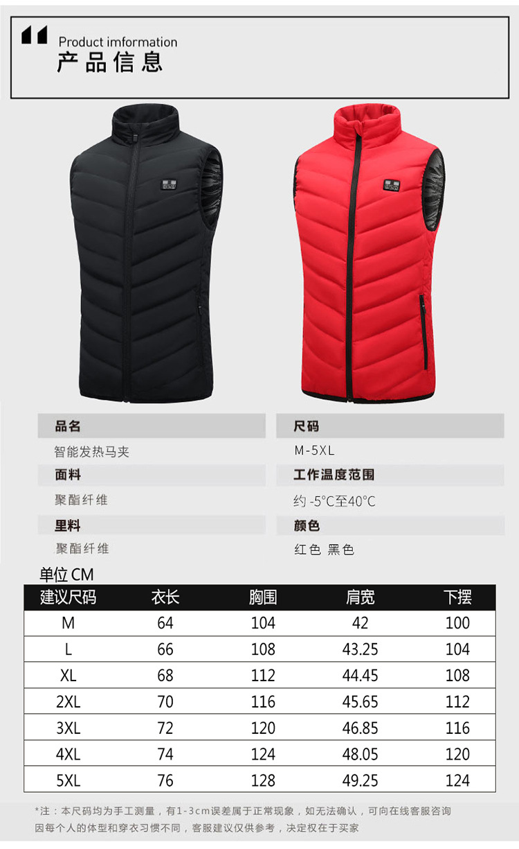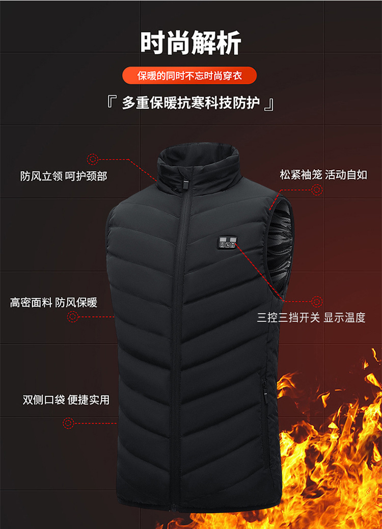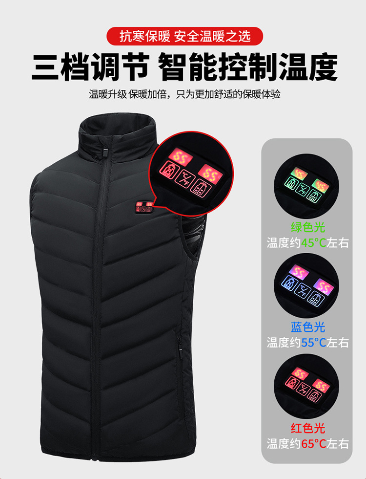 국경 간 가열 조끼 새로운 스마트 디지털 디스플레이 충전식 가열 조끼 남성과 여성을위한 충전식 가열 조끼