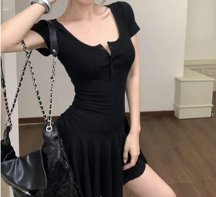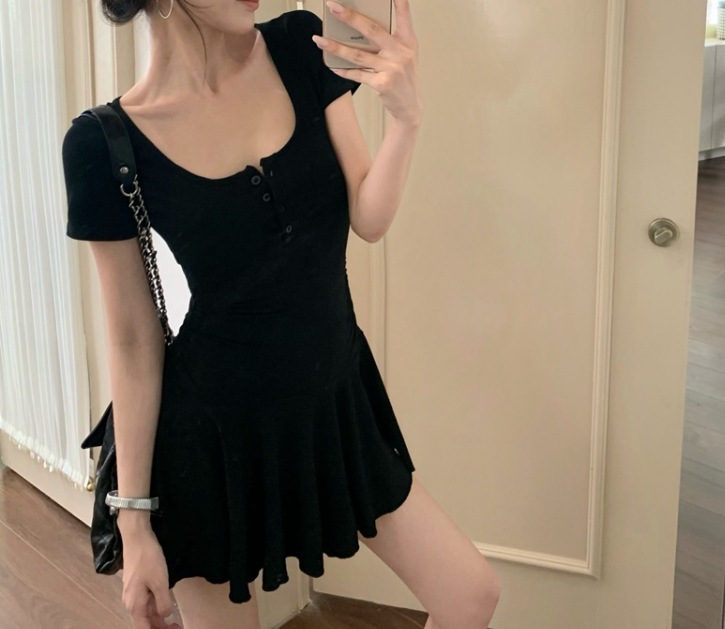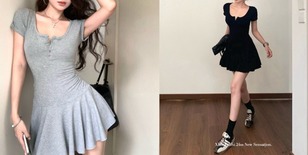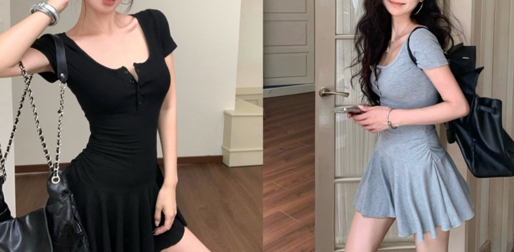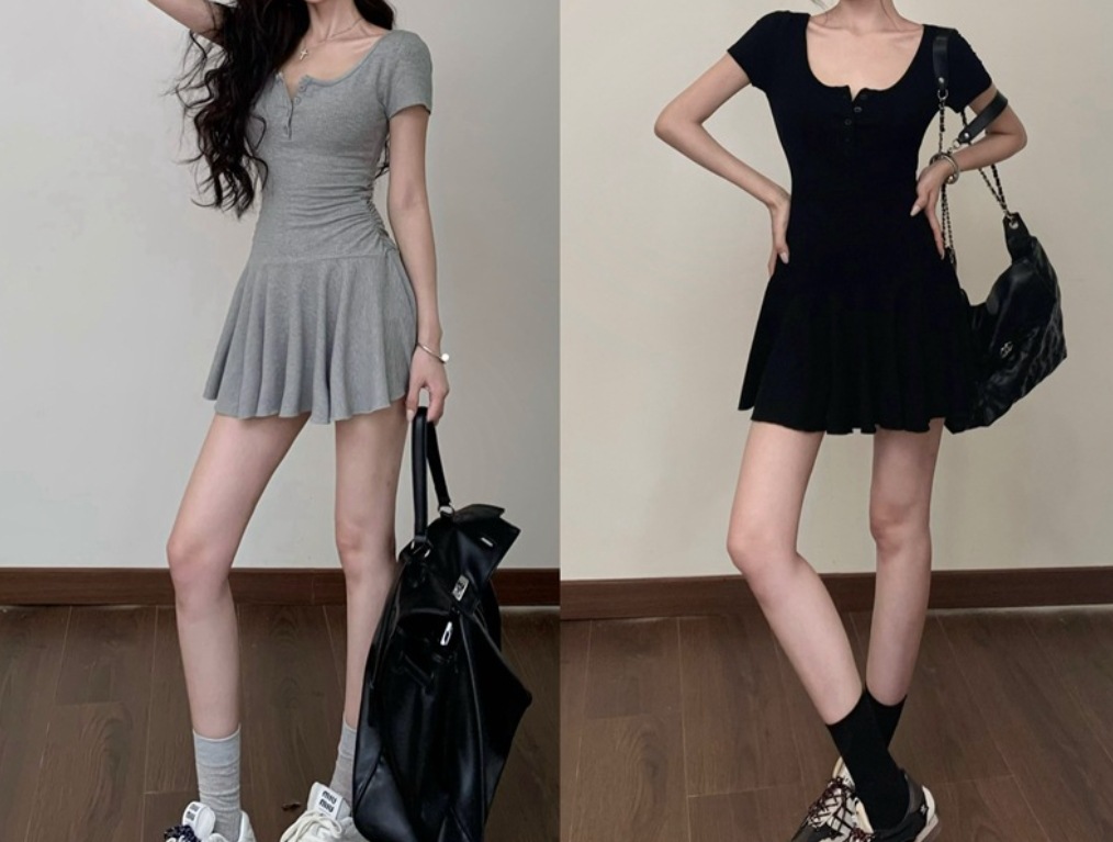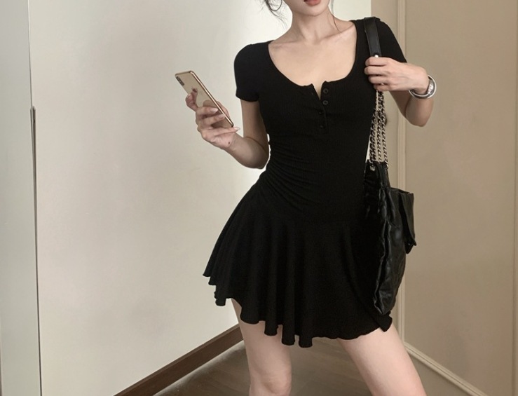 순수한 욕망 섹시한 insU 넥 반팔 점프 슈트 여성용 여름 스포츠 주름 허리 a 라인 스커트 여성용 핫 소녀 스커트스토어 가기