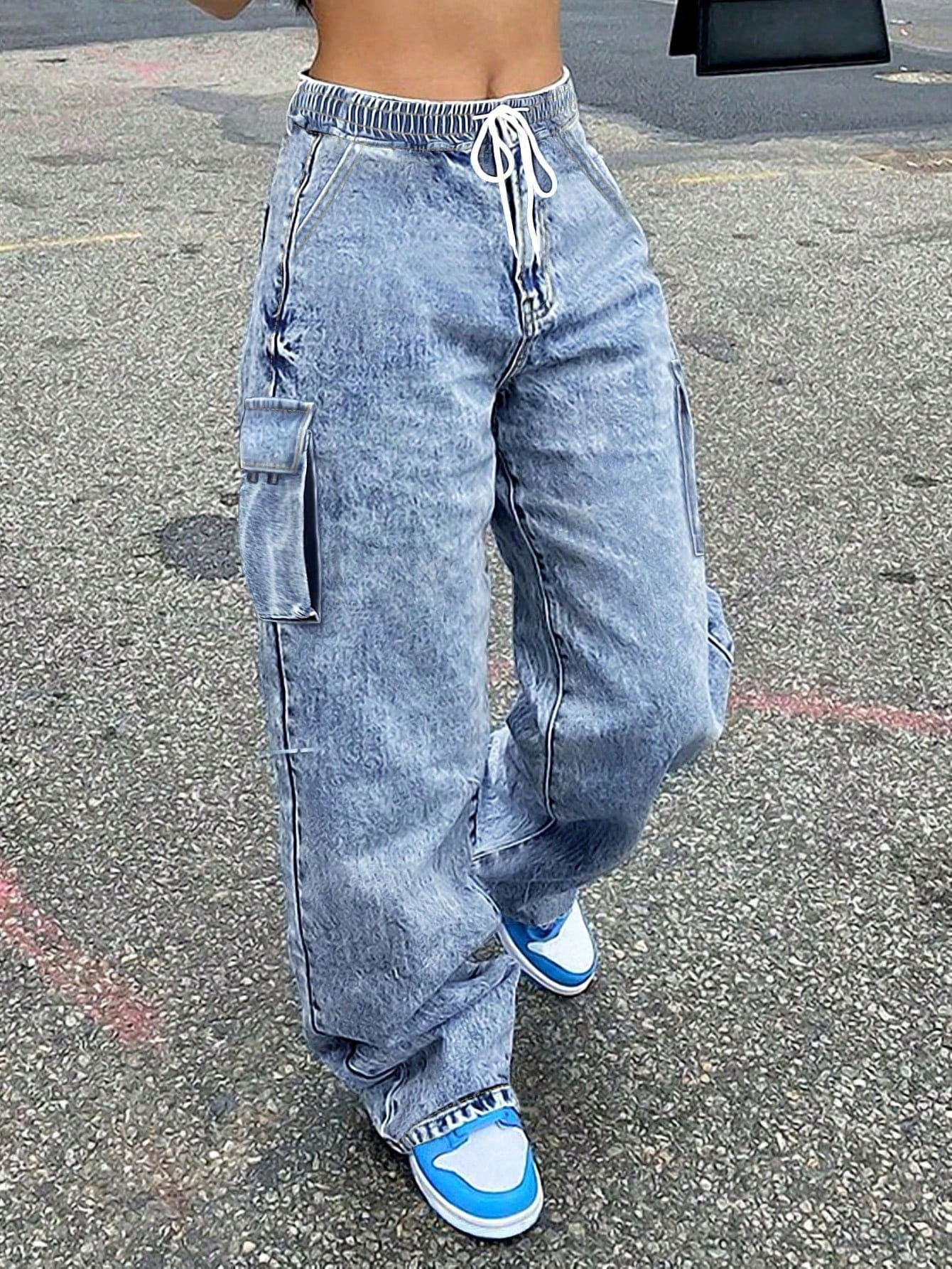 청바지 여성의 패셔너블 오버볼 여성용 데님 바지 바지 미국 거리 패셔너블 루즈 스트레이트 바지