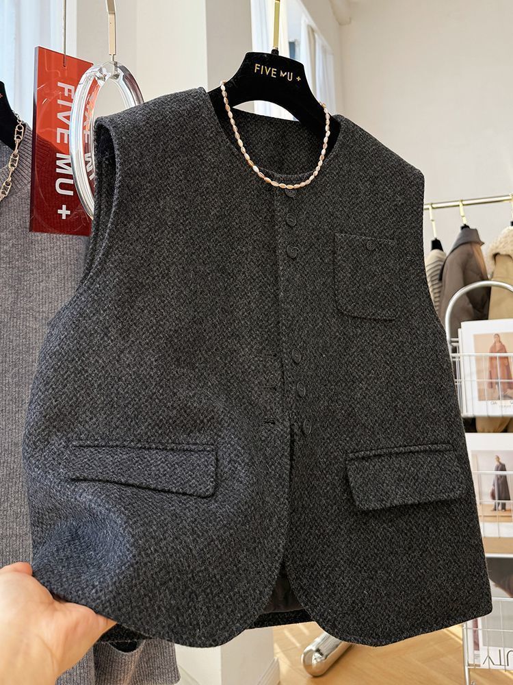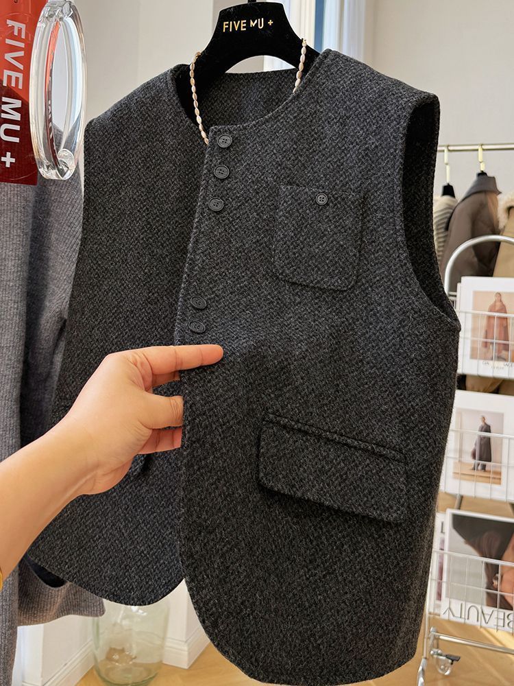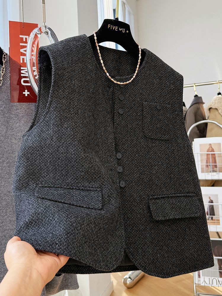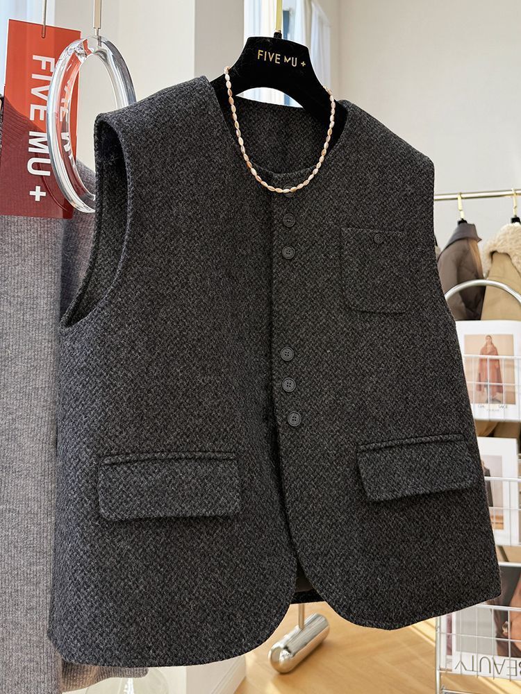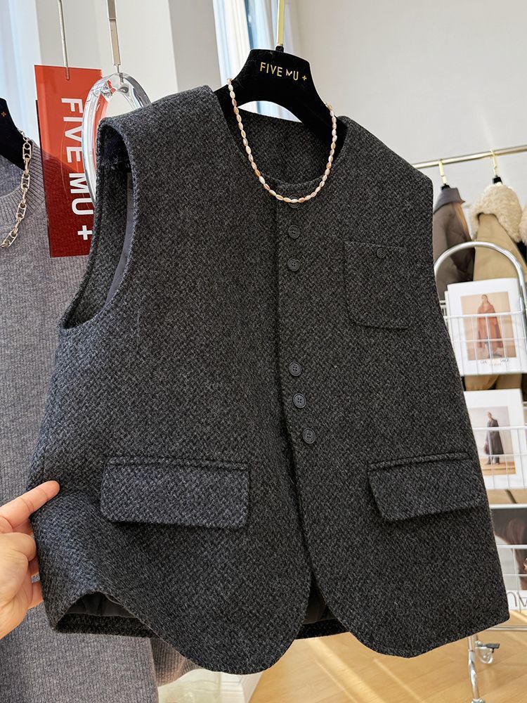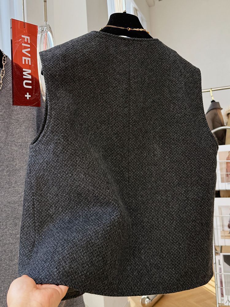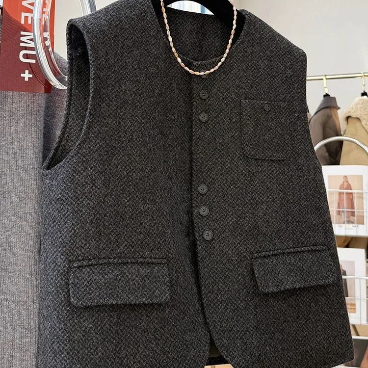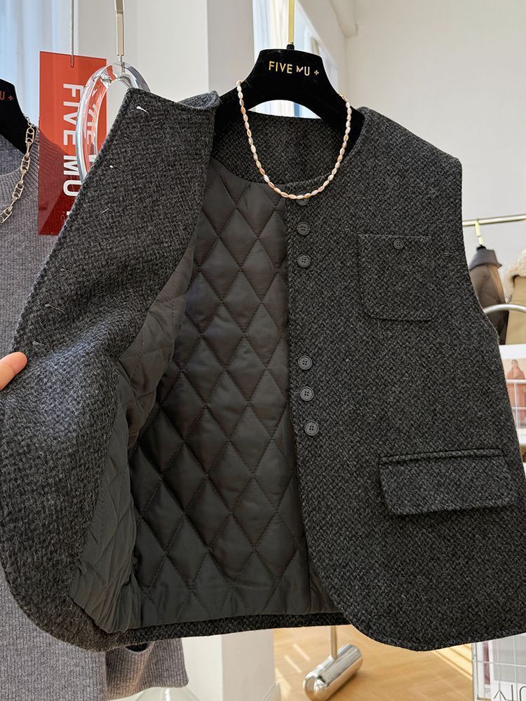 9367 가을 겨울 레이어드 민소매 탑 여성용 시크한 체크 무늬 퀼팅 모직 조끼 재킷스토어 가기