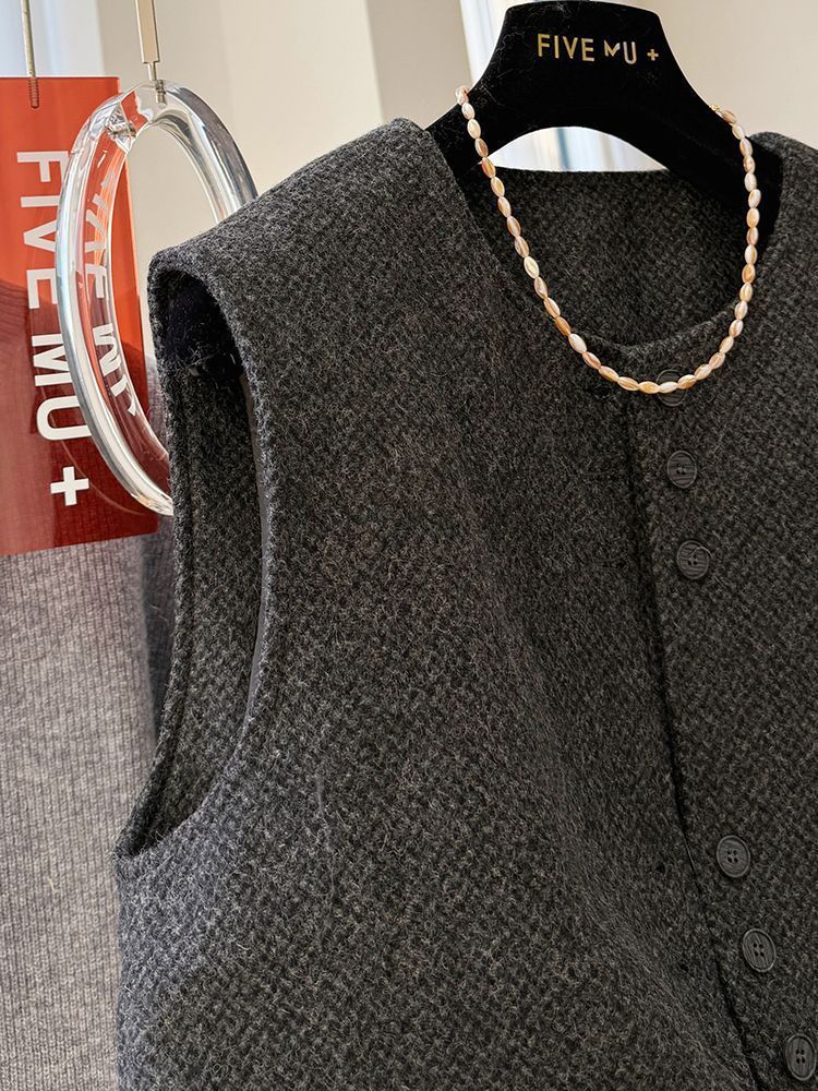 9367 가을 겨울 레이어드 민소매 탑 여성용 시크한 체크 무늬 퀼팅 모직 조끼 재킷